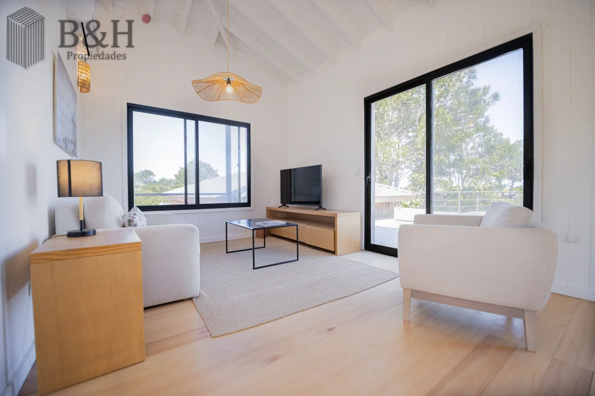 Ubicada en Jose ignacio, en el exclusivo barrio cerrado Laguna Escondida, sobre un lote de 1900 m2, a unos pocos metros de la playa, se trata de una casa de 310m2 cubiertos y 150 m2 de deck y terraza, con vista al mar desde el segundo piso.