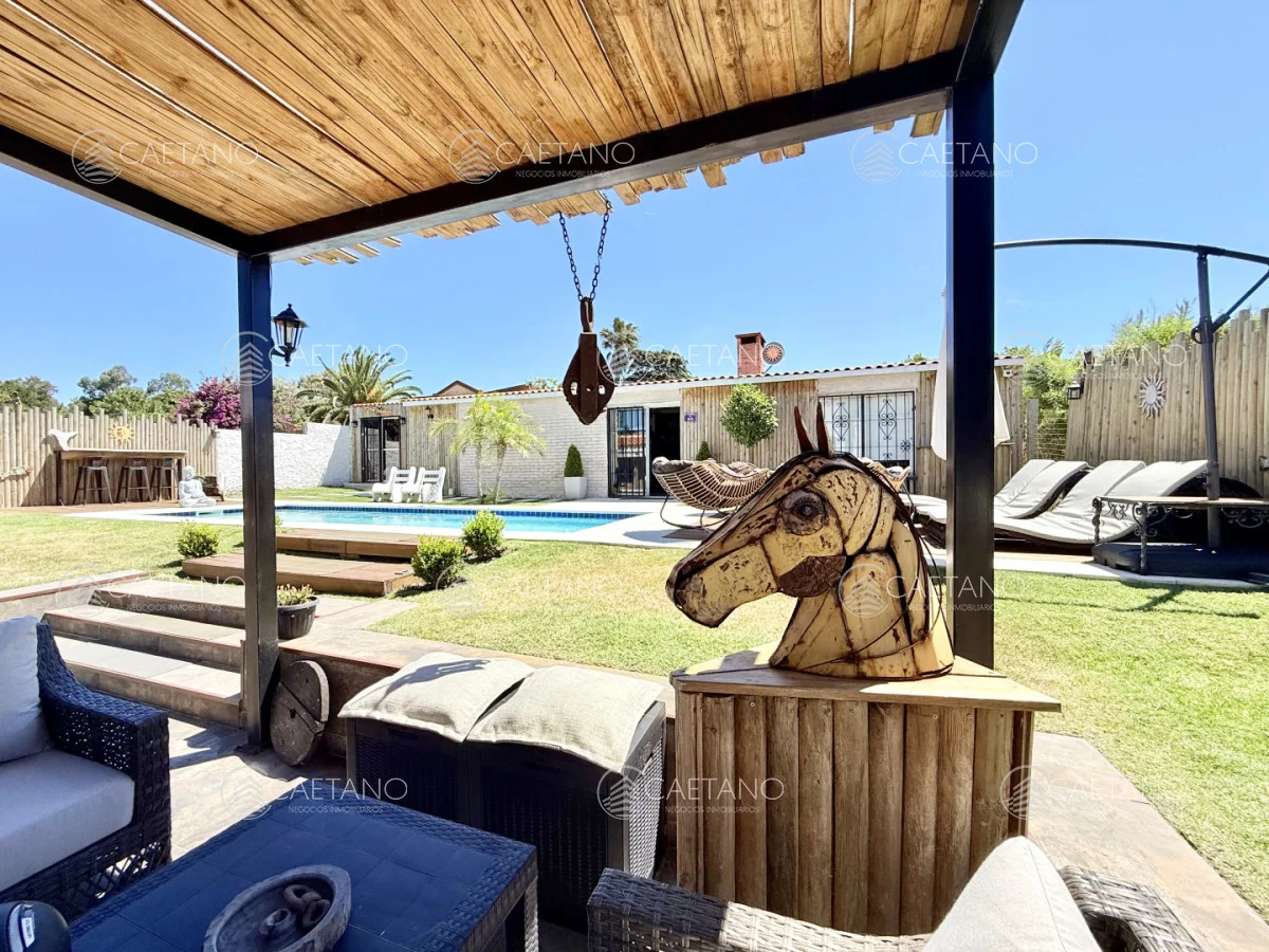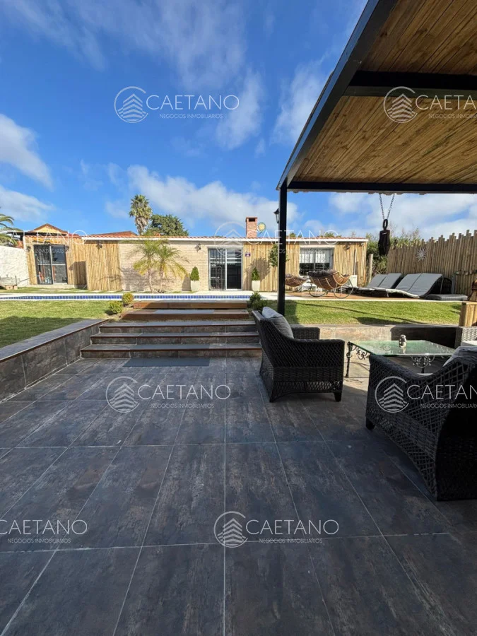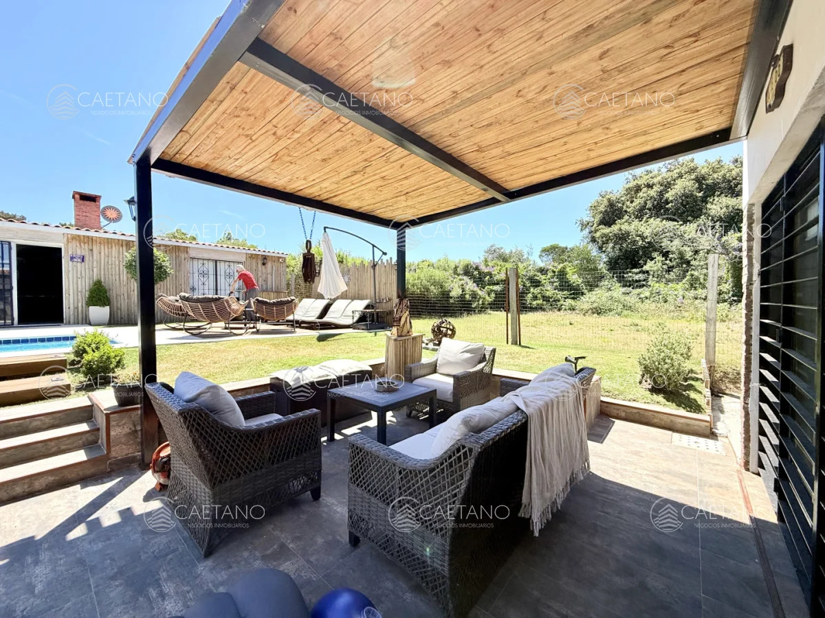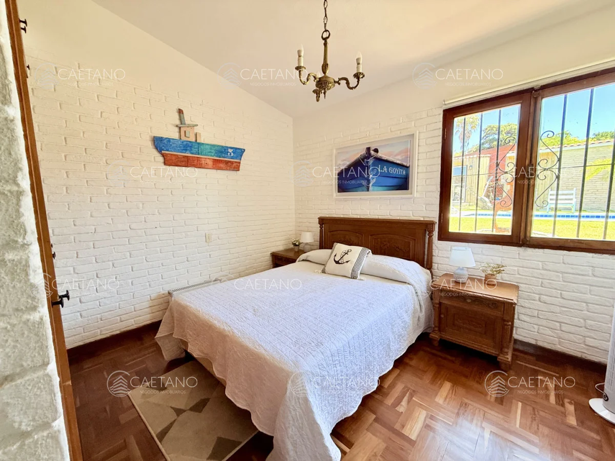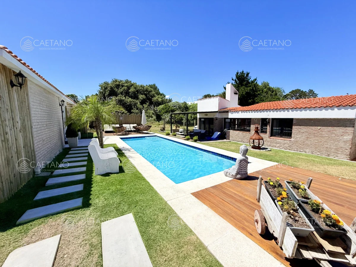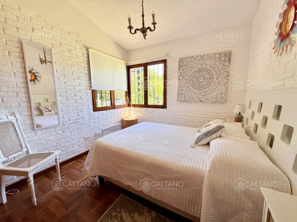 La casa cuenta con tres dormitorios, dos baños (uno de ellos en suite), cocina amplia, living, comedor, y placares en varios ambientes.