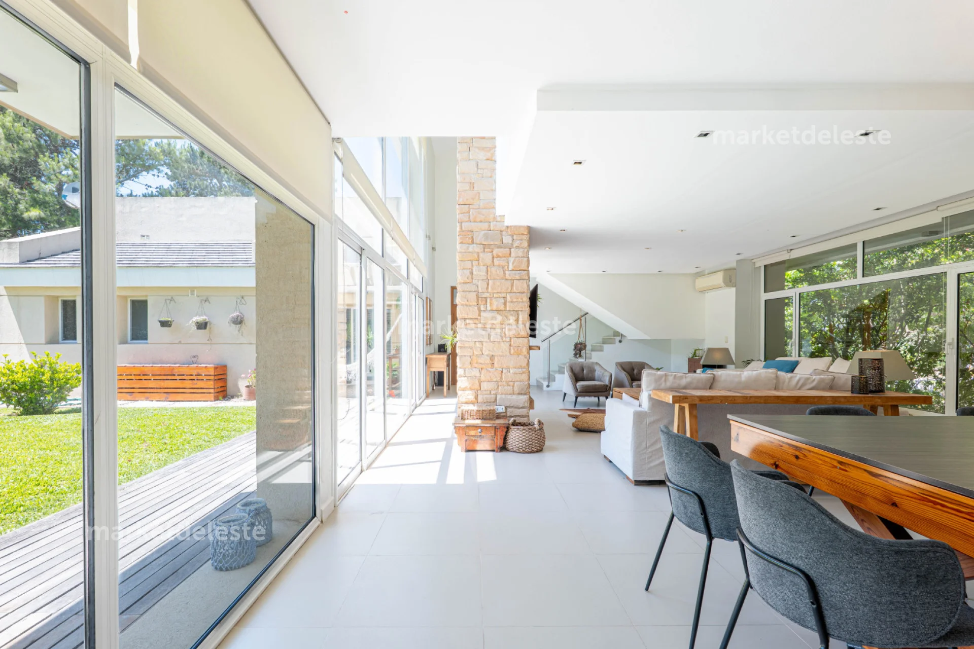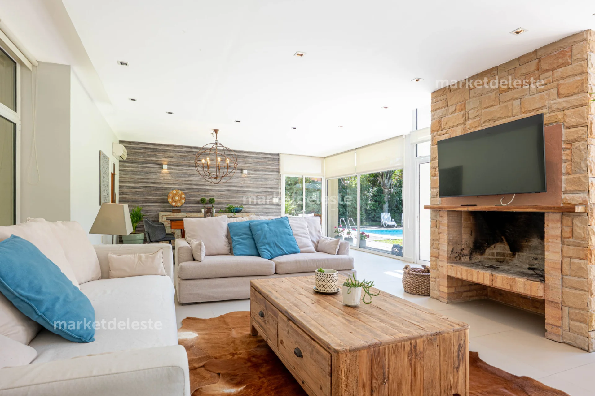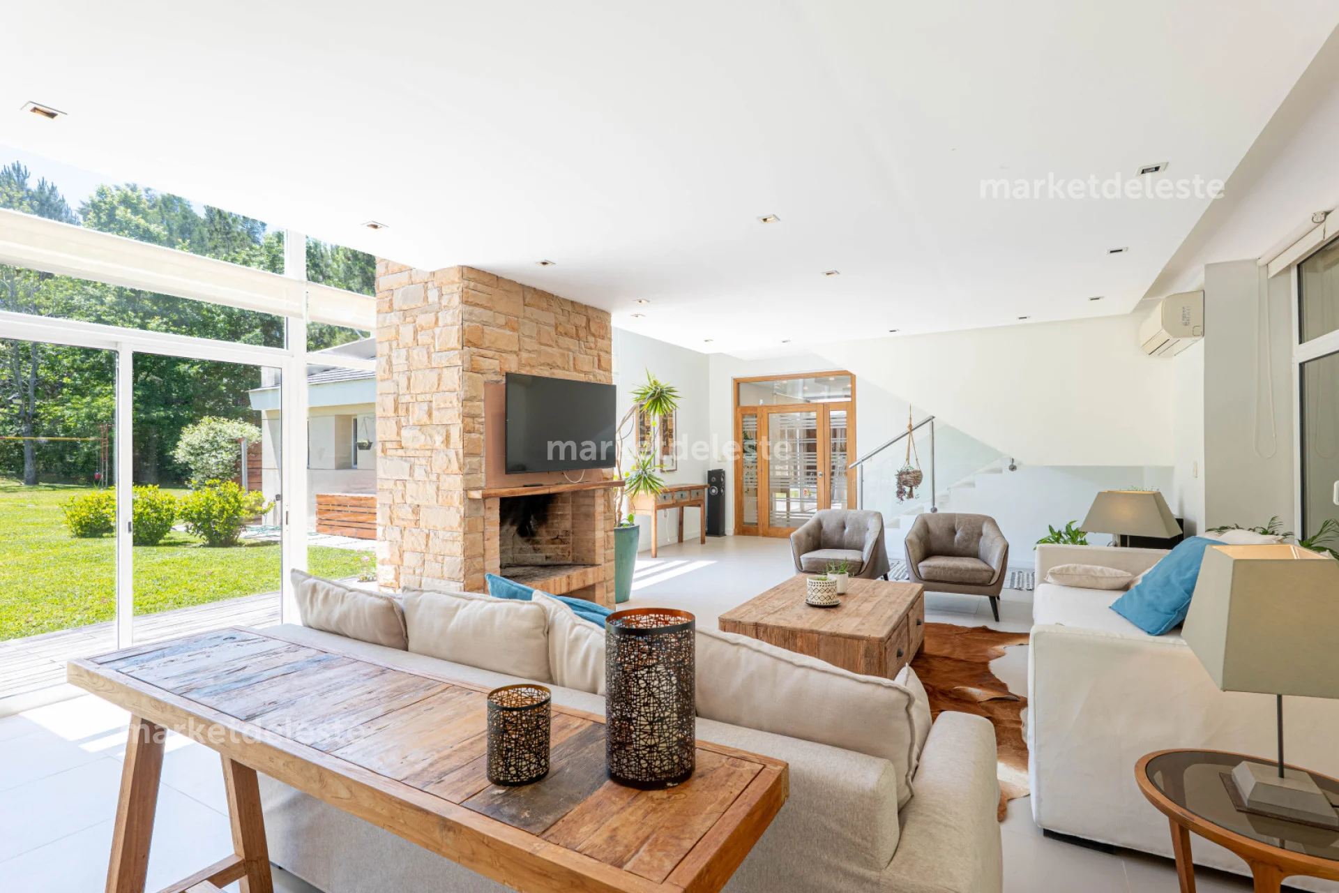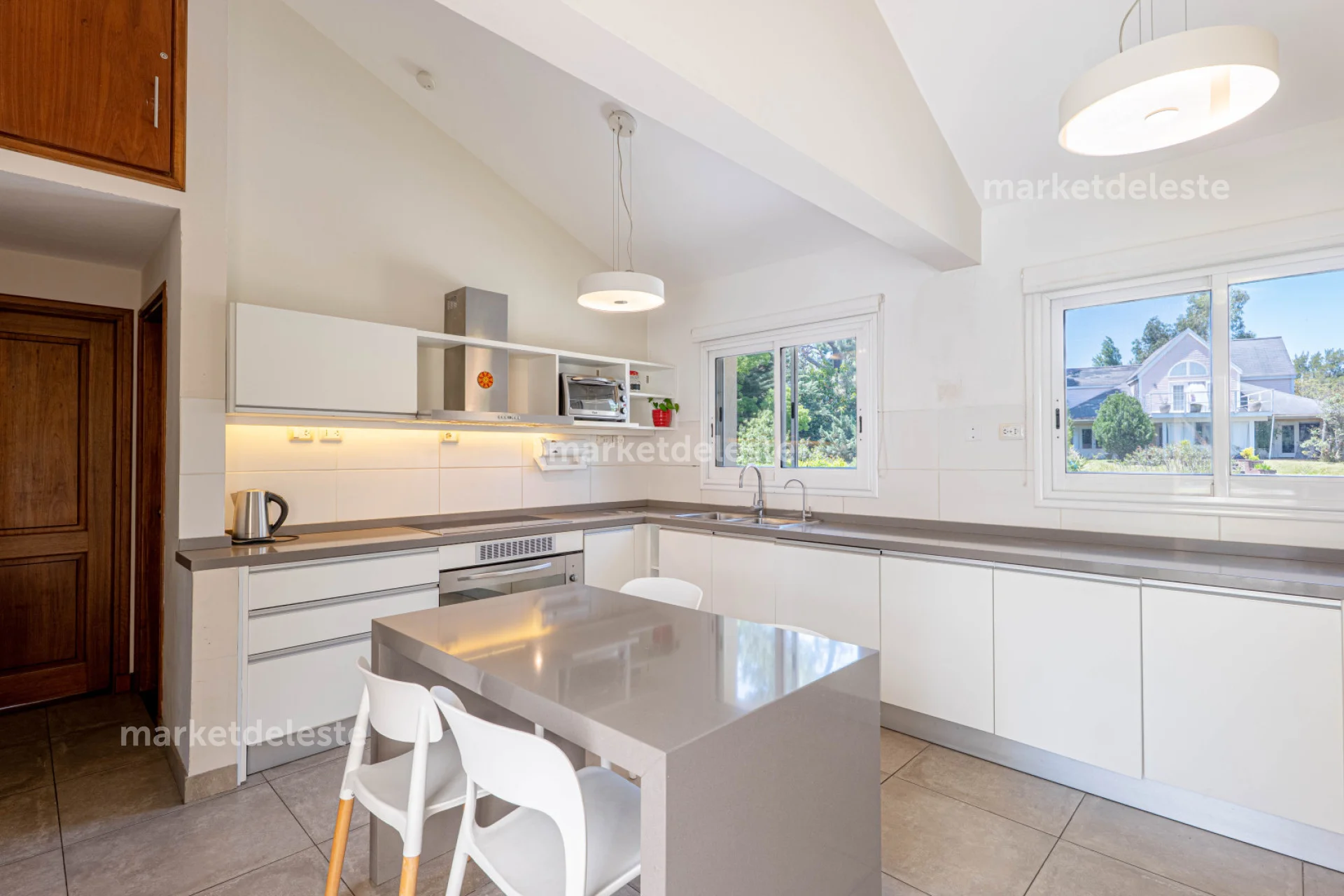 Moderna y funcional casa en La Residence. Cuenta con 4 dormitorios, living comedor con estufa, amplios ventanales al jardín. Referencia Interna : Tera-7600