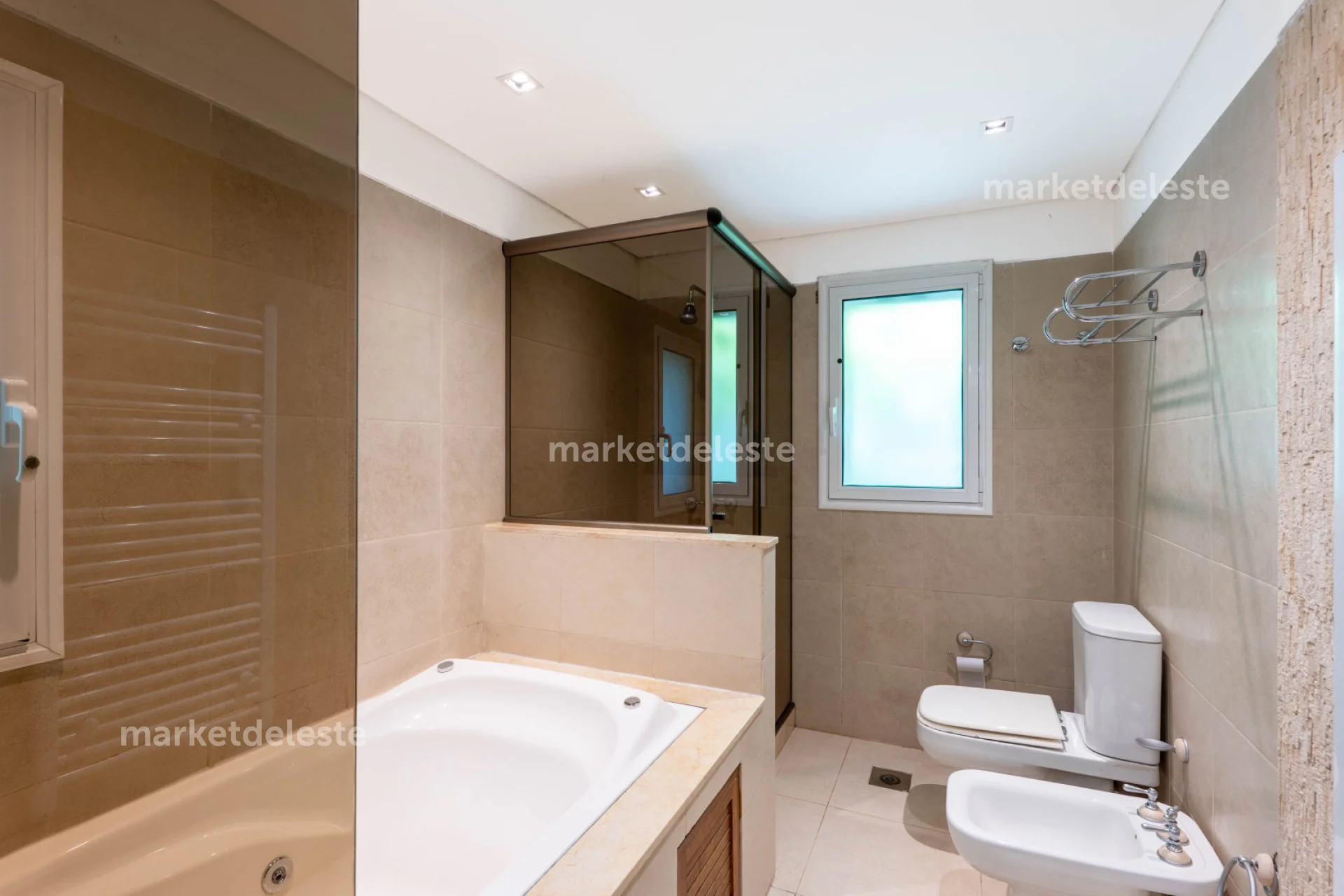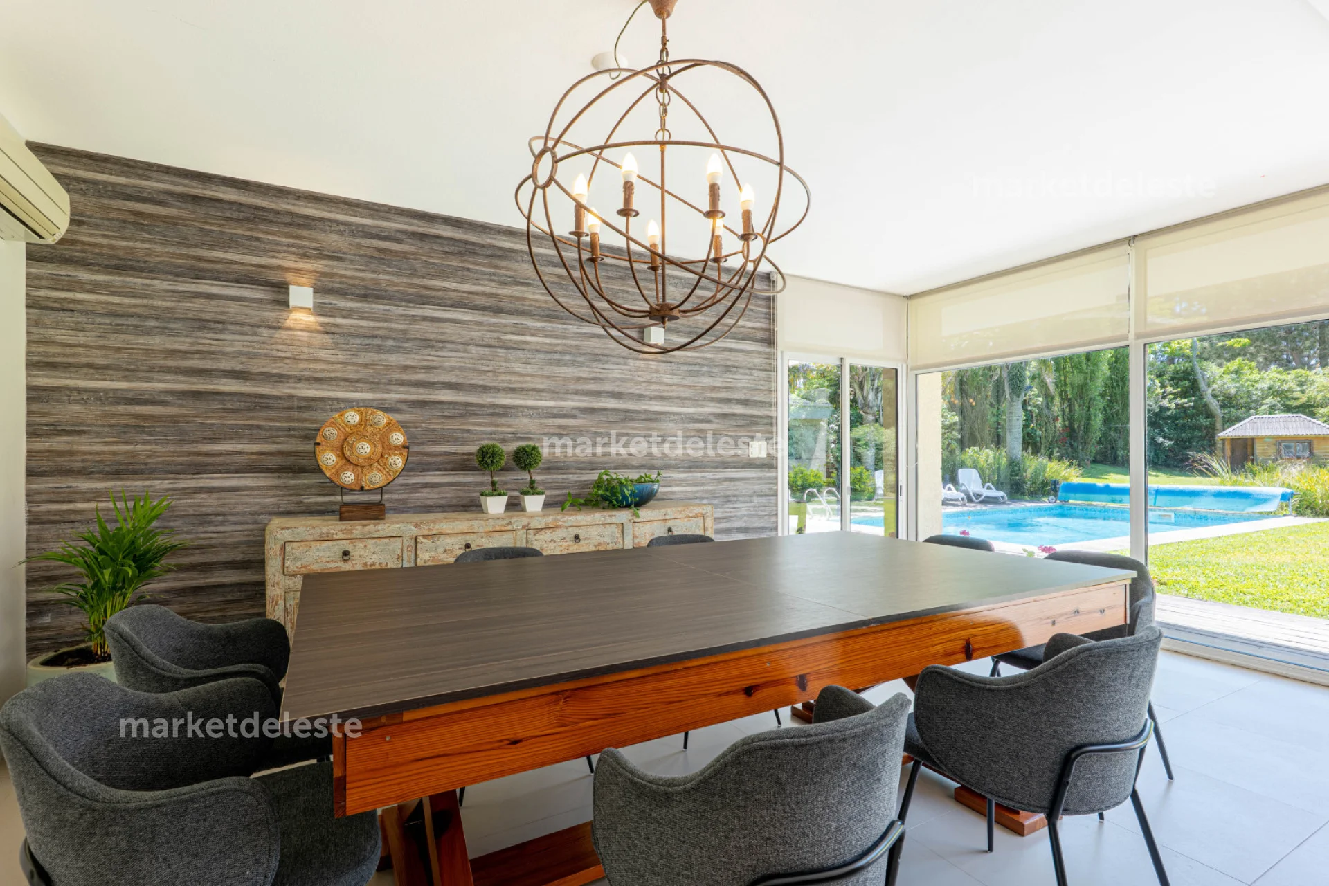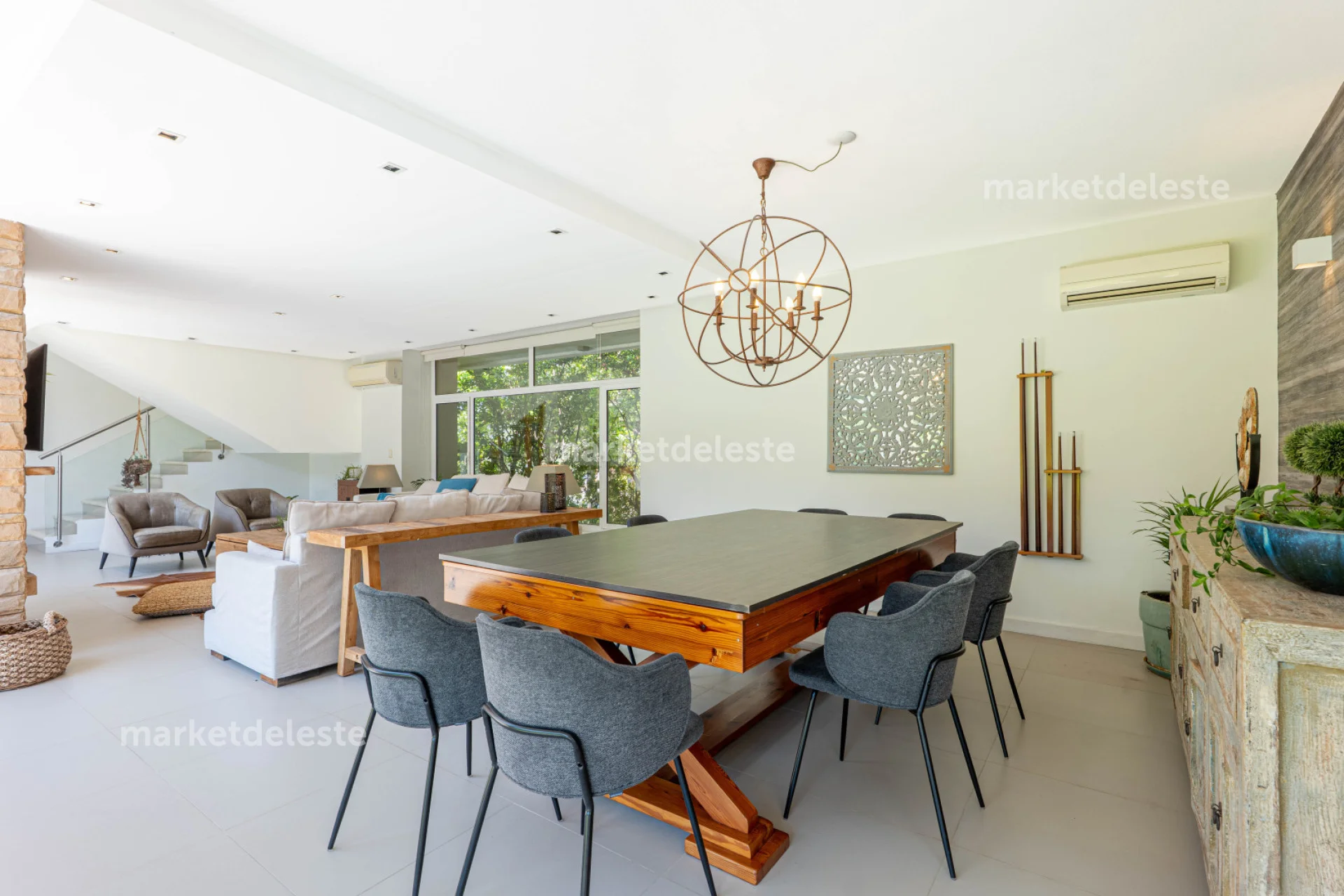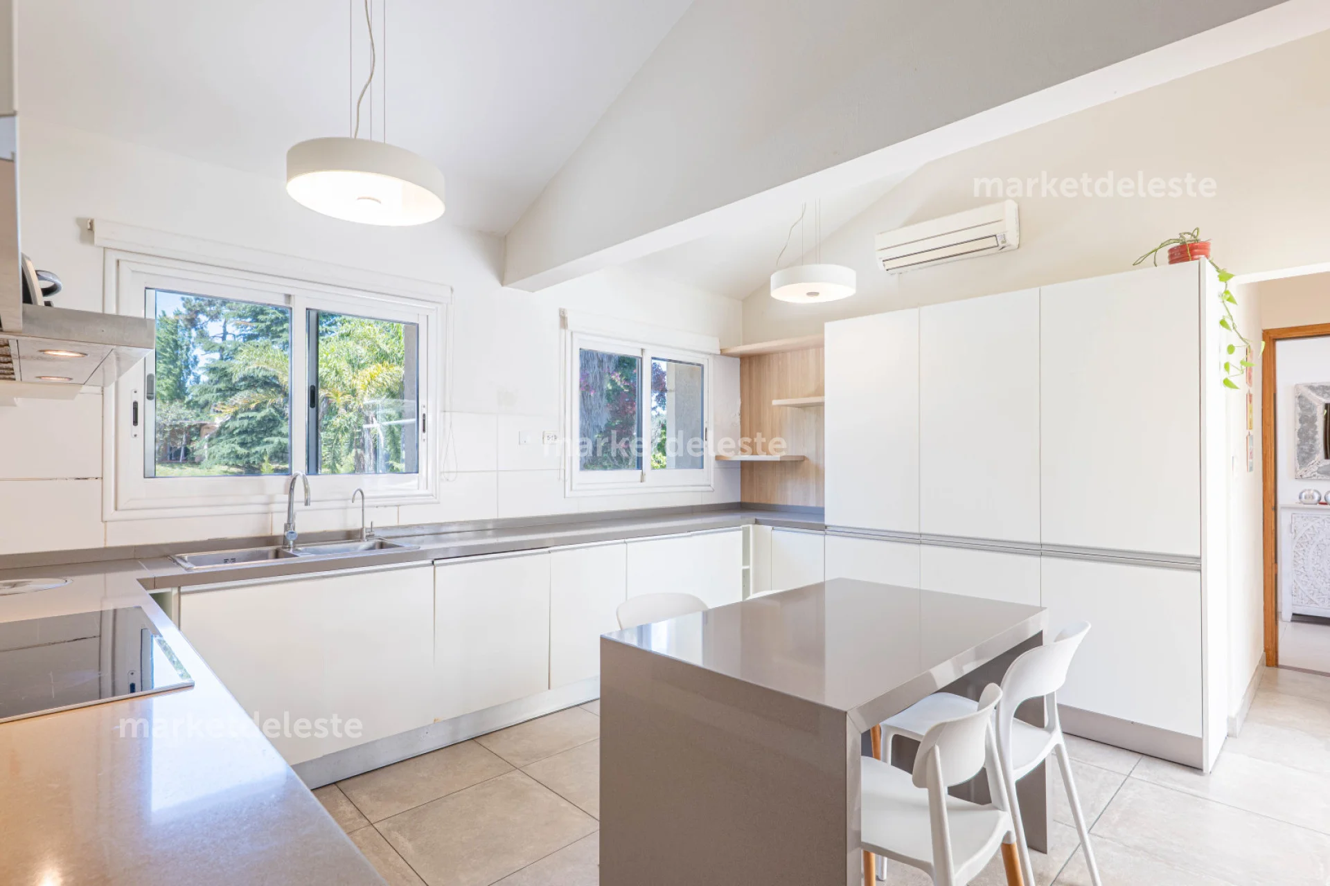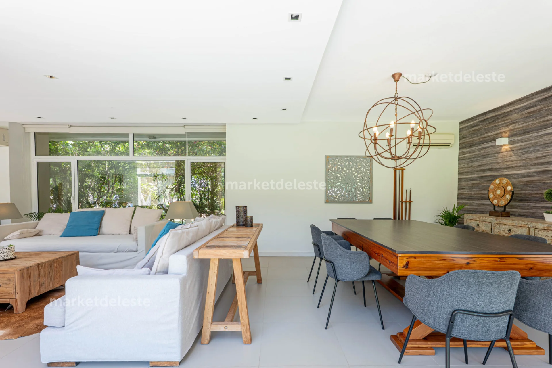 Moderna y funcional casa en La Residence. Cuenta con 4 dormitorios, living comedor con estufa, amplios ventanales al jardín. Referencia Interna : Tera-7600