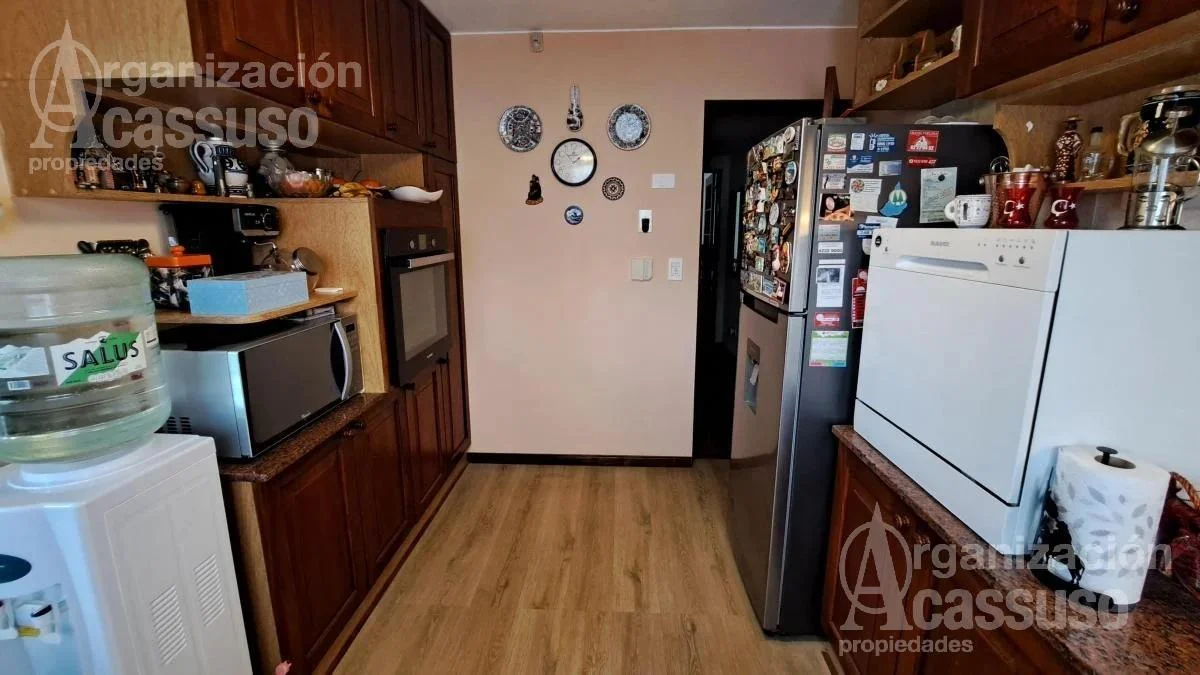 Cocina independiente completamente equipada con lavavajillas, muebles de bajo mesada y alacenas.