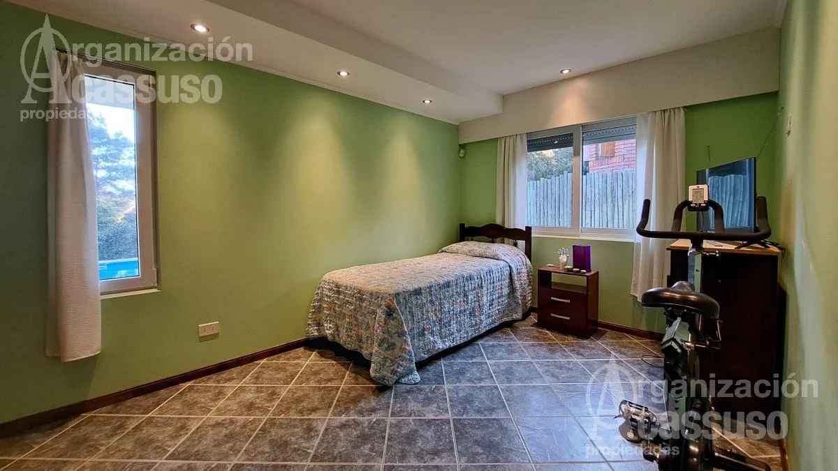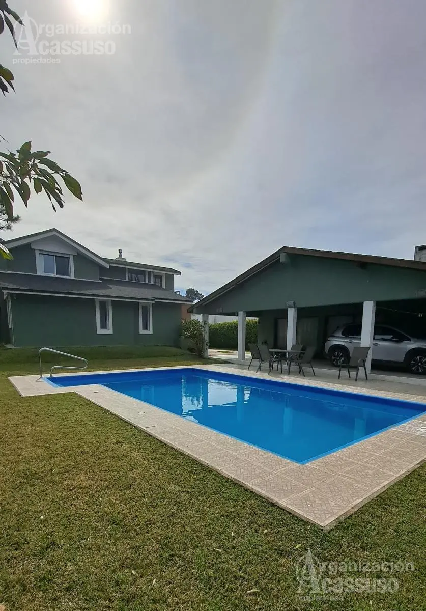 Piscina de construcción tradicional, climatizada por bomba de calor. Garaje para 3 autos y sistema de riego automatizado.