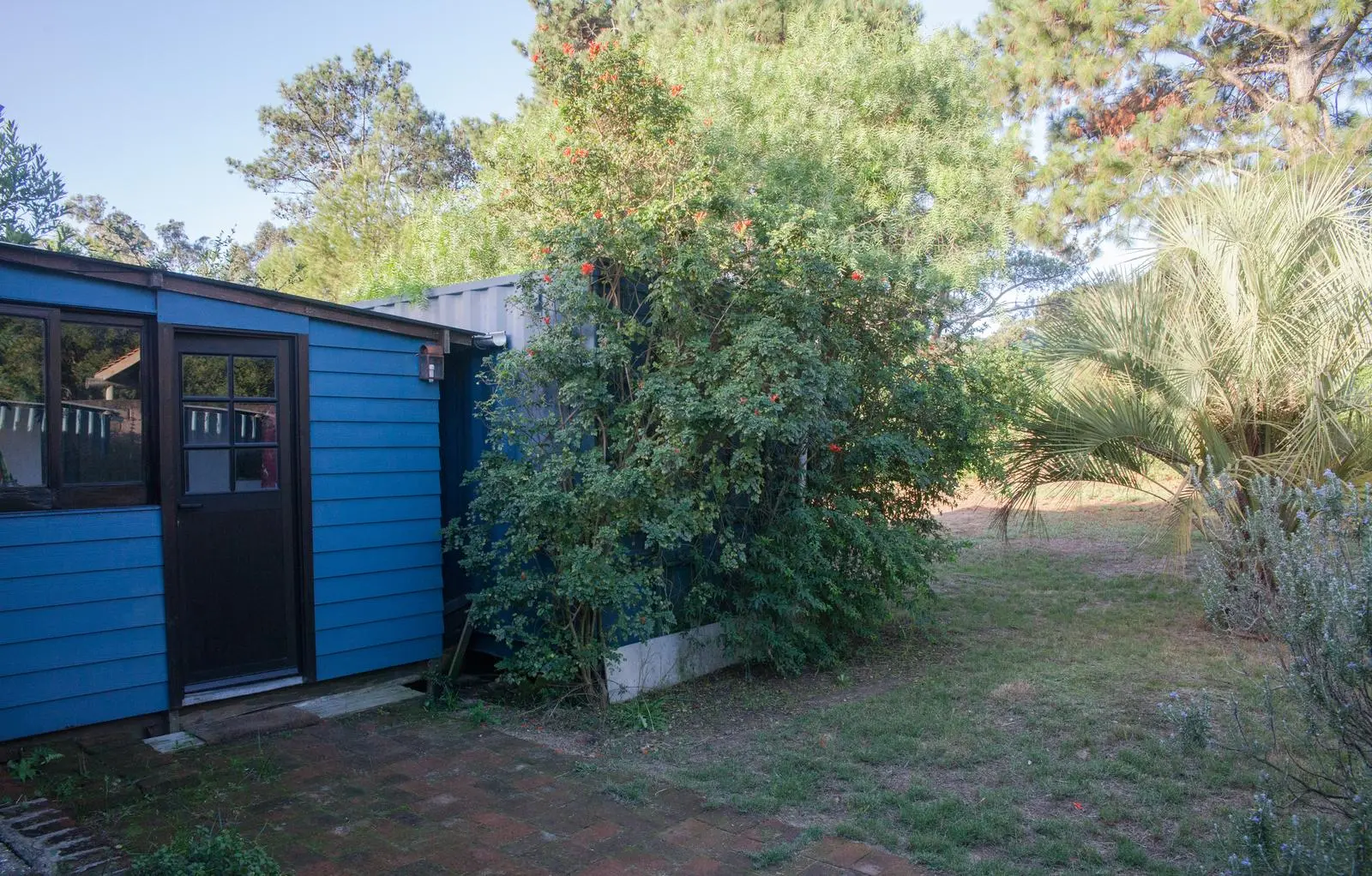 Jardín cercado, garage para un auto, lavadero, y estacionamiento techado para un segundo vehículo.
