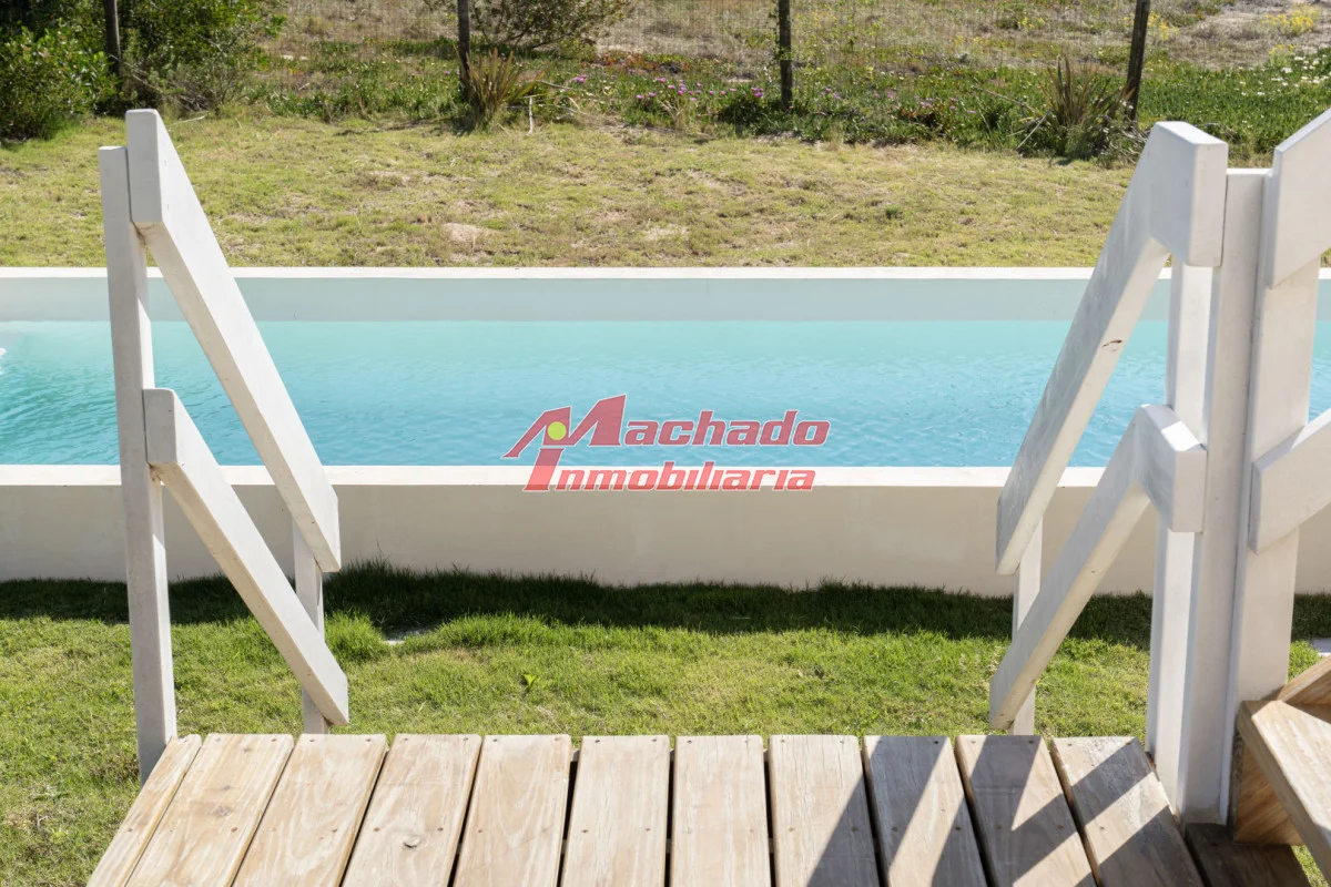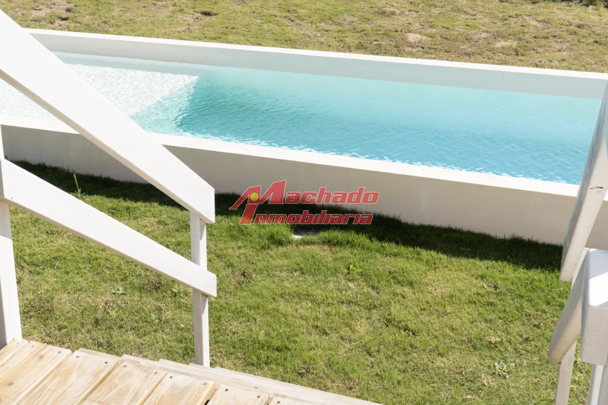 Piscina de 11x5 estilo Polinesia. Posee también una cochera y porche de entrada de 40 metros cuadrados. En la planta baja se encuentran 3 dormitorios: uno de ellos en suite y con su propio vestidor. Las otras dos habitaciones comparten un baño completo. Abajo también encontramos un coqueto lavadero. En la planta alta, la cocina con una barra central se fusiona con la zona de estar y comedor, complementado con otro baño (toilette). Las aberturas son doble vidrio, la planta baja cuenta con losa radiante y también tiene pozo semisurgente.