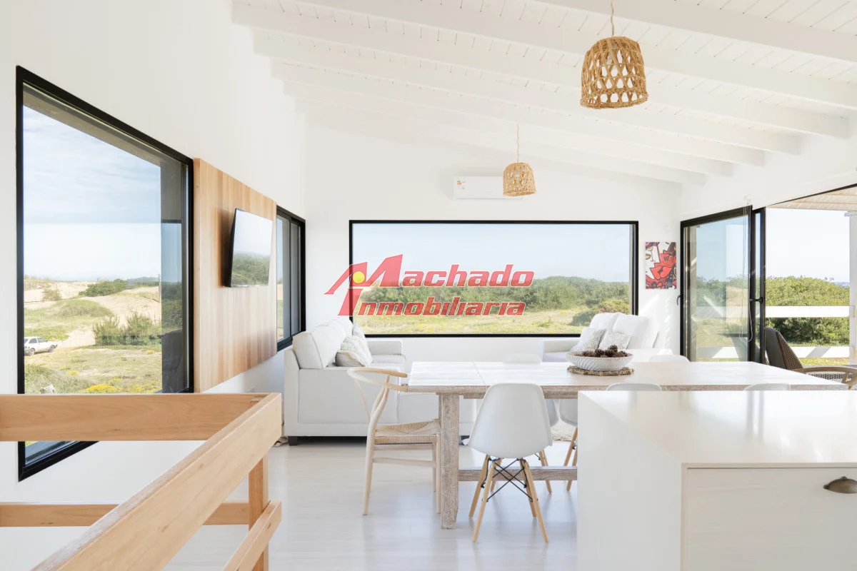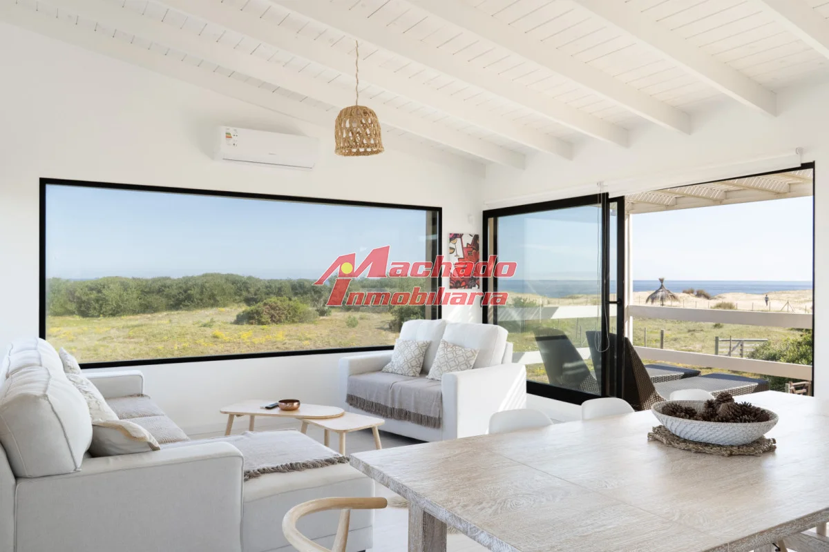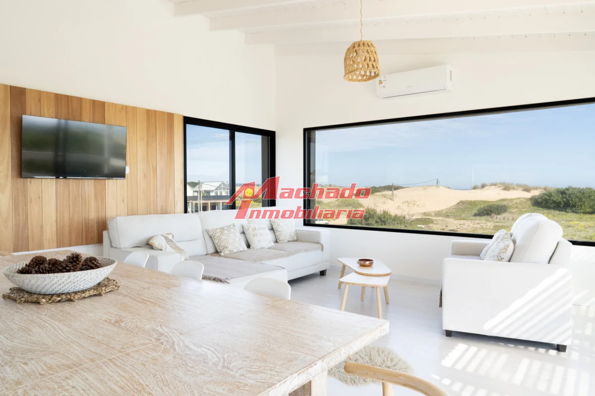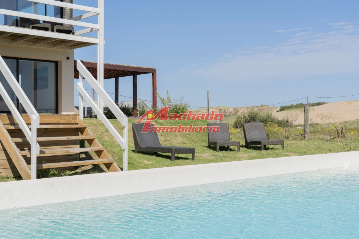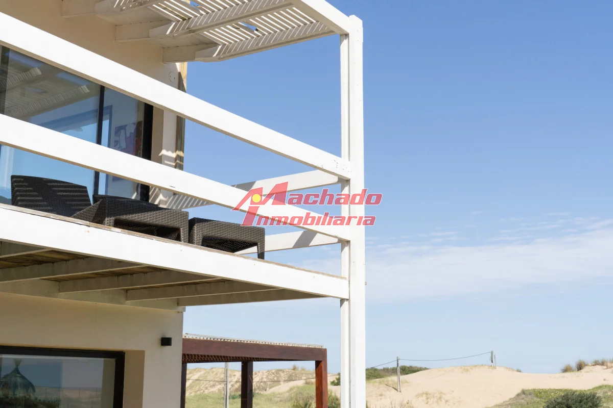 Se accede desde ahí a la terraza apergolada con parrillero ofreciendo una vista panorámica a las dunas y al mar.
