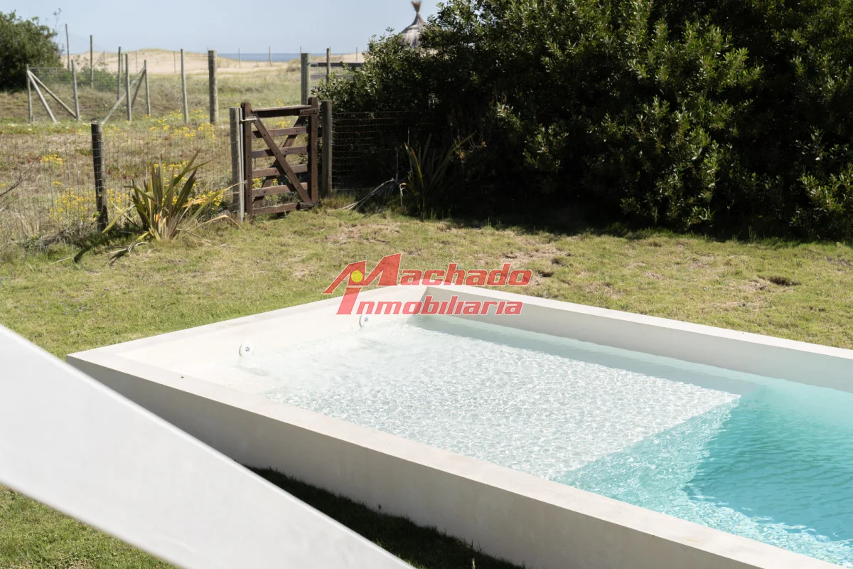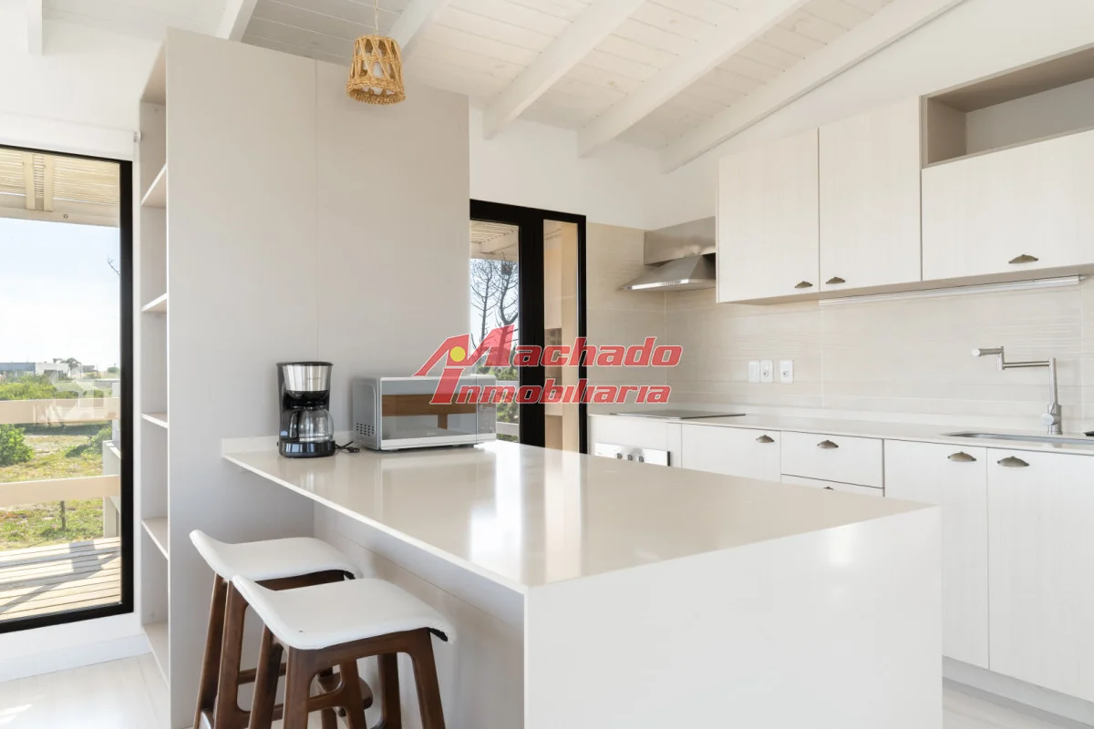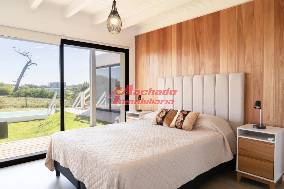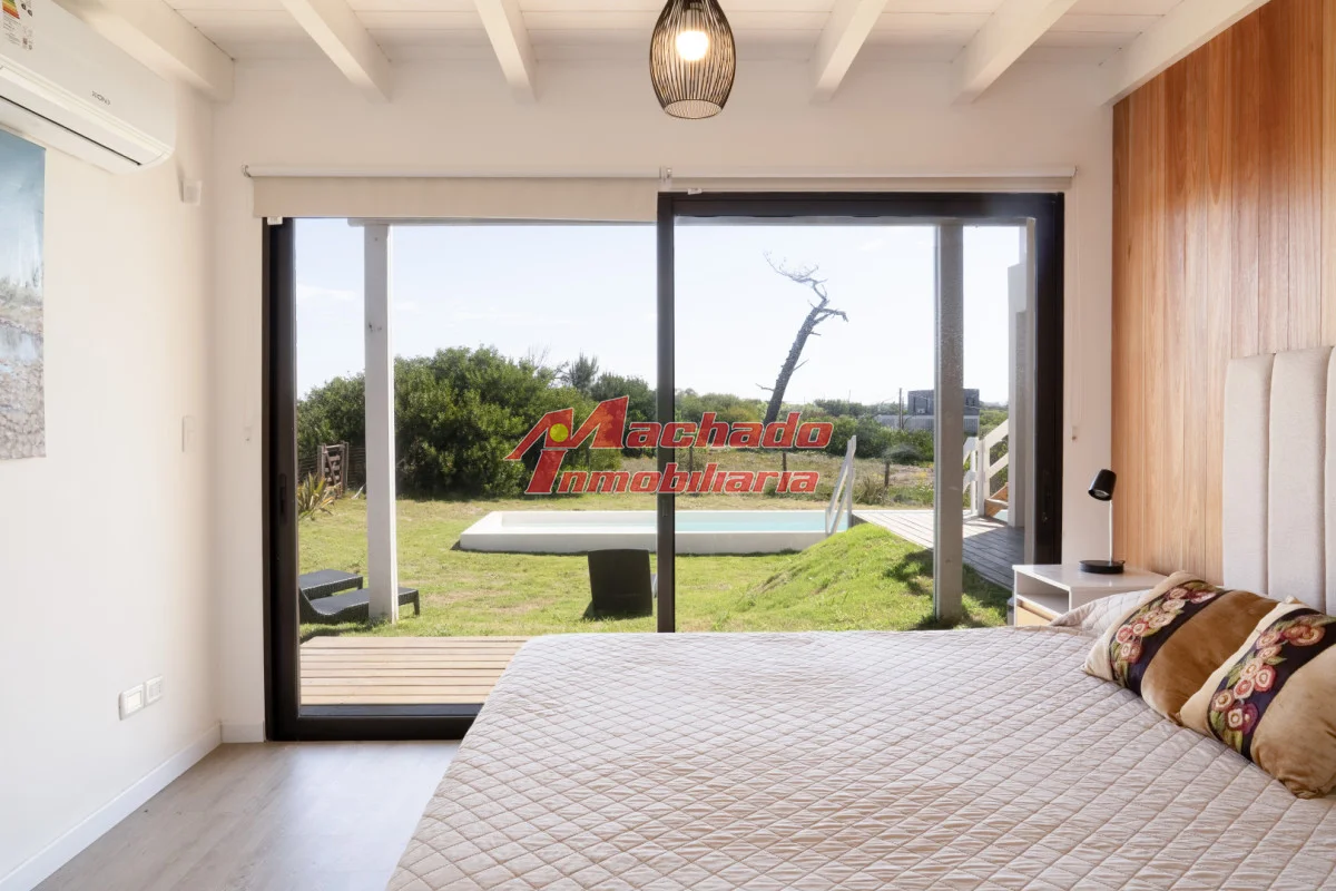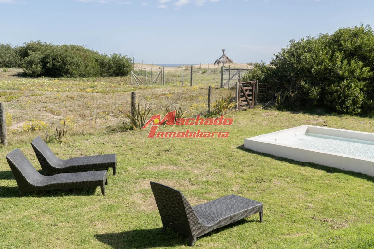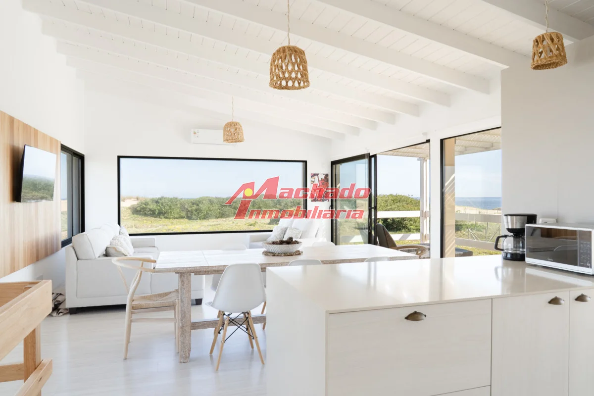Se accede desde ahí a la terraza apergolada con parrillero ofreciendo una vista panorámica a las dunas y al mar.