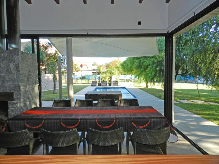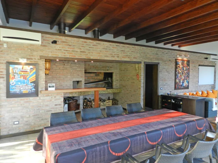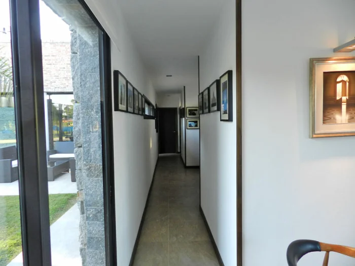 CASA PROA AL MAR MALDONADO CIMARRONA CA101357 Moderna y confortable edificación en medio de la zona residencial de Proa al Mar en el límite con Playa Verde, a muy corta distancia de Piriápolis y en un sitio ideal para disfrutar vacaciones soñadas o vivir de forma permanente. Excelencia de diseño con ambientes muy amplios y luminosos, materiales de primera calidad: techos en losa con cielorrasos en madera con luces empotradas, aberturas en aluminio de grueso calibre con vidrios dobles y persianas, gruesas paredes dobles y con revestimientos aislantes, etc.... Acceso desde la casa o por jardines, hall recibidor, amplio pasillo de distribución hacia áreas privadas y sociales. Master suite con vestidor y baño completo, otros 2 dormitorios amplios con placard comparten otro baño completo. Gran sala de estar con living y estufa a leña, comedor tipo barbacoa integrada por barra bar, parrillero y horno a leña. Cocina cómoda definida, diversidad de placares modernos y con electrodomésticos empotrados de primera calidad (lavavajillas, horno, anafe, micronodas, heladera doble puerta con fábrica de hielo y sistema de filtrado de agua propio entre otros), habitación comunicada y equipada para lavadero. Garage de grandes dimensiones con espacio taller y depósito. Baño social. El diseño de la casa en forma de L permite que todos los ambientes sociales se comuniquen con el hermoso parque enjardinado con amplia piscina, solarium y una cañada natural enjardinada y con un deck para disfrutar de la naturaleza que allí es prodigiosa ya que hay una gran variedad de flora y fauna, sobre todo aves de gran belleza. Posibilidad de adquirir la casa con todo su parque actual que involucra otro lote y suma así más de 2000 mts de jardines en USD 650000. Coordine visita con anticipación.