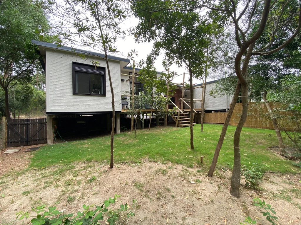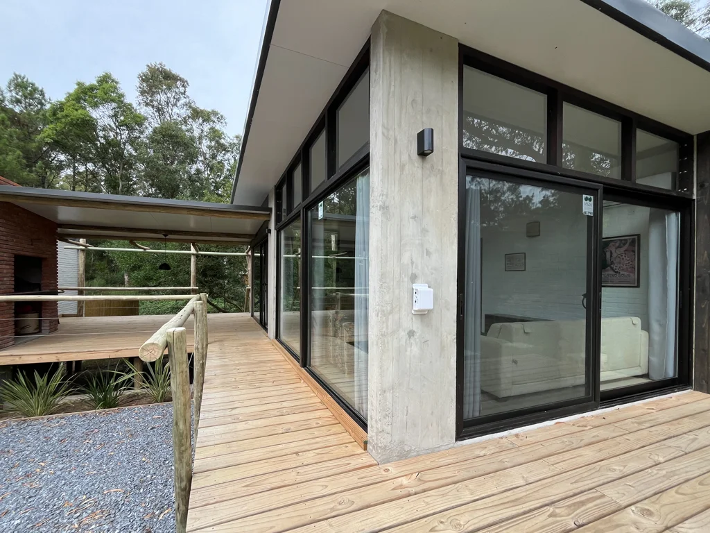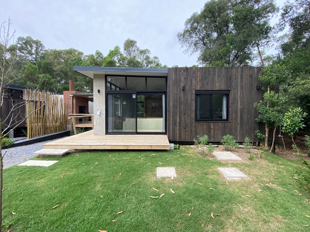 CASA PUNTA COLORADA MALDONADO CHALCHAL CA502129 Muy buena propiedad de diseño en balneario Punta Colorada, enmarcada en un entorno tranquilo y arbolado; a pocos minutos del mar. Distribuida en una sola planta, elevada sobre pilares con muy lindos espacios verdes además de los cómodos decks balconados. Cuenta con un luminoso living y cocina-comedor semi-integrado, perfectamente comunicado con el parrillero cubierto; el área de descanso se compone de dos dormitorios y dos baños (uno en suite). Edificación en muros de ladrillo con revestimiento exterior en madera, aberturas de aluminio, techo de isopanel. Con un terreno propio de 325m², tiene 67m² de vivienda, a los que debemos sumar el parrillero cubierto y decks.