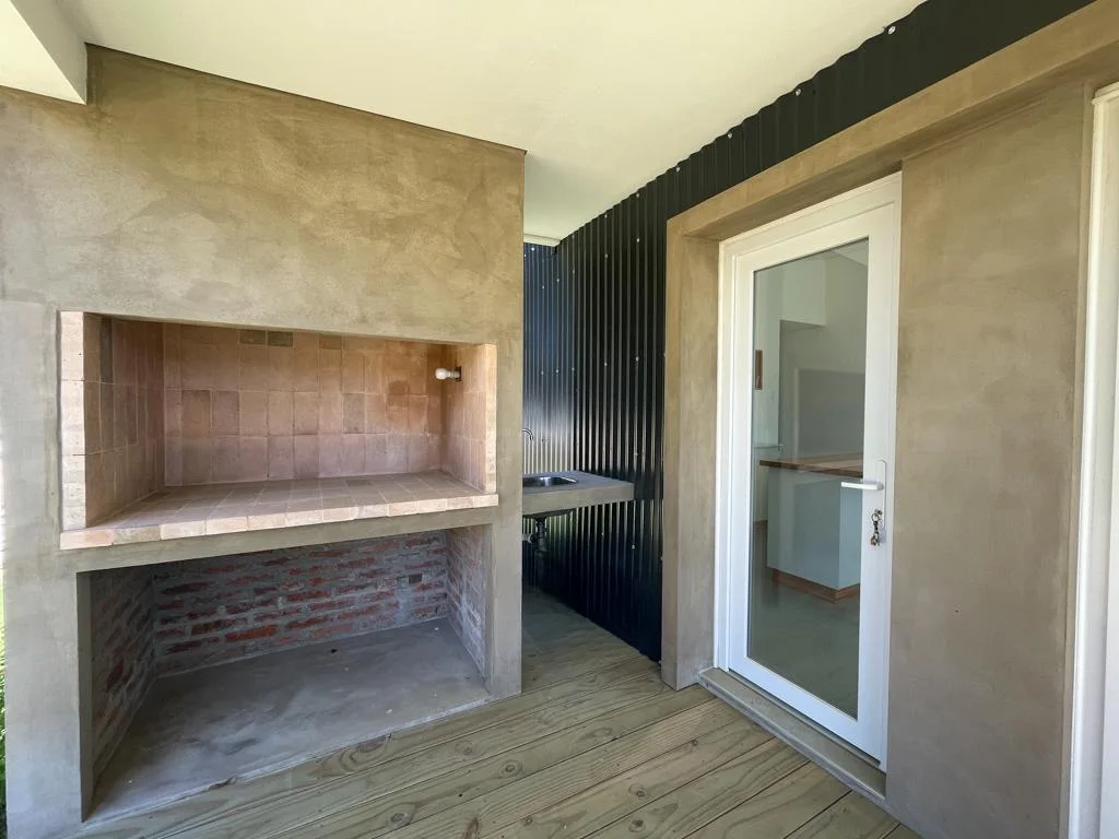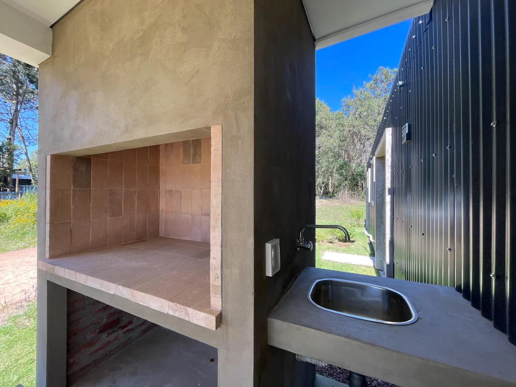 CASA PUNTA COLORADA MALDONADO OSLO CA501392 Linda casa con diseño en balneario Punta Colorada. Enmarcada en un generoso terreno de 550m² con 14 metros de frente y con orientación noroeste; limpio, arbolado y con potencial. Edificada en una sola planta, cuenta con un cómodo living-comedor con estufa de alto rendimiento, cocina equipada e integrada al mismo ambiente; pasillo de distribución conduce a al baño completo, el primer dormitorio y el segundo dormitorio que es en suite. Ambos tienen placares empotrados y salida hacia el exterior mediante ventanales, integrando muy bien la propiedad con el espacio exterior. Justamente en su exterior se encuentra el parrillero cubierto por una galería que comunica de forma muy práctica con el ambiente social de la casa. Es construcción tradicional en muros de ticholo, con revestimiento exterior de chapa galvanizada color negro y en su interior aislación, cámara de aire y yeso. La cubierta es liviana, con aislación y cielorraso en yeso con luminaria led embutida. Las aberturas son de pvc con doble vidrio Todo esto le brinda una excelente eficiencia térmica. No se quede solo con las imágenes, coordine para verla in situ y compruebe la oportunidad que se presenta de una vivienda para veranear y disfrutar también del invierno. Con muchísimo potencial para seguir agregando confort como puede ser la instalación de piscina y la creación de un espacio barbacoa.
