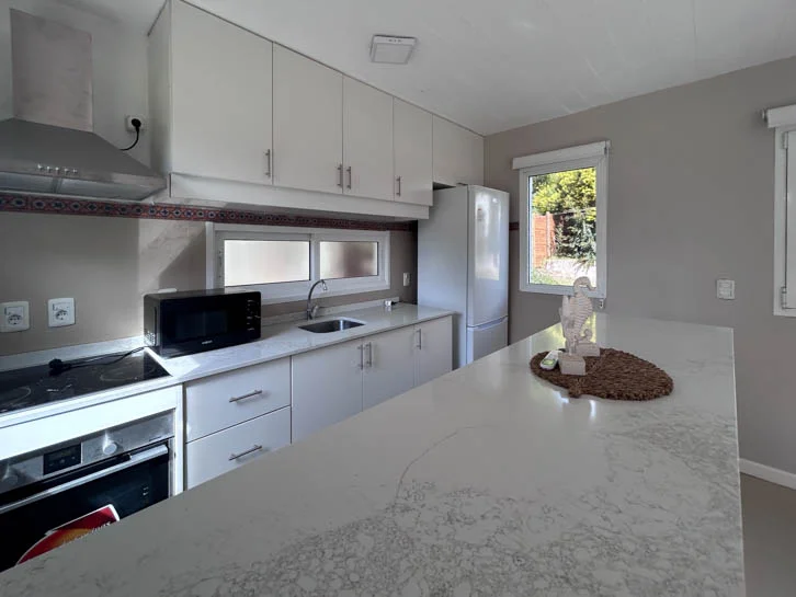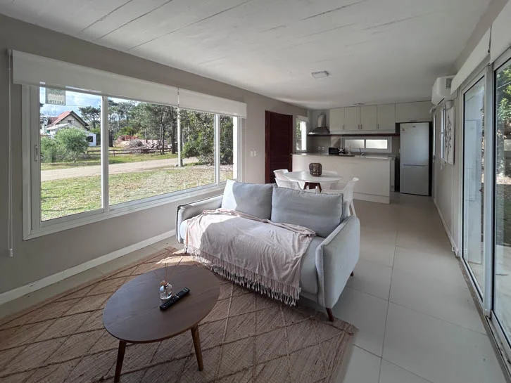 CASA PUNTA COLORADA MALDONADO ESMERALDA CA201378 Casa a estrenar en Punta Colorada, zona muy tranquila, a corta caminata de la playa. De construcción tradicional en ticholo, techo de losa de hormigón, aberturas de aluminio, pisos con porcelanato, y con detalles exteriores con revestimientos en piedra. Distribuida en una sola planta, cuenta con living-comedor con estufa a leña y cocina integrada, dos dormitorios y dos baños (uno en suite). En el exterior, tiene entrada lateral de cochera, parrillero al fondo y predio parcialmente cercado. Son unos 287m² de superficie propia y unos 63m² edificados. Consulte y coordine visita.