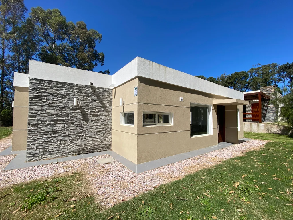 CASA PUNTA COLORADA MALDONADO ONIX CA201377 Casa a estrenar en Punta Colorada, zona muy tranquila, a corta caminata de la playa. De construcción tradicional en ticholo, techo de losa de hormigón, aberturas de aluminio, pisos con porcelanato, y con detalles exteriores con revestimientos en piedra. Distribuida en una sola planta, cuenta con living-comedor con estufa a leña y cocina integrada, dos dormitorios y dos baños (uno en suite). Predio parcialmente cercado y parrillero al fondo. Son unos 327m² de superficie propia y unos 67m² edificados. Consulte y coordine visita.