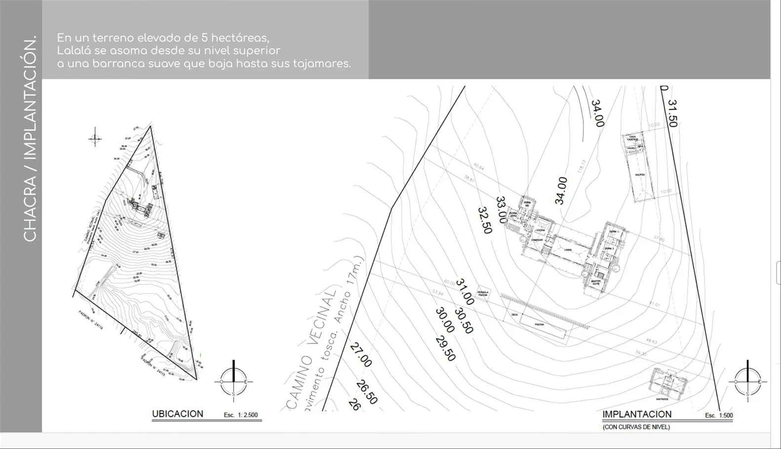 El terreno conserva un encantador núcleo de coronillas añejas y ha sido forestado con más de 500 especies nativas cuidadosamente seleccionadas. El paisajismo, diseñado por el reconocido especialista local Raúl Rosas, combina colores, texturas y protección natural para garantizar belleza y privacidad durante todo el año.