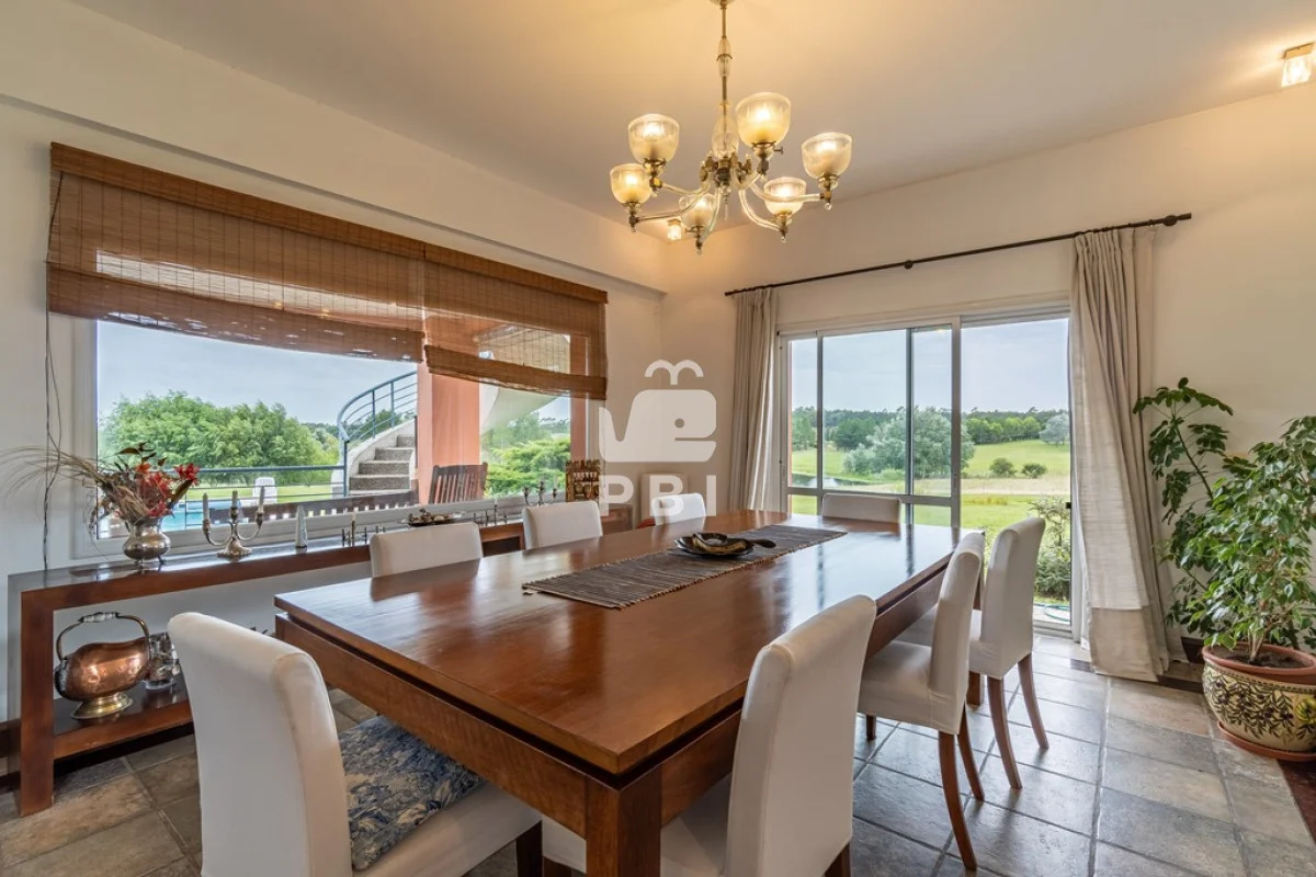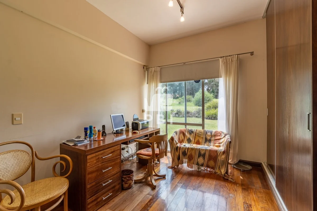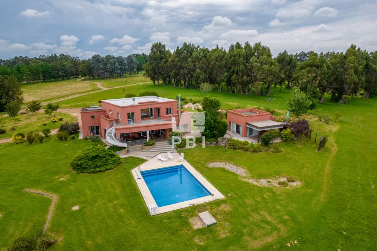 Con casa principal de amplios ambientes desarrollada en 2 niveles con ascensor. Dispone de living con estufa a leña, comedor, cocina con desayunador y despensa, 5 dormitorios (suite principal con escritorio y vestidor) y 4 baños (1 toilette).