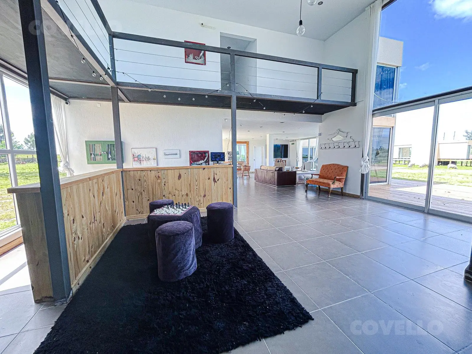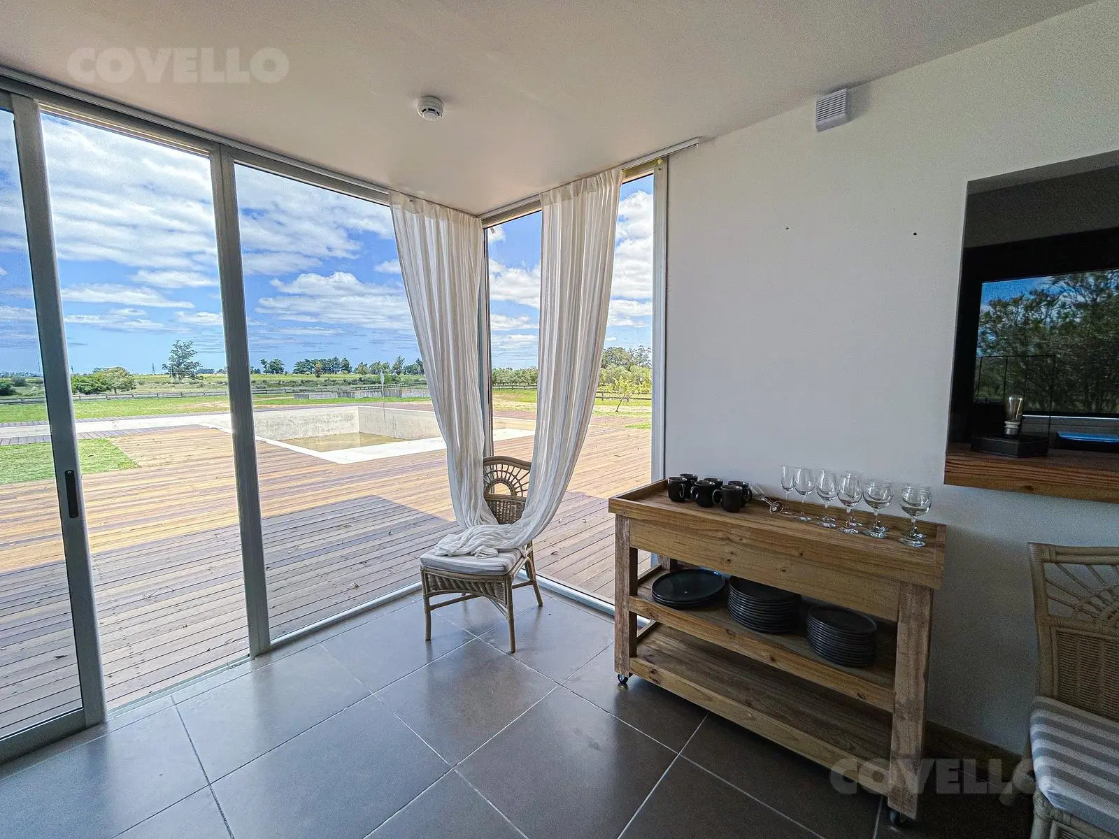 El complejo incluye una casa principal de estilo contemporáneo y una casa de huéspedes independiente, ideal para recibir visitantes o desarrollar un proyecto turístico. Las áreas comunes destacan por su diseño elegante y funcional, con amplios ventanales que integran el paisaje al interior.
