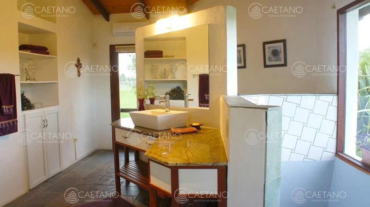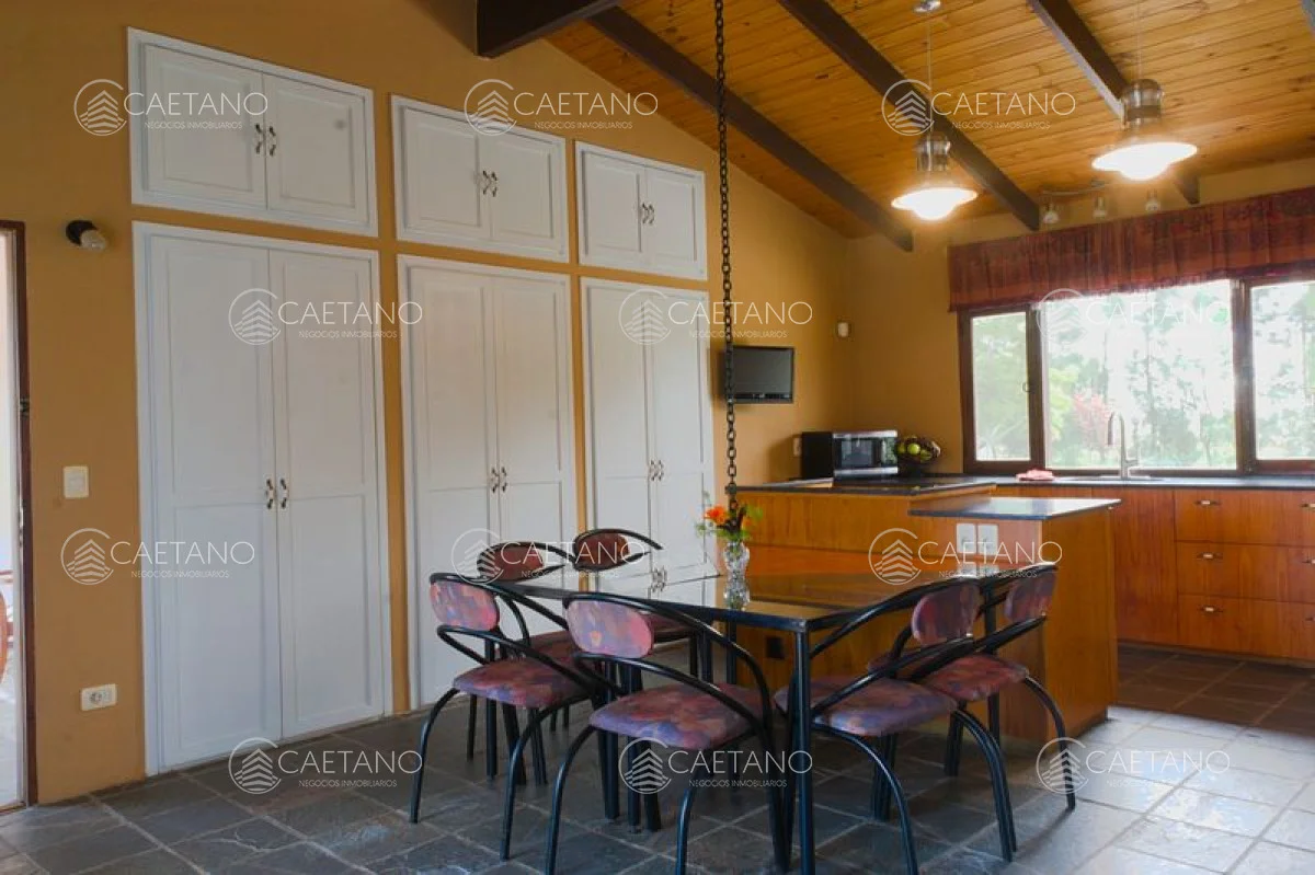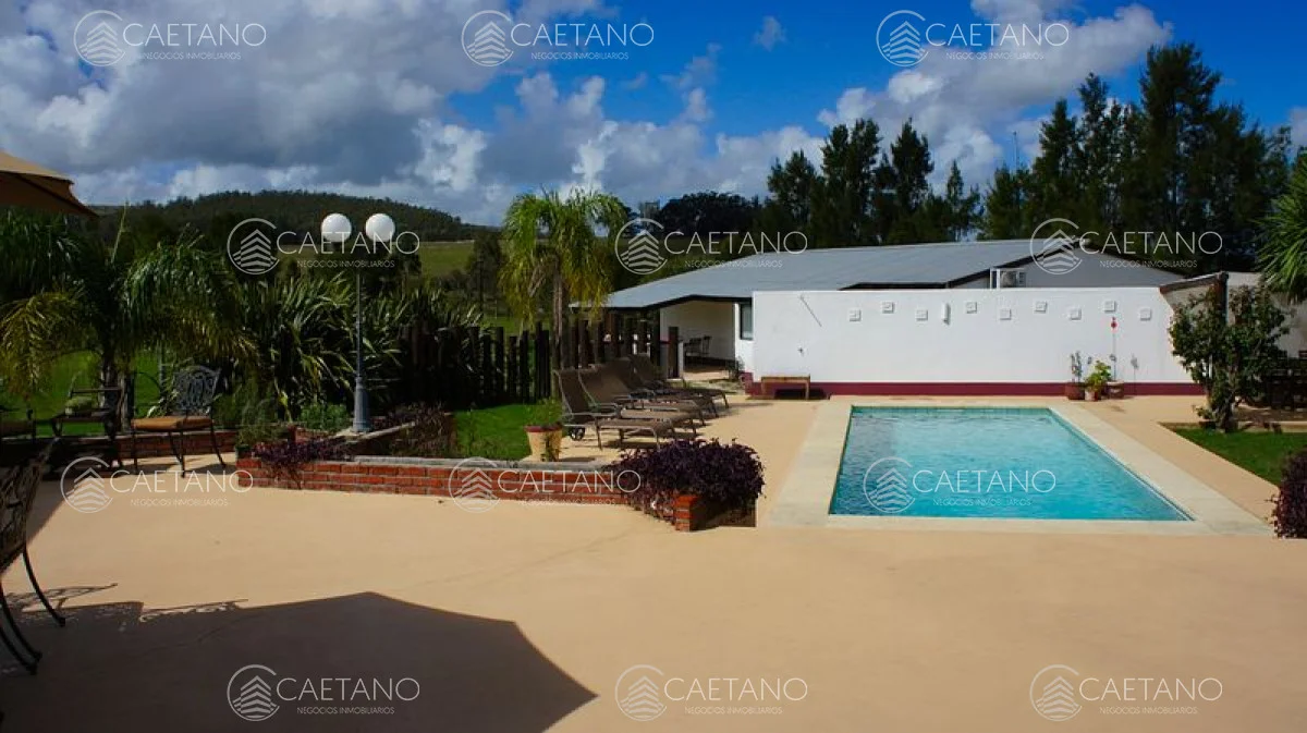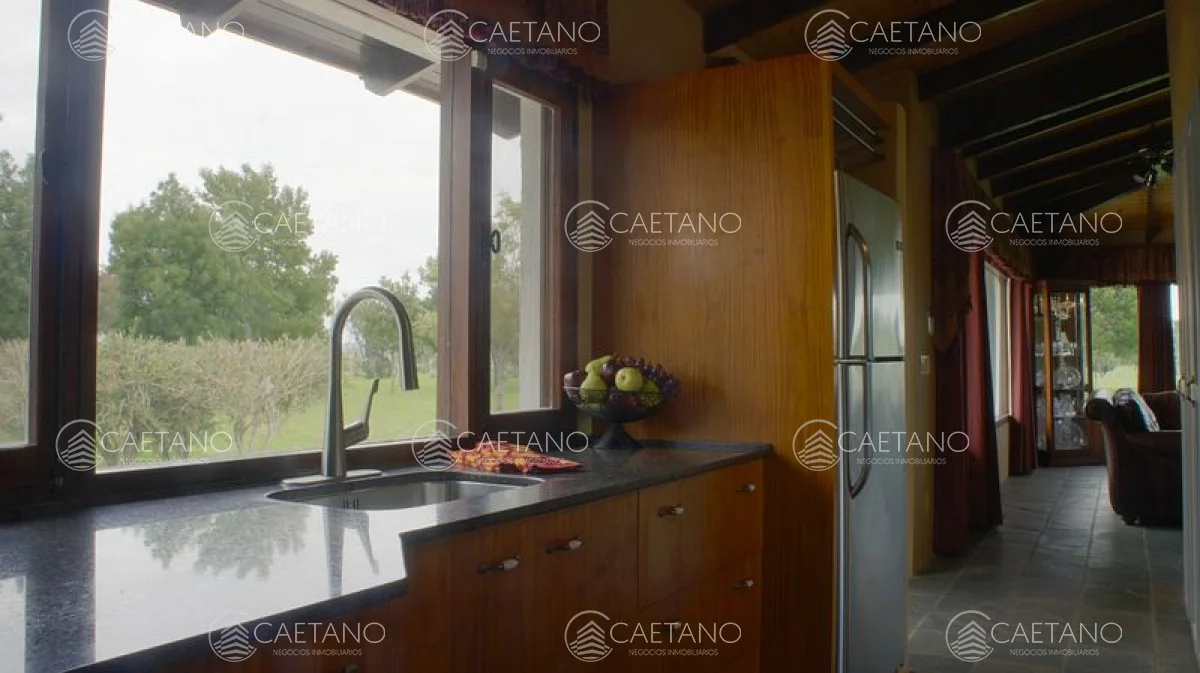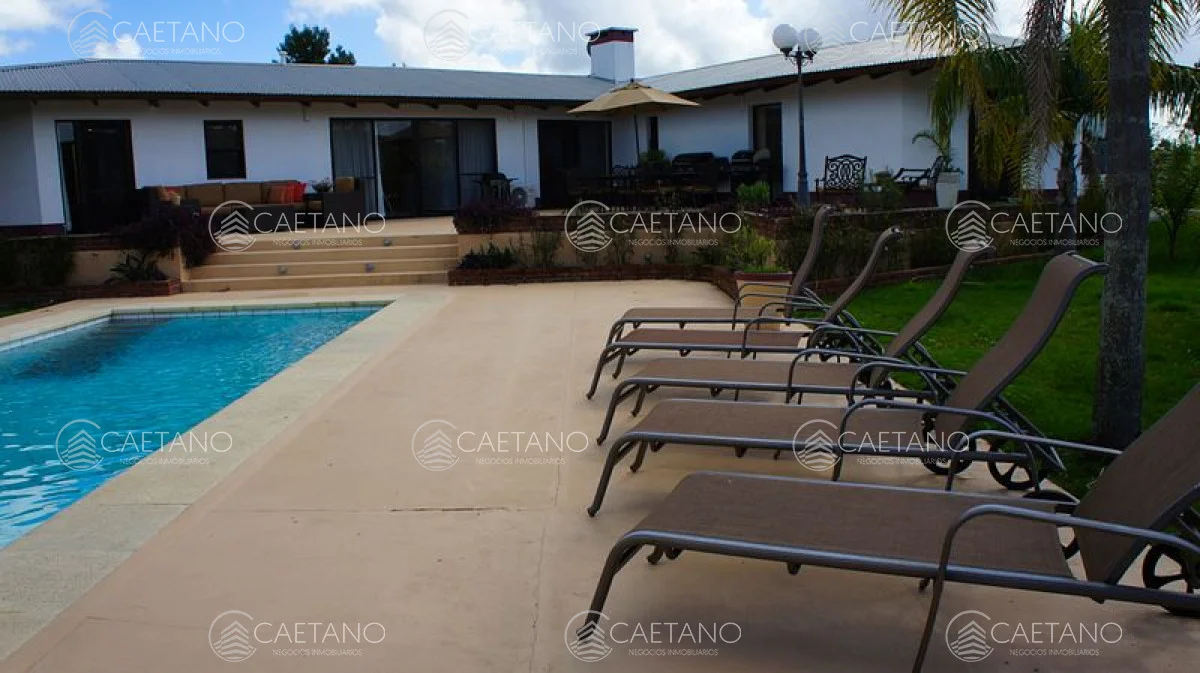 Maravillosa chacra de 5 has, con bellísimas vistas a las sierras, es para aquellos que no quieren hacer ninguna reforma, solo entrar y disfrutar. Renovada completamente con materiales de excelente calidad. Se hizo también toda la parte eléctrica, sanitaria y sistema de agua potable a nuevo. Construida por alemanes, se puede apreciar la alta calidad de construcción. Cuenta con la casa principal, casa de huéspedes, y dormitorio de servicio con un living, cocina y baño completo, aire acondicionado, es básicamente un departamento. Gran garaje. En la casa principal se encuentra el living de techos altos todo en madera, rodeado de ventanas mirando la sierra, Gran estufa a leña que le da mucha calidez al ambiente. De ahí se sale a una pequeña oficina. Toda la casa cuenta con loza radiante a gas. También hay aire acondicionados en cada ambiente. La cocina es muy espaciosa, luminosa y en perfectas condiciones. Comedor formal. Baño social. Lavadero. Gran dormitorio principal en suite, con espectacular baño. Segundo dormitorio de excelente dimensión, en suite, Patio lateral. Hermosa gran terraza con una piscina de importante tamaño, rodeado de un jardín inmaculado. Lugar ideal para disfrutar del verano con amigos. Parrillero cubierto. Casa de huéspedes, con living, cocina integrada, un dormitorio y un baño. Dos aires acondicionados. Con una hermosa galería techada. Incluido en el precio hay un gran conteiner de 40 pies, pintado a nuevo. Toda cercada. Rodeándola se ve una hilera de árboles altos que protegen del viento y dan privacidad.