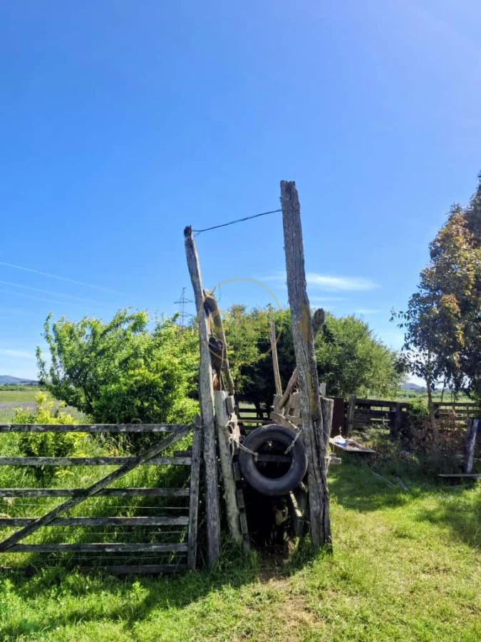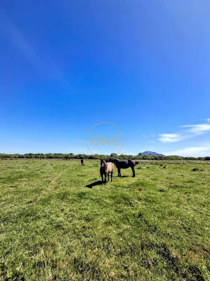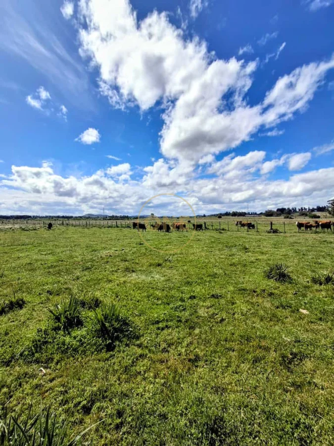 La propiedad cuenta con una casa de un dormitorio, dos galpones para maquinaria agrícola, dos tajamares y una vertiente de agua natural.