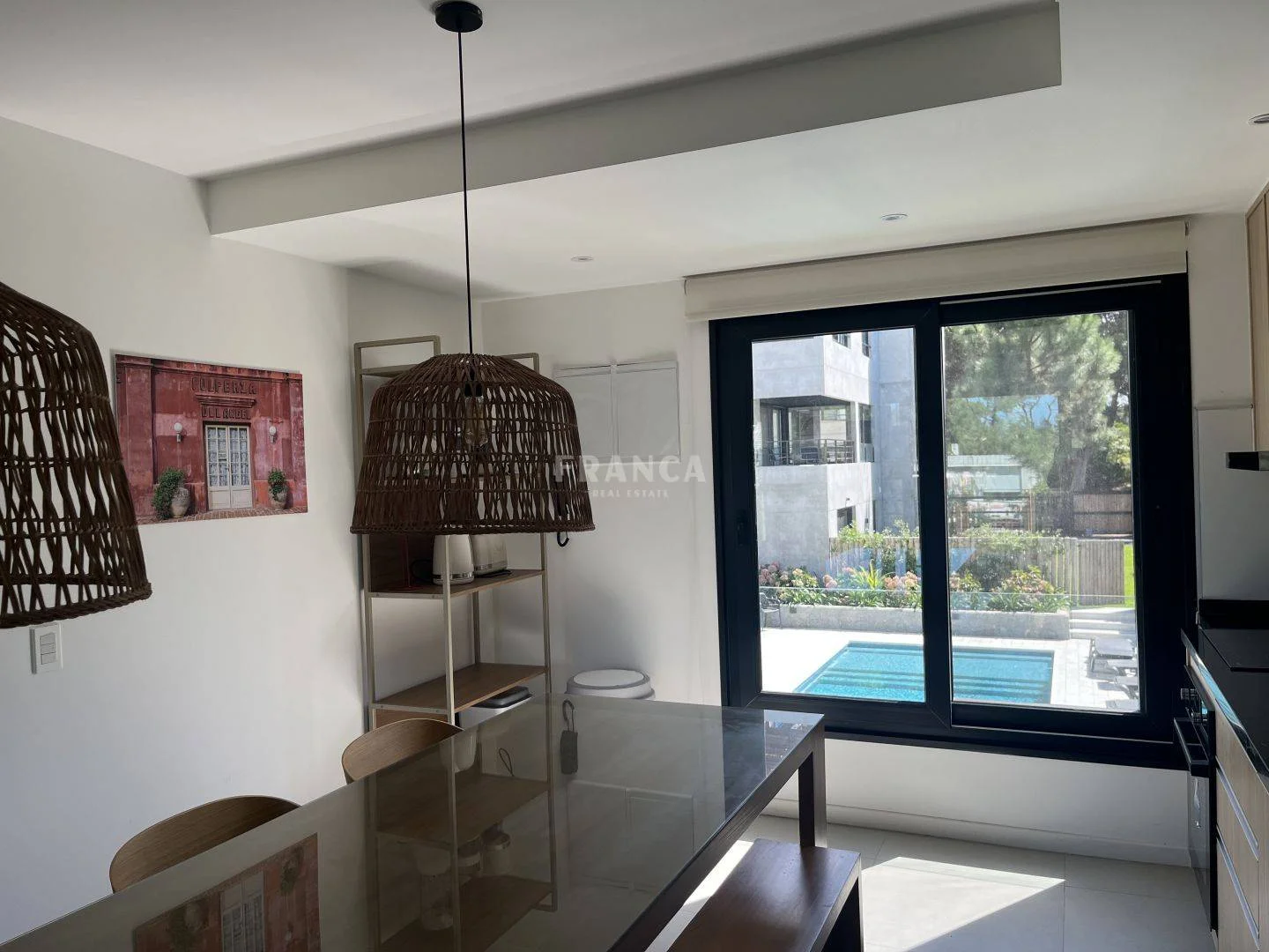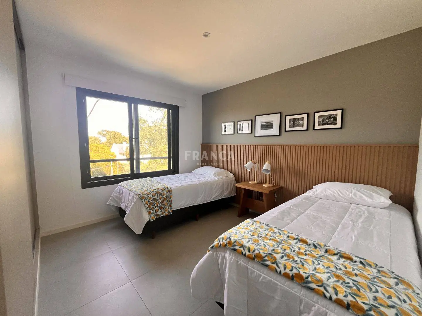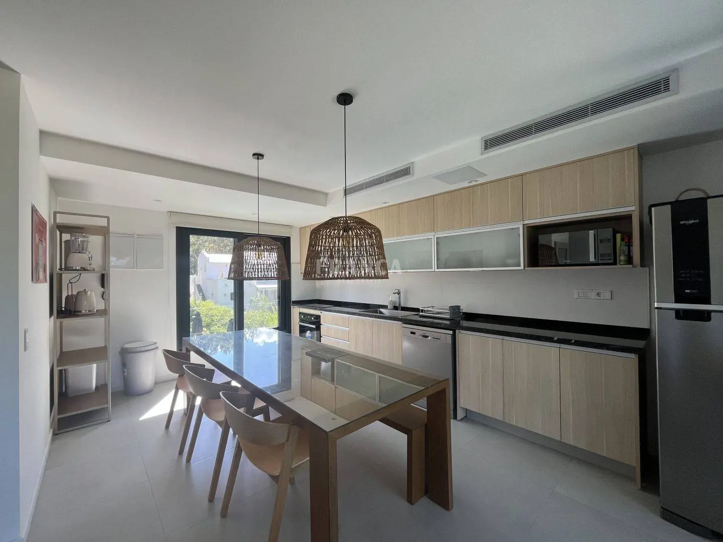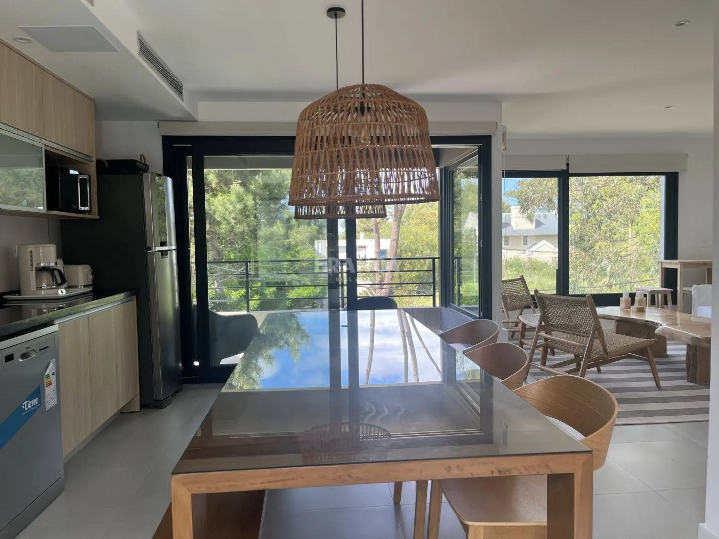 ALQUILER APARTAMENTO TRÍPLEX - 3 DORMITORIOS La Barra, Maldonado - Complejo Bosque Los Suspiros Apartamento tríplex de 3 dormitorios, 2 baños y 1 toilette ubicado en el complejo Bosque Los Suspiros. La unidad se desarrolla en tres niveles: planta baja con living-comedor integrado, cocina equipada y toilette; primer piso con 3 dormitorios donde el principal cuenta con baño en suite y los otros dos comparten un baño completo; segundo piso con terraza privada, parrillero y vistas al mar. La propiedad cuenta con aire acondicionado central y calefacción por losa radiante con bomba de calor. El complejo dispone de piscina, seguridad con videovigilancia y cerramiento perimetral. Ubicado a 6 cuadras del mar, en zona residencial rodeada de bosques y cerca de la zona comercial de La Barra. Acceso directo a restaurantes, comercios y servicios de la zona. Ideal para alquiler vacacional o residencia permanente. VALOR PUBLICADO CORRESPONDE AL VALOR DE ALQUILER INVERNAL DE MARO A NOVIEMBRE Para más información y coordinar visitas, contactar con nuestros agentes. . Caracteristicas: BALCON, DORMITORIO EN SUITE, LIVING, LIVING COMEDOR, TOILETTE, PLACARD EN DORMITORIO, ALARMA, CALEFON, COCINA, HELADERA, TELEFONO, WIFI, VISTA AL MAR XINTEL (FRO-FRO-1363)