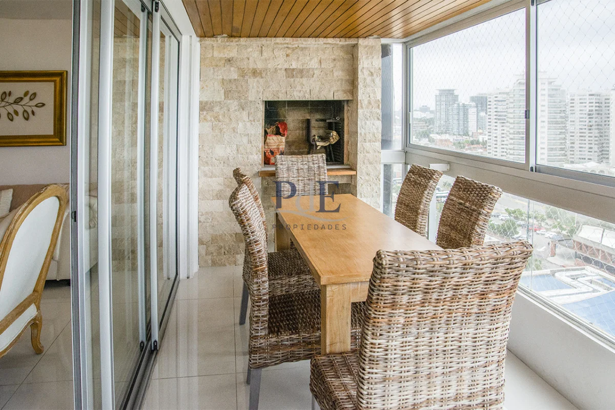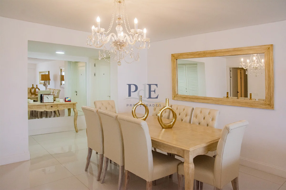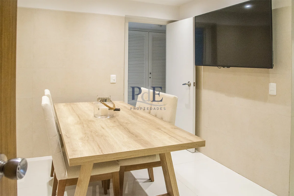 El apartamento cuenta con 3 dormitorios y 3 baños, lo que lo hace ideal para alojar cómodamente hasta 6 personas. La cocina está bien equipada y se integra de manera elegante con el comedor y el living comedor. Dispone de anafe, heladera con freezer y horno, lo que facilita la preparación de comidas durante su estancia. El apartamento también cuenta con aire acondicionado para mantener un ambiente fresco y confortable.