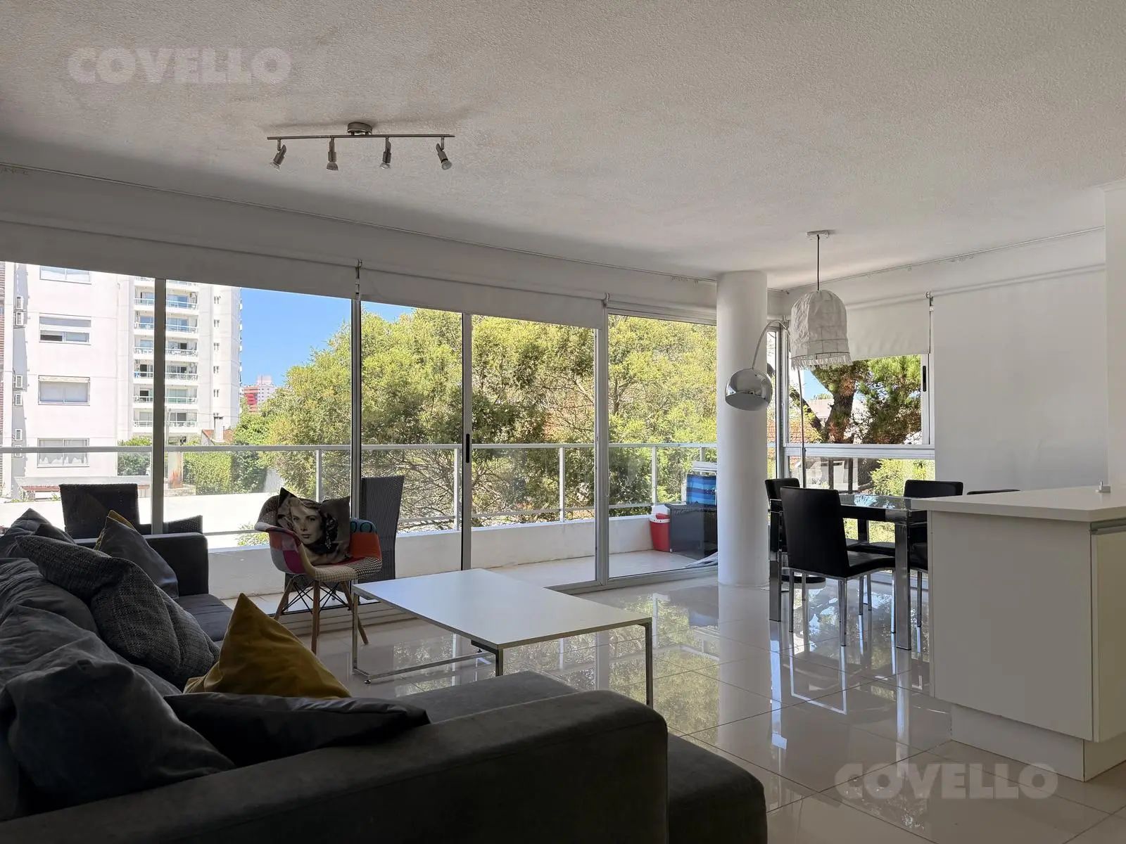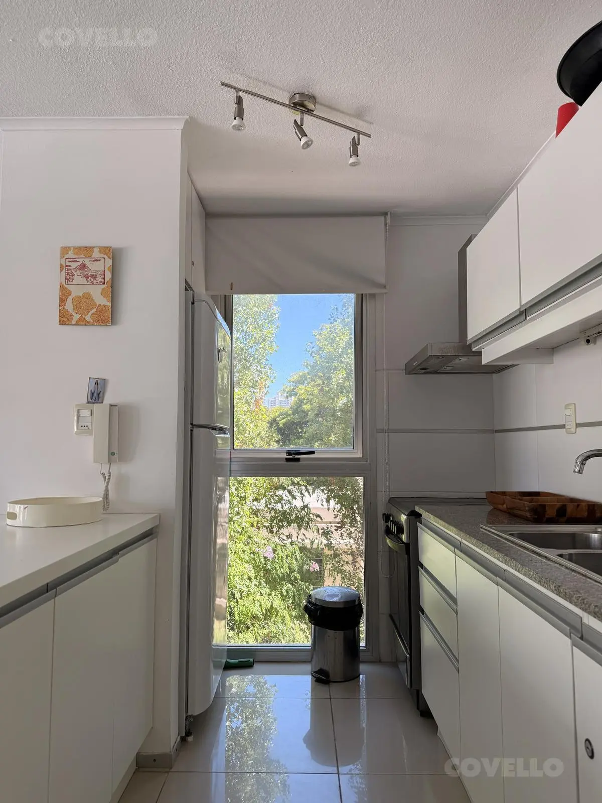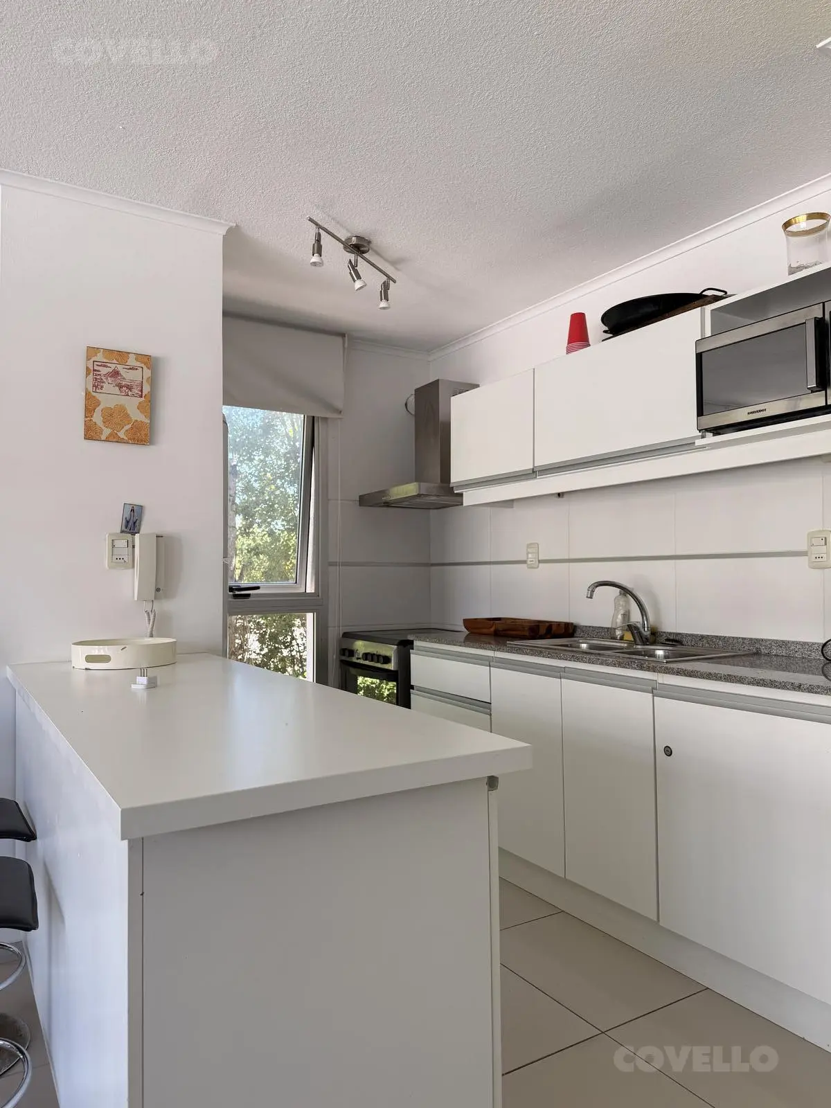 El apartamento cuenta con una disposición de contrafrente que garantiza tranquilidad y privacidad. Al ingresar, encontrará una cocina integrada y un amplio living-comedor que se extiende hacia un balcón terraza, perfecto para disfrutar de momentos al aire libre.
