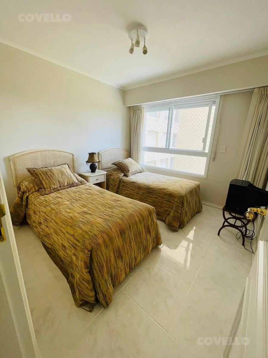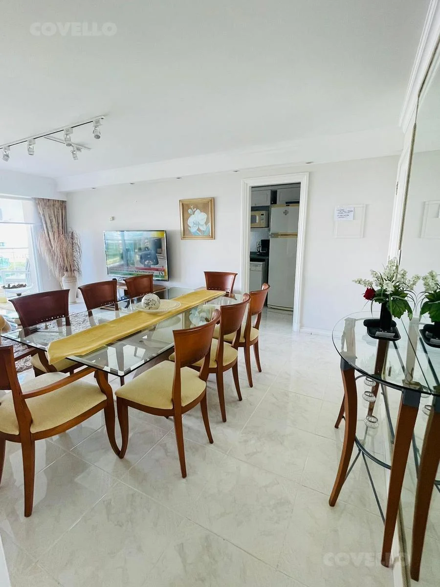 Departamento de 3 dormitorios (1 en suite) frente al mar, en emblemático edificio de Punta del Este. Amplio living-comedor con salida a terraza y vista directa al mar, cocina definida y 2 baños.