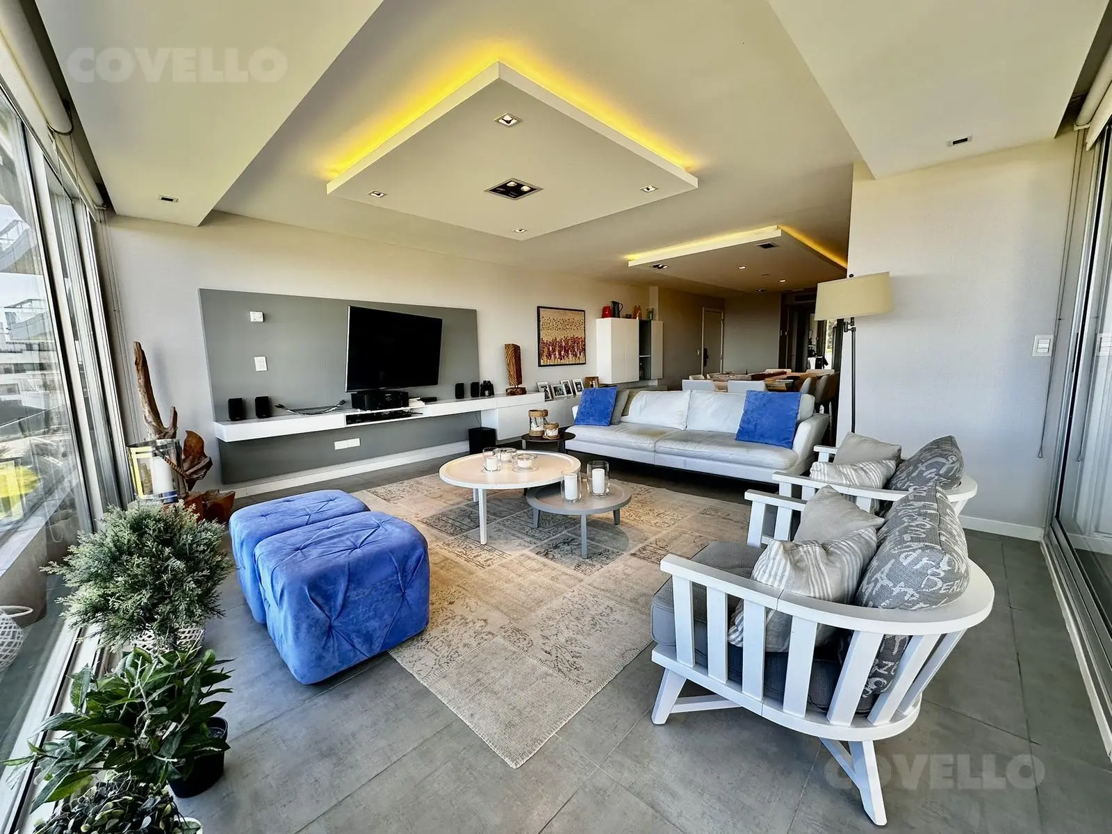 La unidad, de 154 m² interiores, se encuentra al frente y en esquina, con un espectacular balcón esquinero de 21 m² con acceso directo desde el living comedor y la suite principal. Cuenta con 3 dormitorios en suite, toilette de recepción, dependencia de servicio con baño, cocina definida de generosas dimensiones, terraza lavadero al fondo y un segundo balcón de 14 m² que complementa la propuesta.