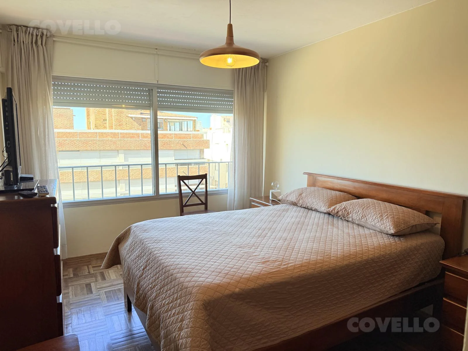Luminoso y funcional, este apartamento ofrece vista directa al mar y excelente ubicación. Cuenta con 1 dormitorio principal, medio dormitorio ideal como oficina o cuarto de niños, 2 baños completos (1 en suite), cocina integrada y living-comedor con grandes ventanales orientados al este.