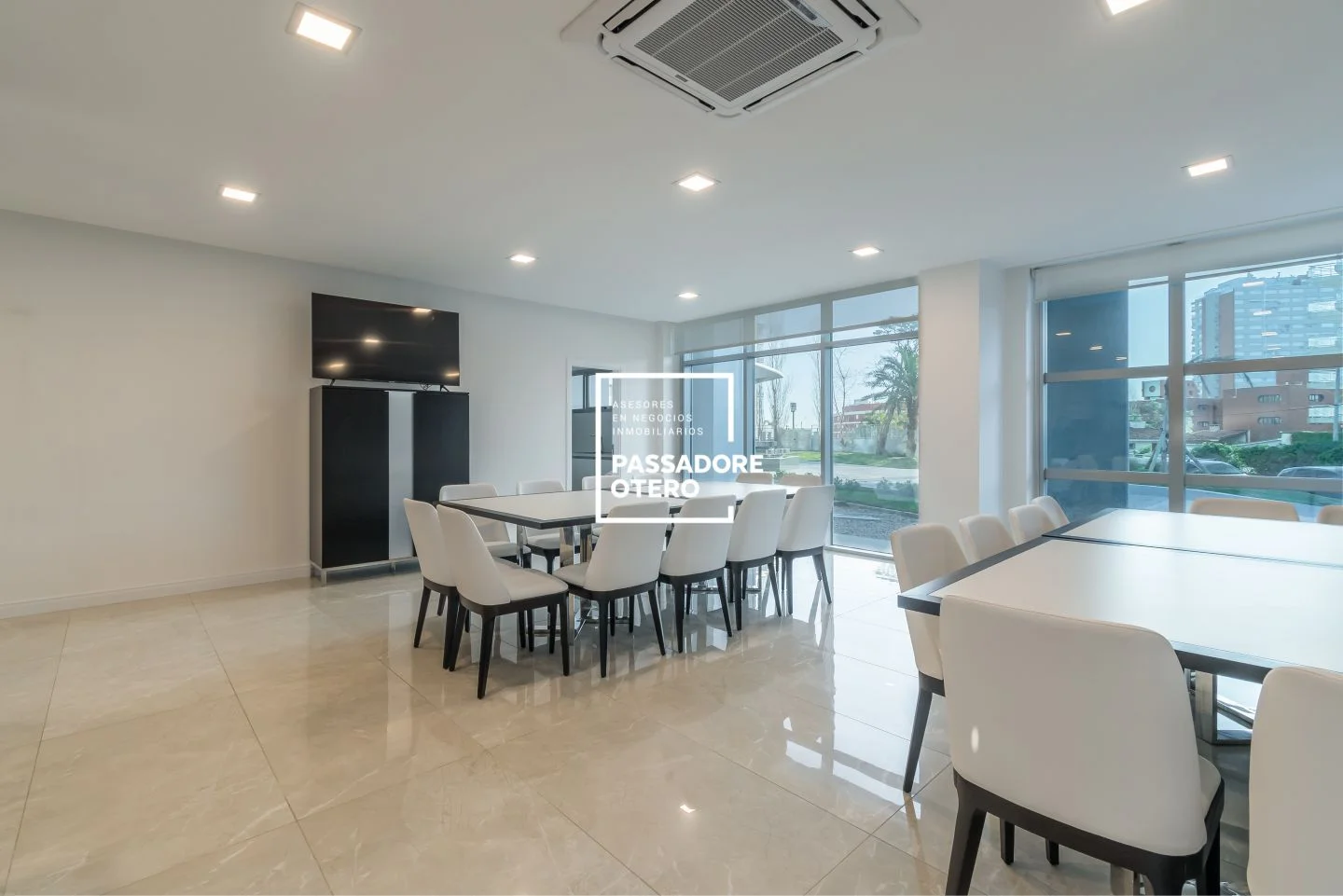 El edificio cuenta con un muy buen nivel de amenities como ser: amplia piscina interior climatizada, piscina exterior, canchas (tenis y fútbol), micro-cine, gimnasio sector de aparatos y sector gimnasia, Business center, salón de juegos, lavandería, servicio de personal doméstico. Parrilleros. (Algunos servicios con costo adicional)