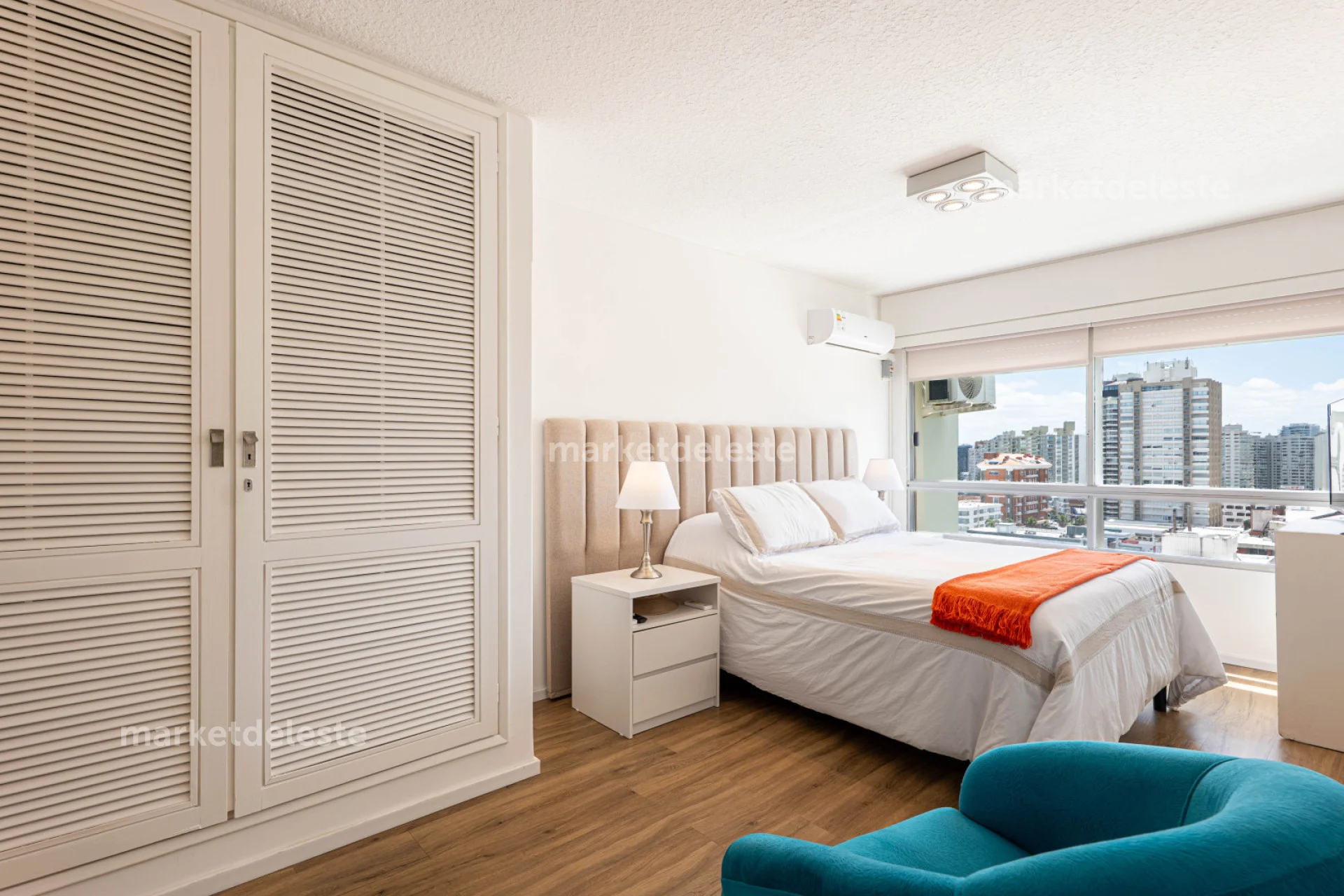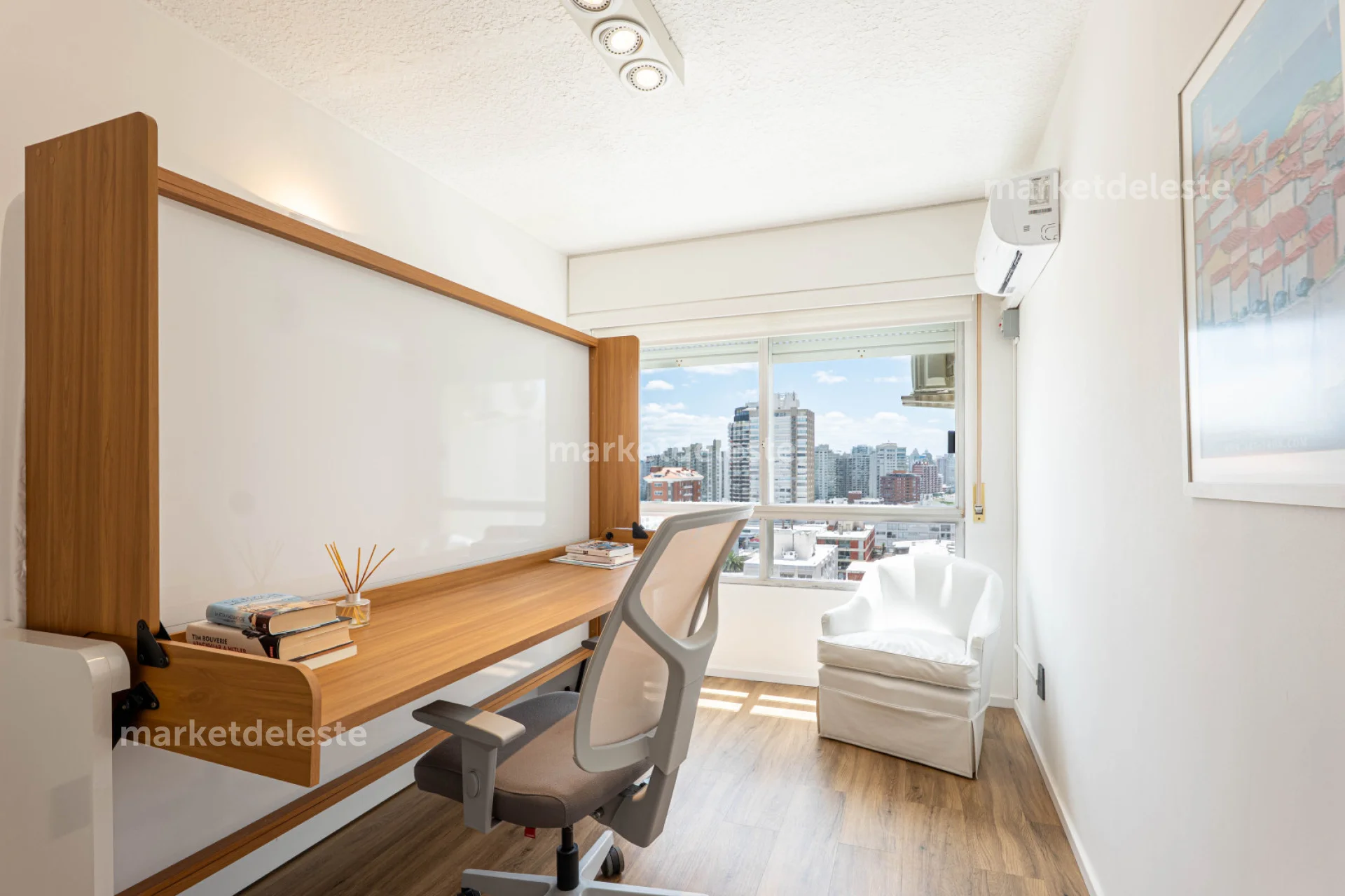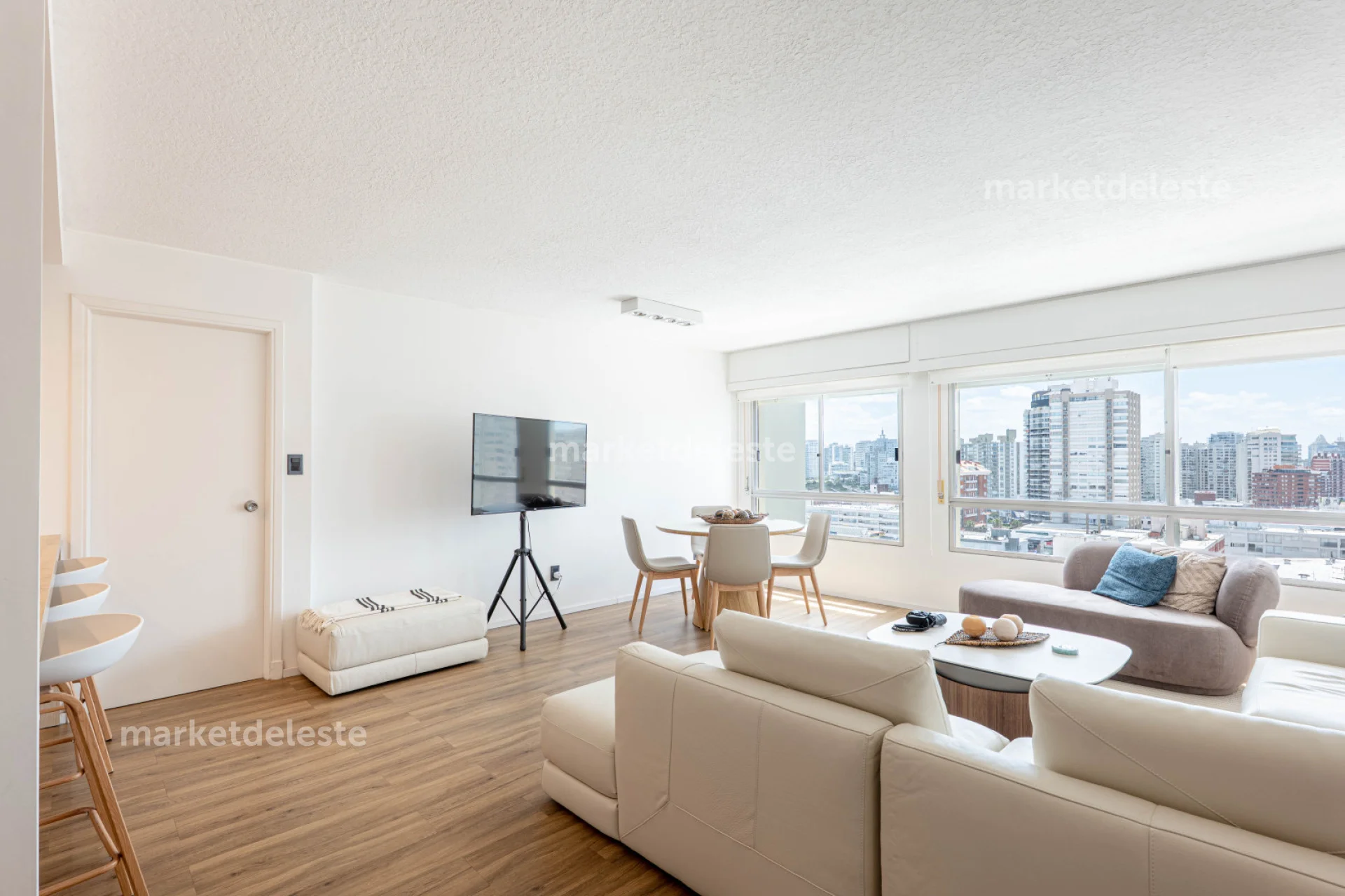 Hermoso departamento totalmente reciclado en la Península, muy luminoso y con excelente orientación solar. Cuenta con dos dormitorios, uno de ellos en suite, más un segundo baño completo. Cocina integrada, moderna y funcional.