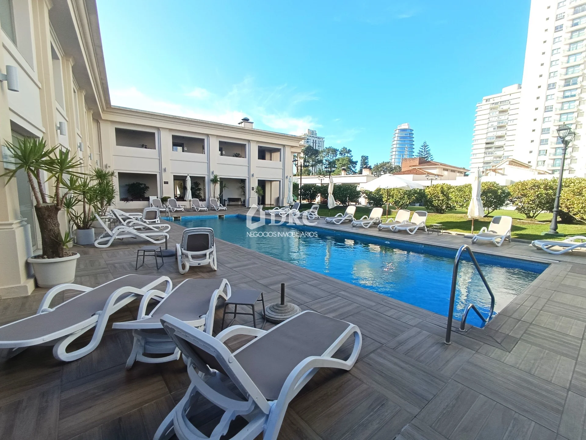 DRC Negocios Inmobiliarios comercializa: Apartamento ubicado a metros de Av. Roosevelt, en edificio muy moderno, con vistas panorámicas, muchas comodidades y servicios, muy luminoso, totalmente amueblado y equipado. Se trata de una preciosa propiedad, sumamente disfrutable en cualquier época del año, con servicios de primera calidad. Acepta permuta por apartamento de 1 dormitorio en Punta del Este. EL APARTAMENTO CONSTA DE: • Living comedor con terraza. • Cocina definida con profusos placares y terraza lavadero. • 2 dormitorios con placares, el principal en suite. • Segundo baño completo. • Garaje para un auto en lugar fijo, con baulera. Cuenta con servicio de mucama los 7 días de la semana durante todo el año. El edificio posee piscina abierta, piscina cerrada, 7 barbacoas, juegos para niños, salón de juegos para jóvenes y adultos, 2 salas de gimnasio, laundry, sauna y servicio de mantenimiento. En verano cuenta con servicio de transporte a la playa con lugares reservados con sombrillas y reposeras. Portería presencial las 24 horas y servicio de vigilancia exterior. Acepta mascotas. Gastos comunes $ 23.000 mensuales (aumentan durante los 3 meses de verano) Acepta financiación bancaria.