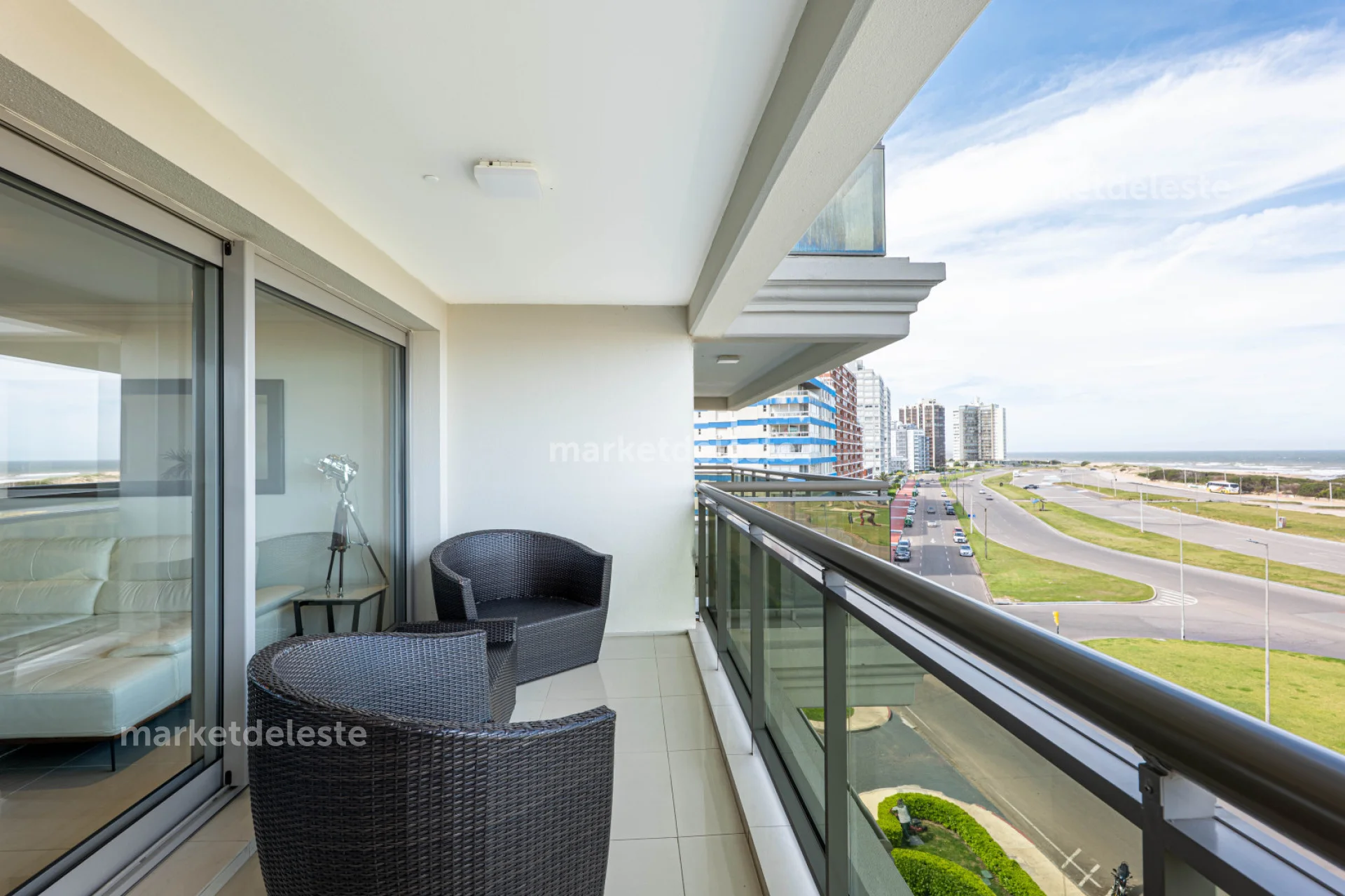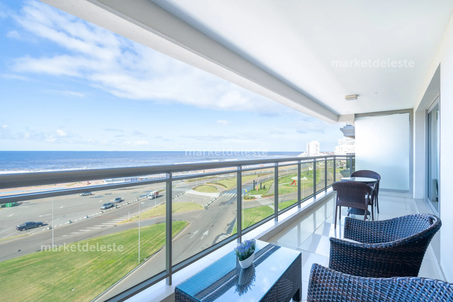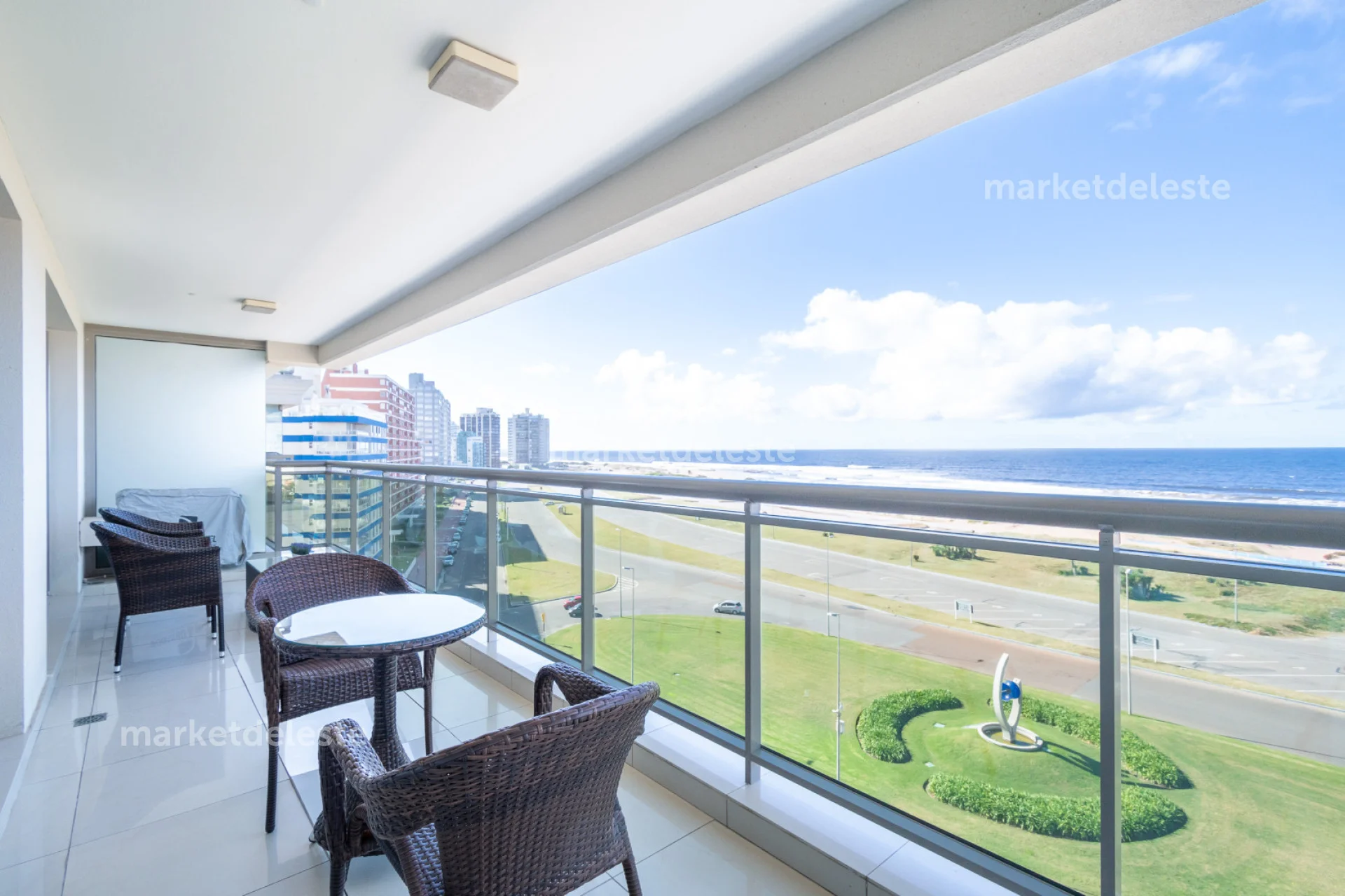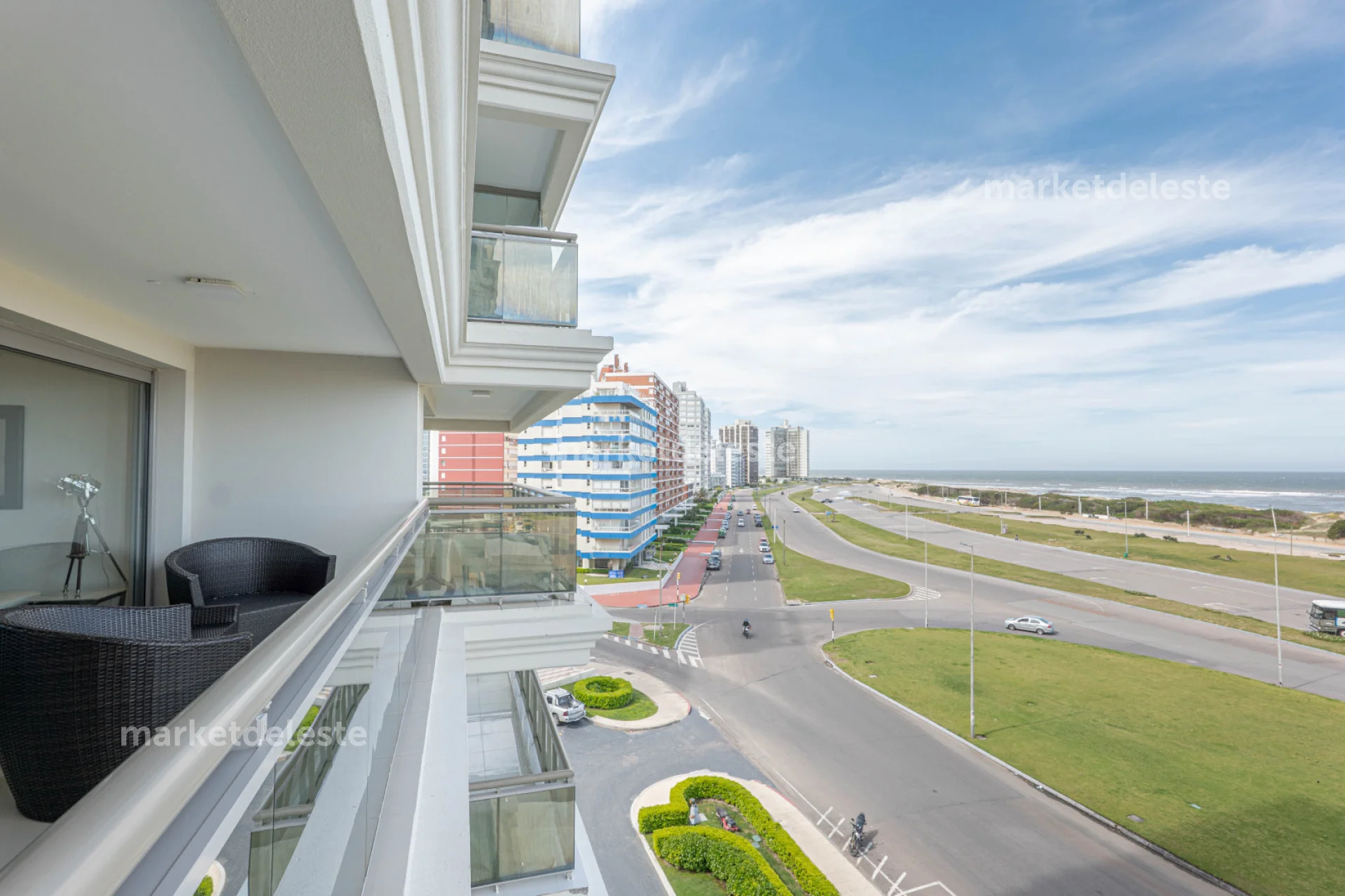 Departamento central de tres dormitorios en suite mas toilette con espectacular living comedor al mar y terraza que abarca todo su ancho. Cocina definida. garaje en subsuelo . muy lindo equipado.