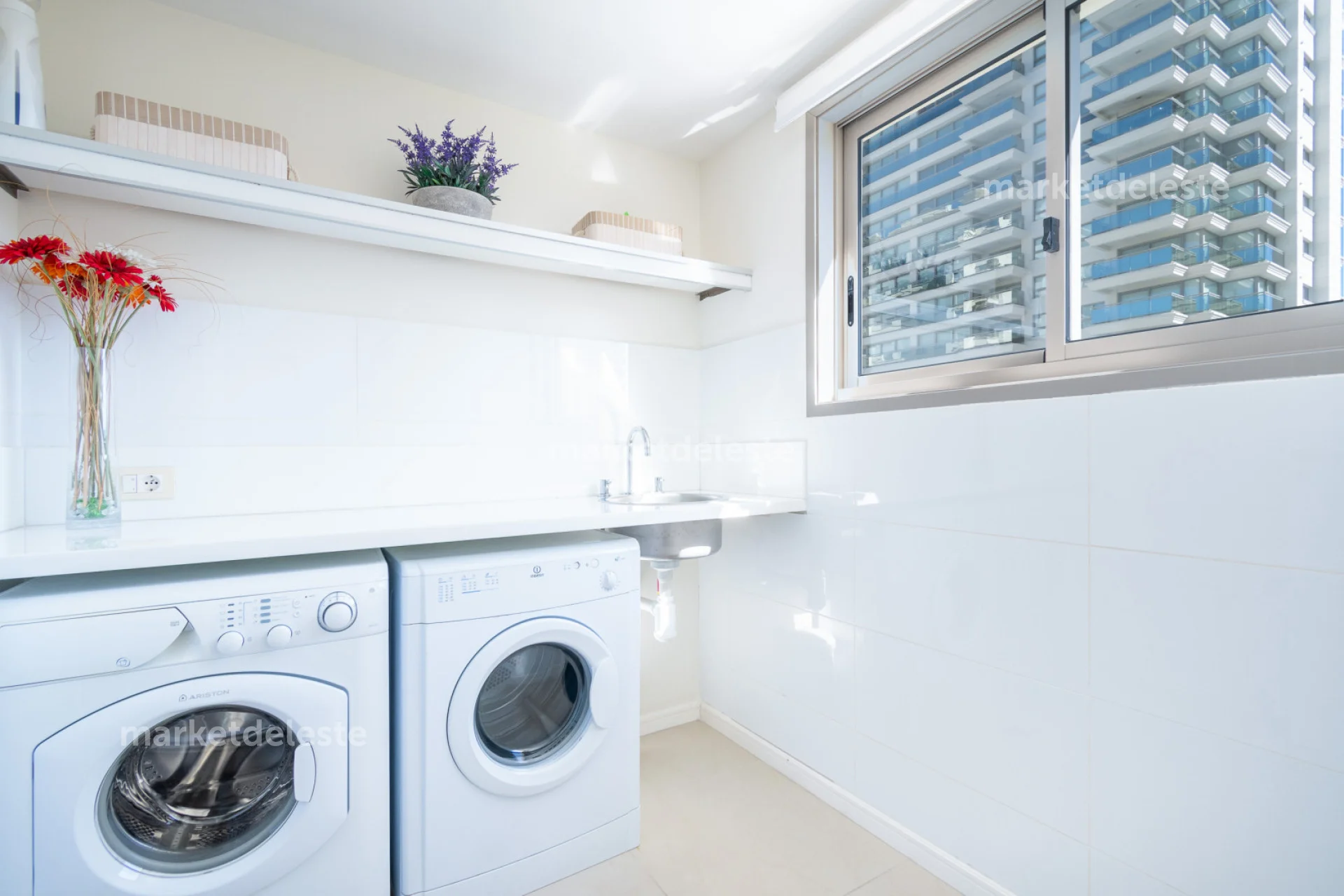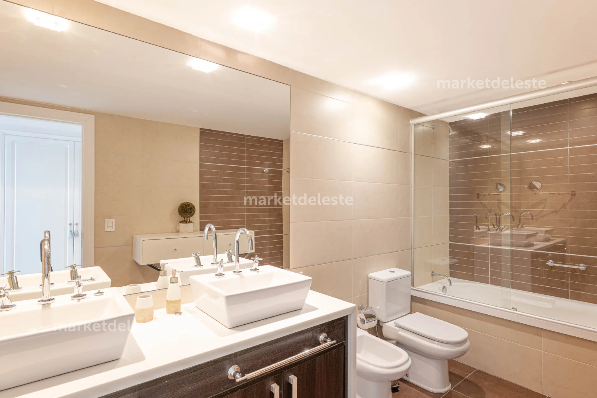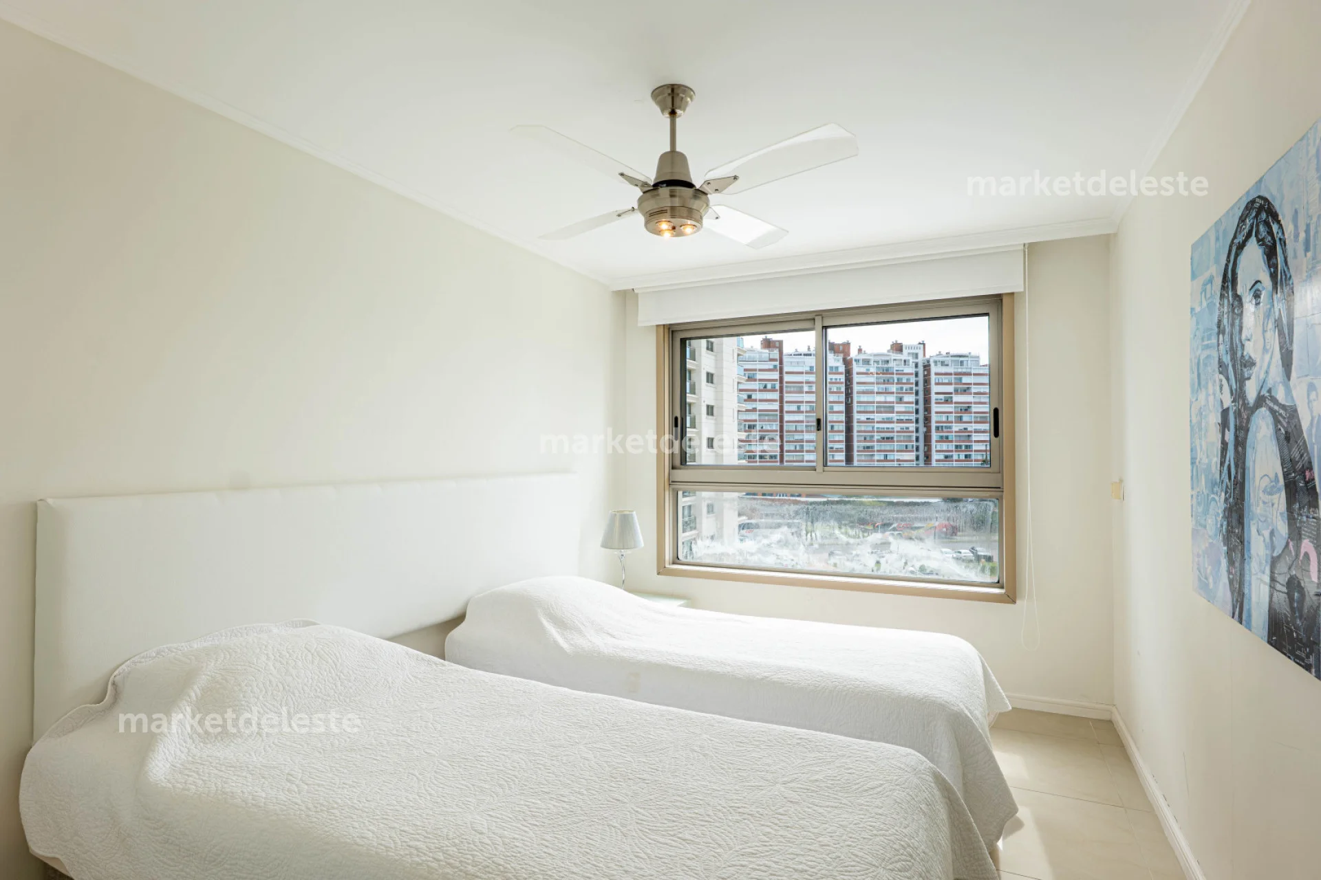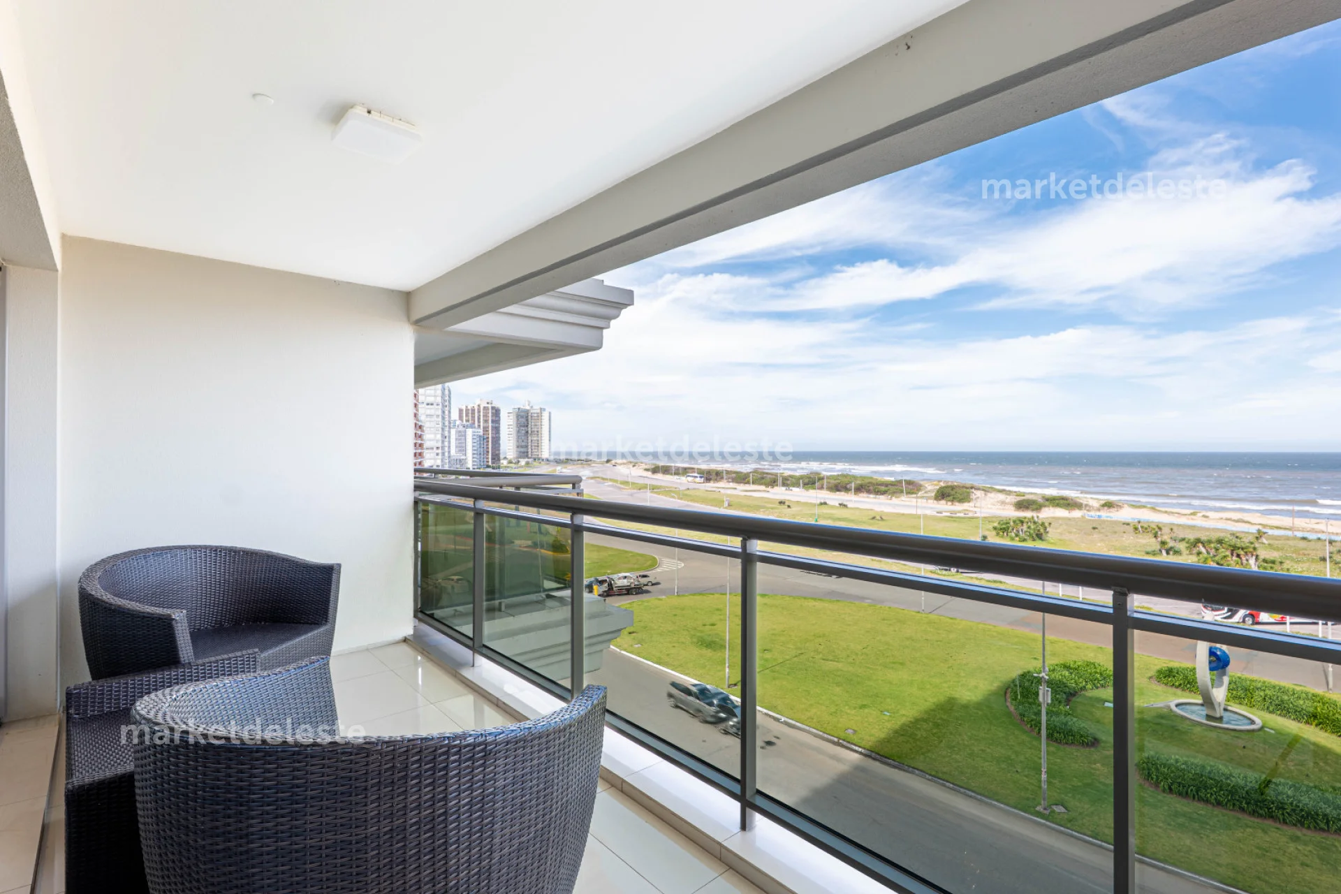 Departamento central de tres dormitorios en suite mas toilette con espectacular living comedor al mar y terraza que abarca todo su ancho. Cocina definida. garaje en subsuelo . muy lindo equipado.