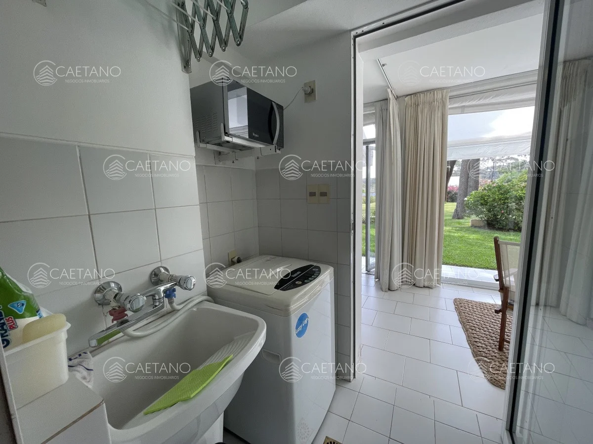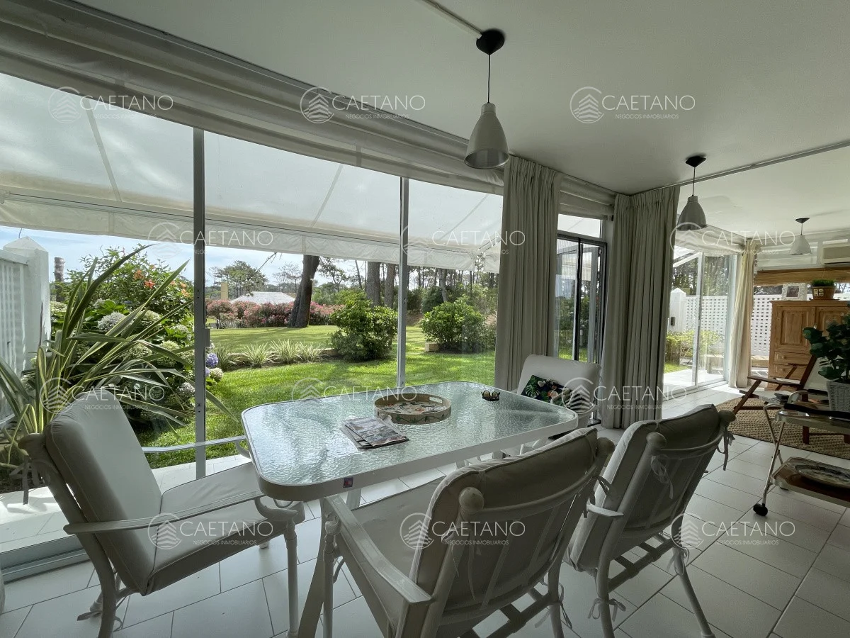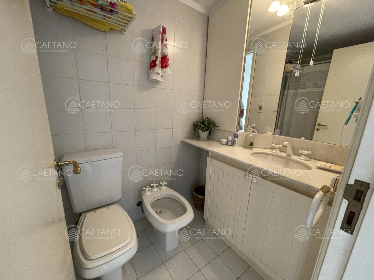 Apartamento en planta baja cuenta con amplia terraza cerrada con Aire Acondicionado ,jardin privado, living comedor con estufa hogar, 2 dormitorios, 2 baños uno de ellos en suite, cocina grande y cochera para 2 autos.