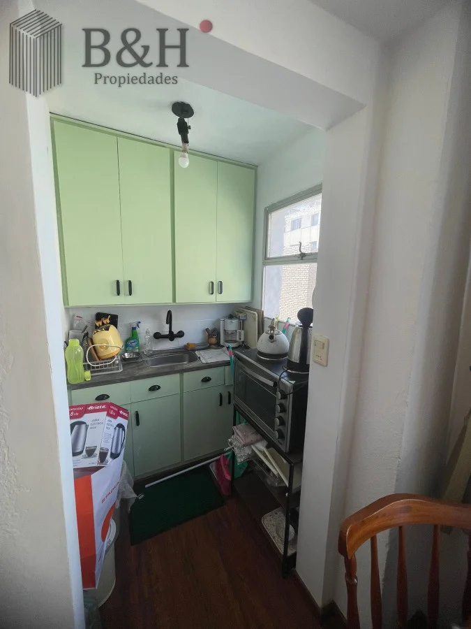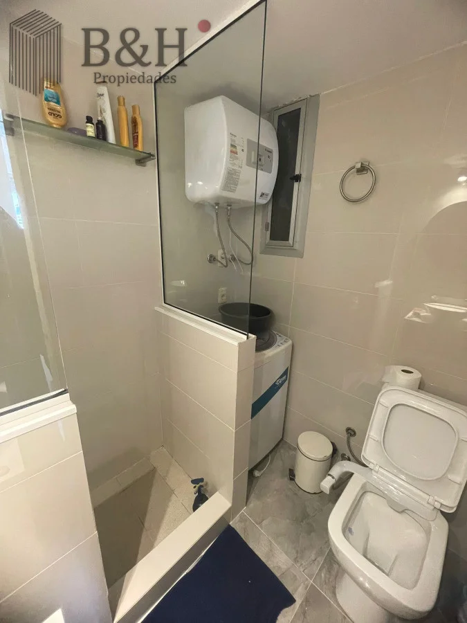 El dormitorio dispone de placard, ofreciendo un espacio de guardado organizado, mientras que la cocina también cuenta con placares que maximizan la comodidad. Entre su equipamiento se destacan anafe, horno, microondas, heladera con freezer, aire acondicionado, TV y baño completo con bidet, garantizando practicidad y confort.