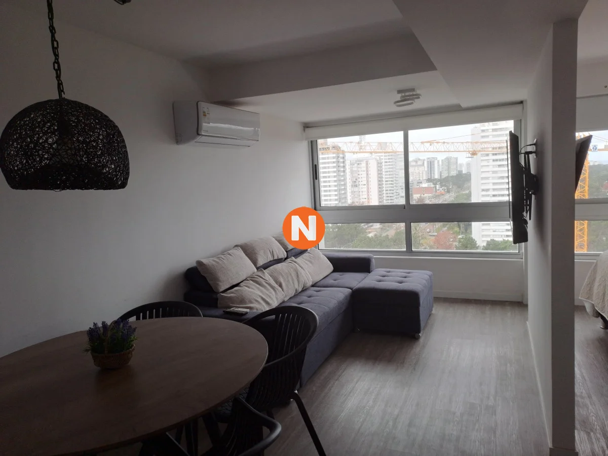 Este elegante apartamento de 1 dormitorio y 1 baño es el oasis perfecto para parejas en busca de comodidad y estilo. Con una capacidad para 2 personas y una cama espaciosa. El diseño moderno y funcional del apartamento incluye una cocina integrada, un acogedor living comedor para disfrutar de deliciosas comidas caseras. Equipado con todo lo que necesitas para una estancia confortable, desde un anafe hasta un microondas y una heladera con freezer, este apartamento lo tiene todo.