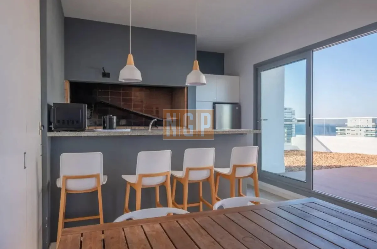 La unidad cuenta con un amplio y luminoso living-comedor con cocina integrada, totalmente equipada y diseñada para