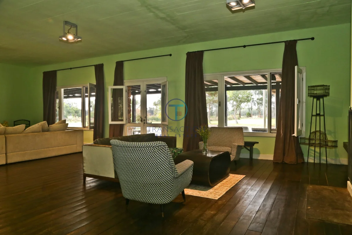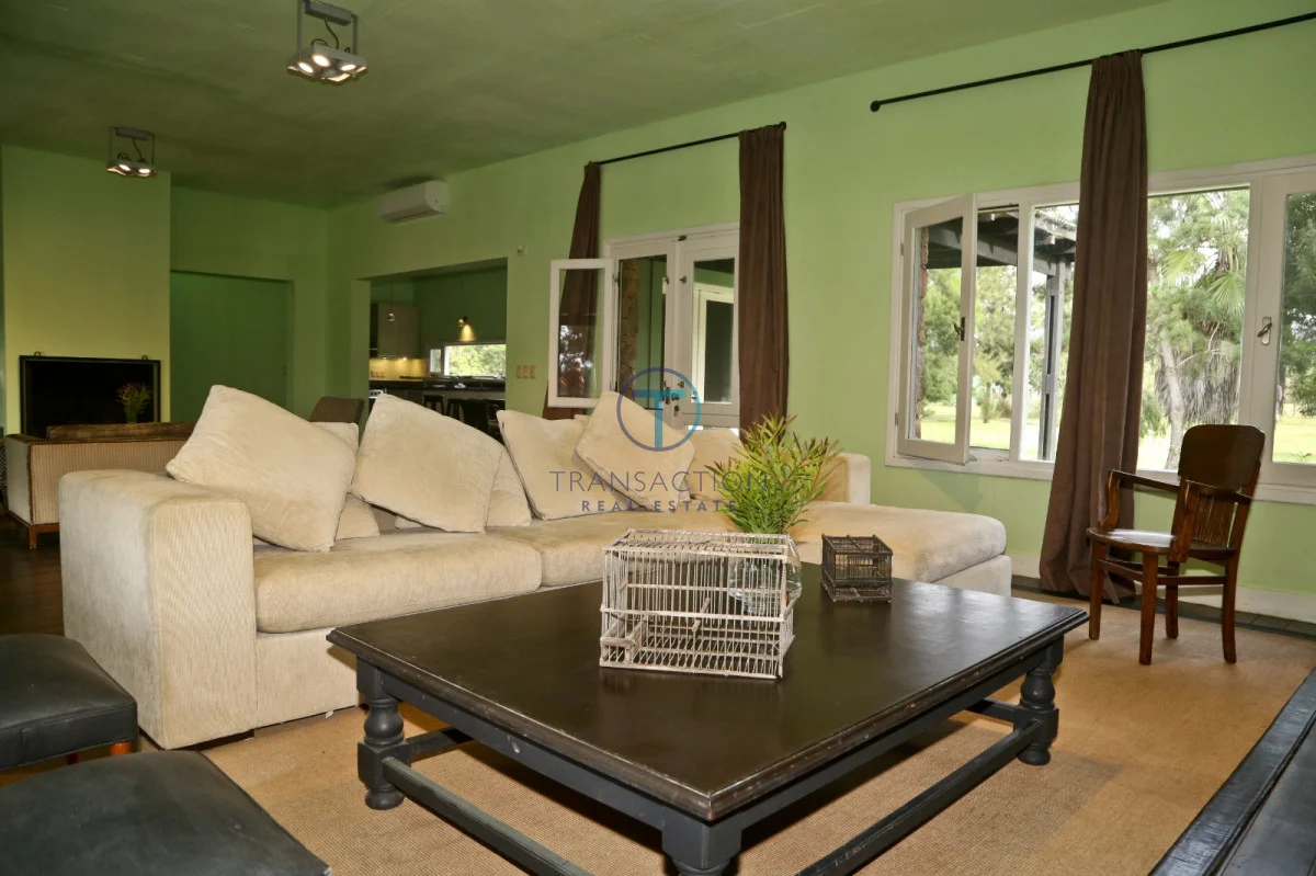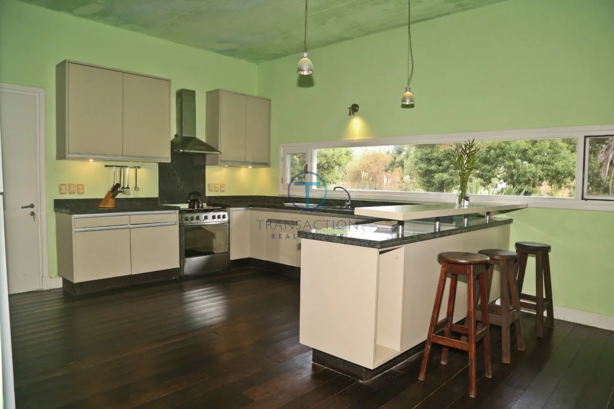 cuenta con un gran Living , con vistas al campo y tiene salida a la Piscina , el comedor esta al lado de la cocina, que la misma tiene una ante cocina y lavadero con entrada de servicio.