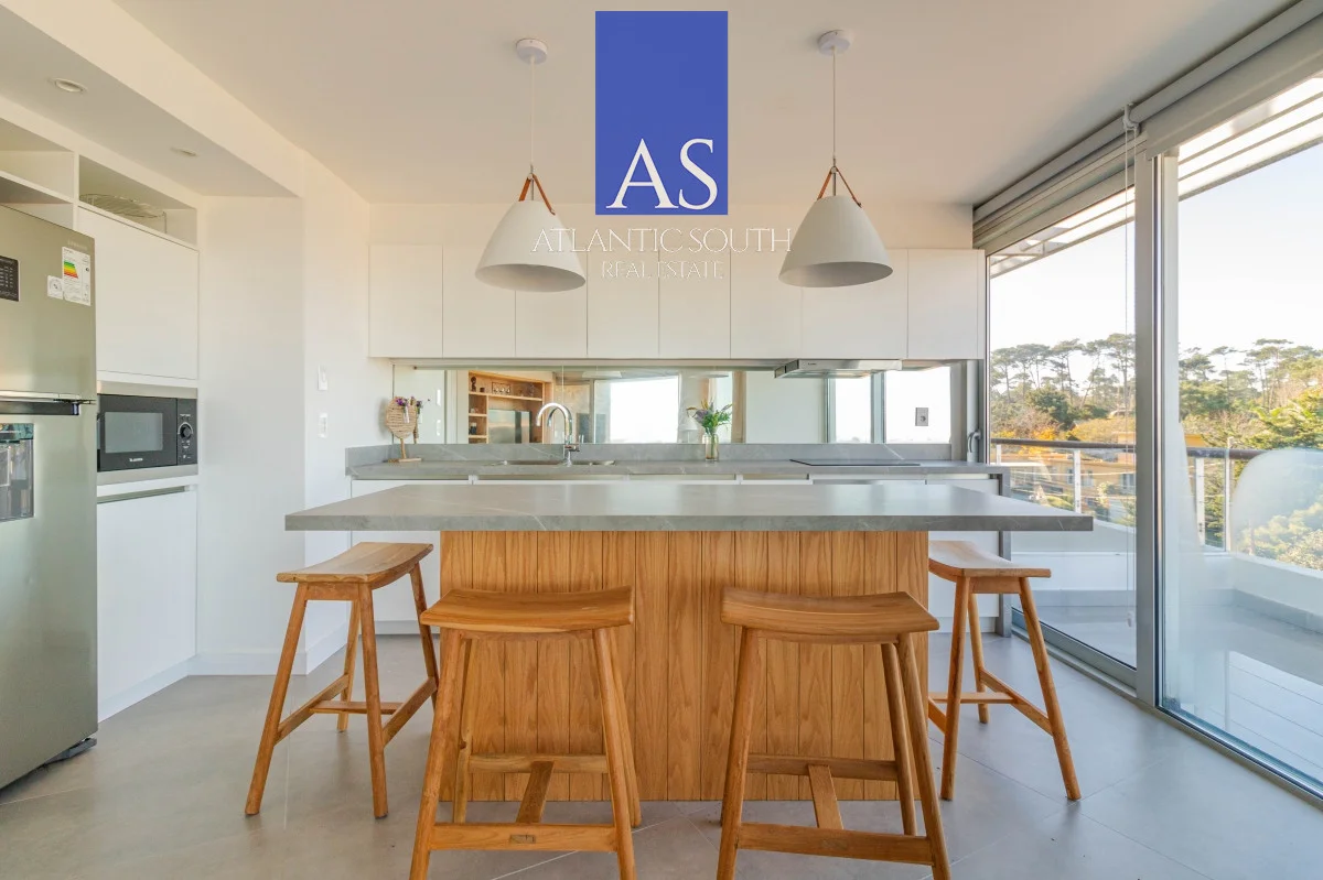 La planta se desarrolla en living-comedor con estufa a leña de alto rendimiento y acceso a terraza con parrillero. Cocina inegrada tipo americana de diseño vanguardista muy bien equipada. Dos dormitorios(el principal en suite), dos baños completos. En la planta alta encontramos una barbacoa con parrillero y otro baño completo. Fue hecha una estructurapara la eventualidad de un cerramiento. Garage en subsuelo.