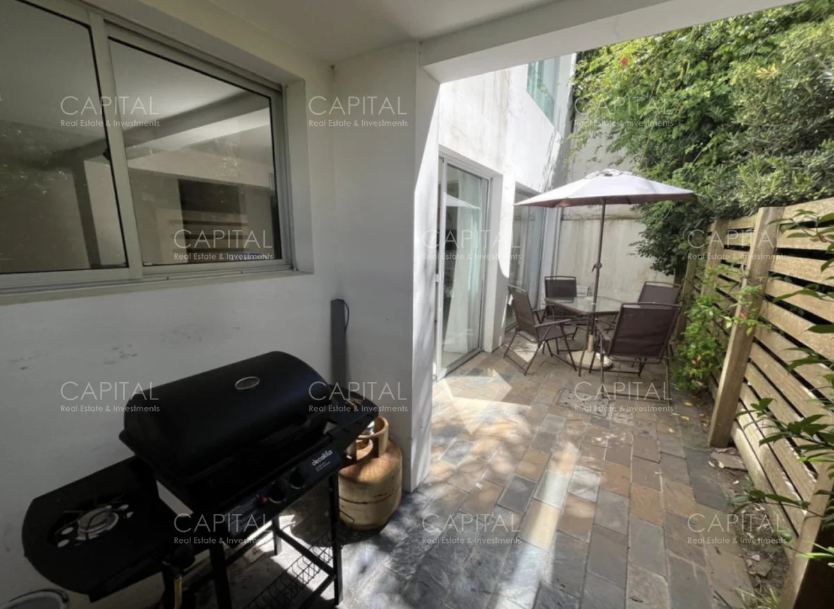 Patio con parrilla a gas. Estacionamiento exterior para 1 vehiculo.