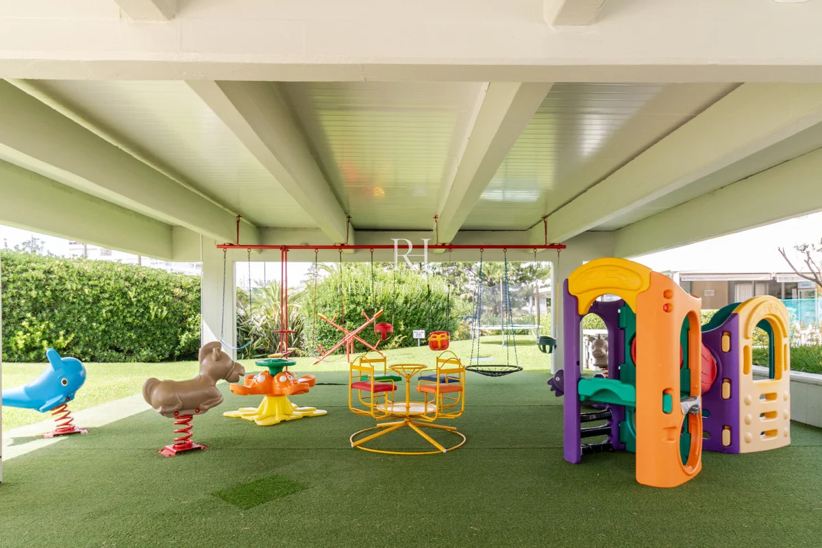 El edificio cuenta con recepción las 24 horas, servicio de mucamas todo el año, piscina climatizada abierta, sala de juegos, gimnasio, sauna, cancha de tenis, estacionamiento de cortesía y en temporada cuenta con restaurante, servicio de playa, lavado de ropa y de autos, y supermercado dentro del complejo. en garage tienen lavadero de autos.