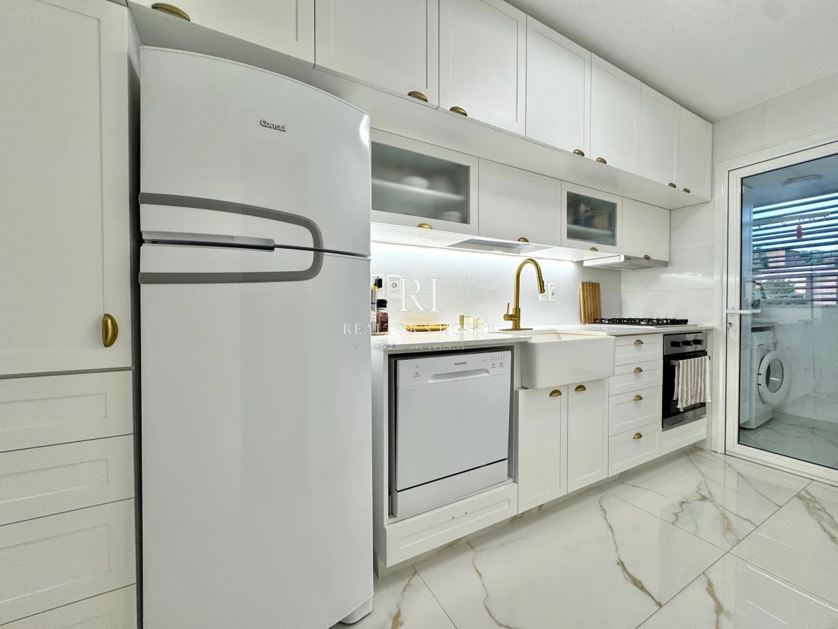 La unidad tiene cuenta vista al mar, tres dormitorios y dos baños (1suite). Posee un amplio living-comedor con terraza, cocina con lavadero y garaje con baulera en subsuelo. Se encuentra reciclado tanto baños como cocina. El apartamento tiene una superficie de 84 m2 propios y 94 m2 totales.
