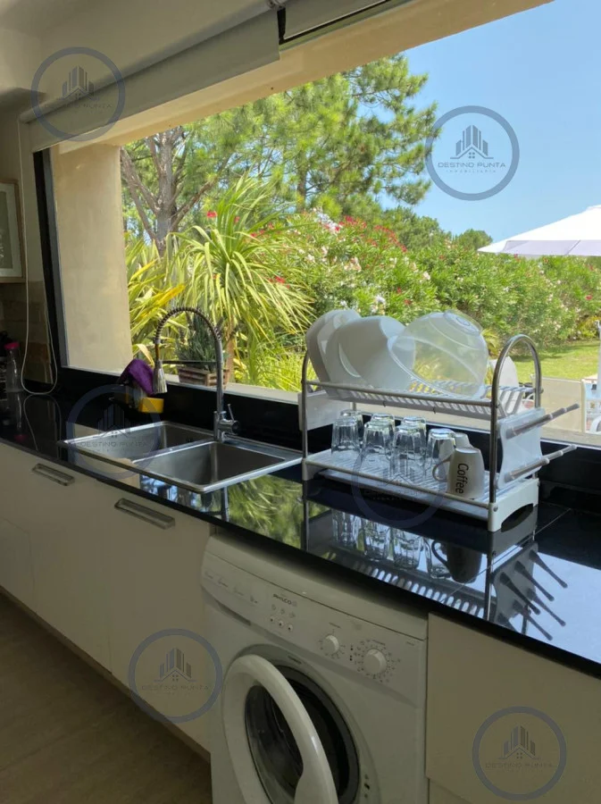 Consta de amplio living comedor con grandes ventanales con vista al verde y muy buena luz natural. Cuenta con cuatro cómodos dormitorios, el principal en suite con vestidor, tres baños completos. Más área de escritorio con sofá cama. Cocina muy bien equipada, semi integrada con isla y desayunador.