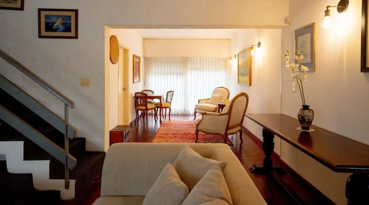 Venta de Casa 3 DORMITORIOS, Punta del Este. Excelente propiedad ubicada a 100 metros del mar en Punta del Este. Esta magnifica casa de construcción tradicional se distribuye en dos plantas y cuenta con 3 amplios dormitorios y 3 baños. Cuenta con amplia cocina definida y amplio living comedor. En la segunda planta se encuentras los dormitorios y una terraza. Fondo con parrillero y un garaje con capacidad para tres vehículos. . Caracteristicas: BALCON, DEPENDENCIA DE SERVICIO, DORMITORIO EN SUITE, LAVADERO, PLAYROOM, SPA, TOILETTE, VESTIDOR, ALARMA, CALEFON, COCINA, HELADERA, LAVARROPAS, LUZ ELECTRICA, TELEFONO, WIFI XINTEL (FRO-FRO-1038)