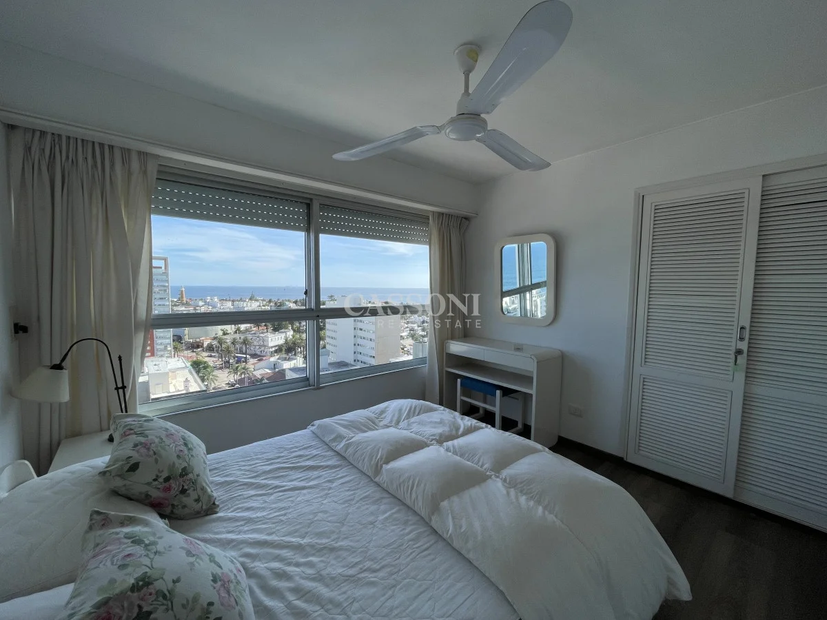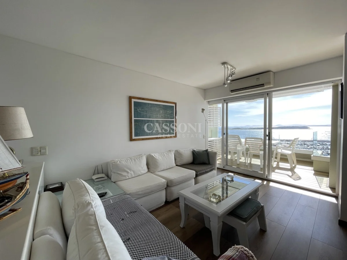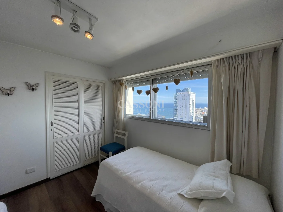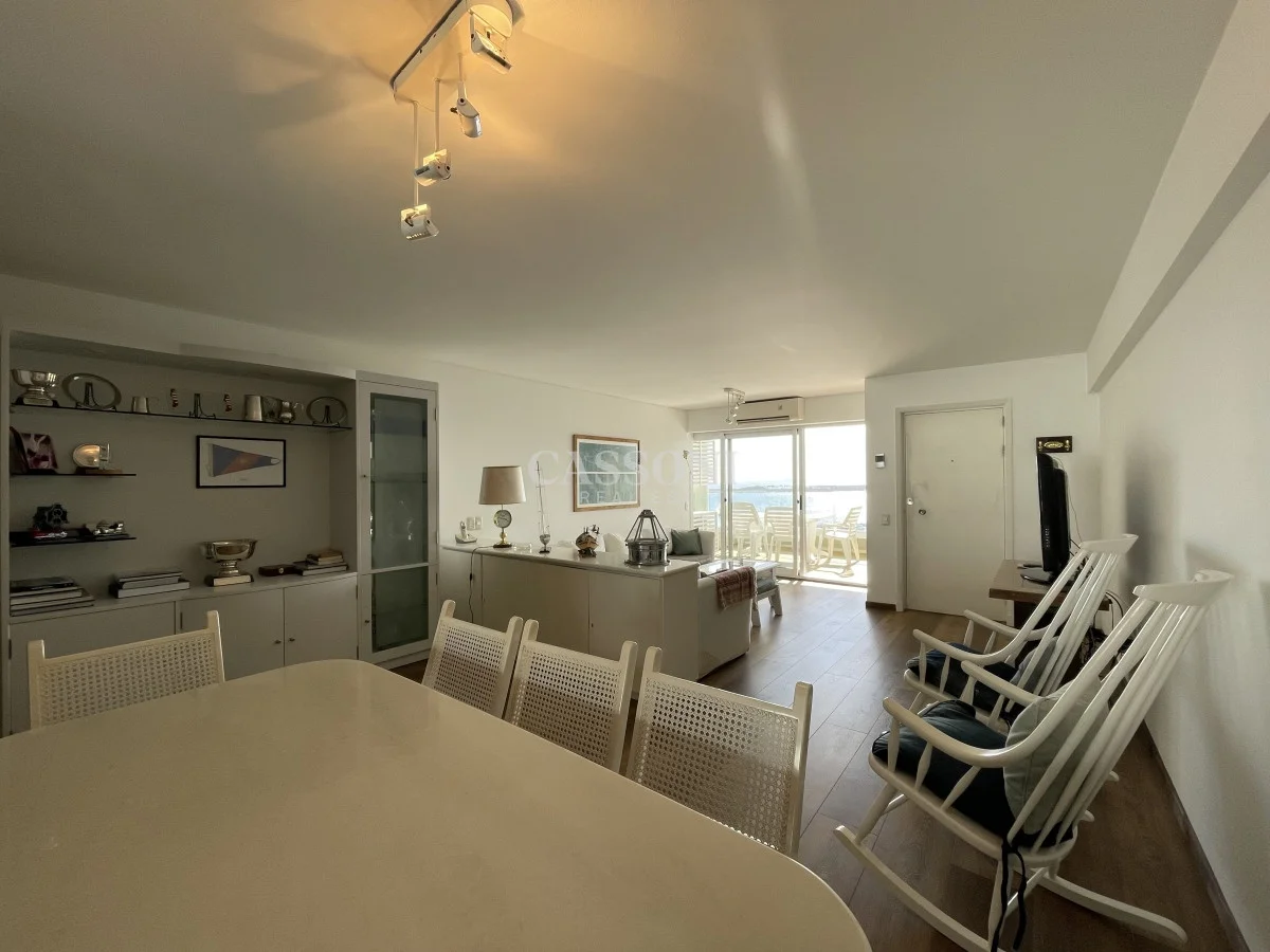 Amplio apartamento con excelente vista al Puerto, linda terraza, living comedor, tres dormitorios y dos baños, mas dormitorio de servicio con baño integrado que funciona como 4º dormitorio, cocina, lavavajillas y lavarropas, lavadero, garage. Aire acondicionado en el living y en la suite.