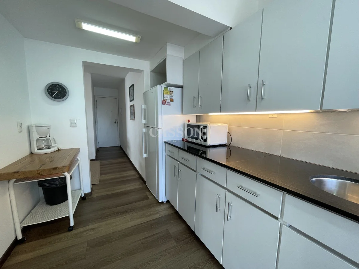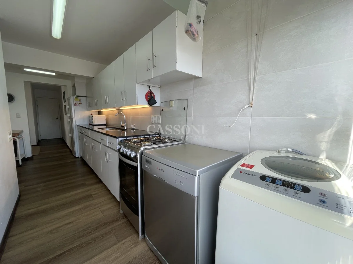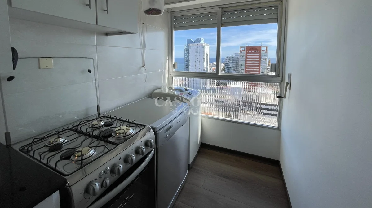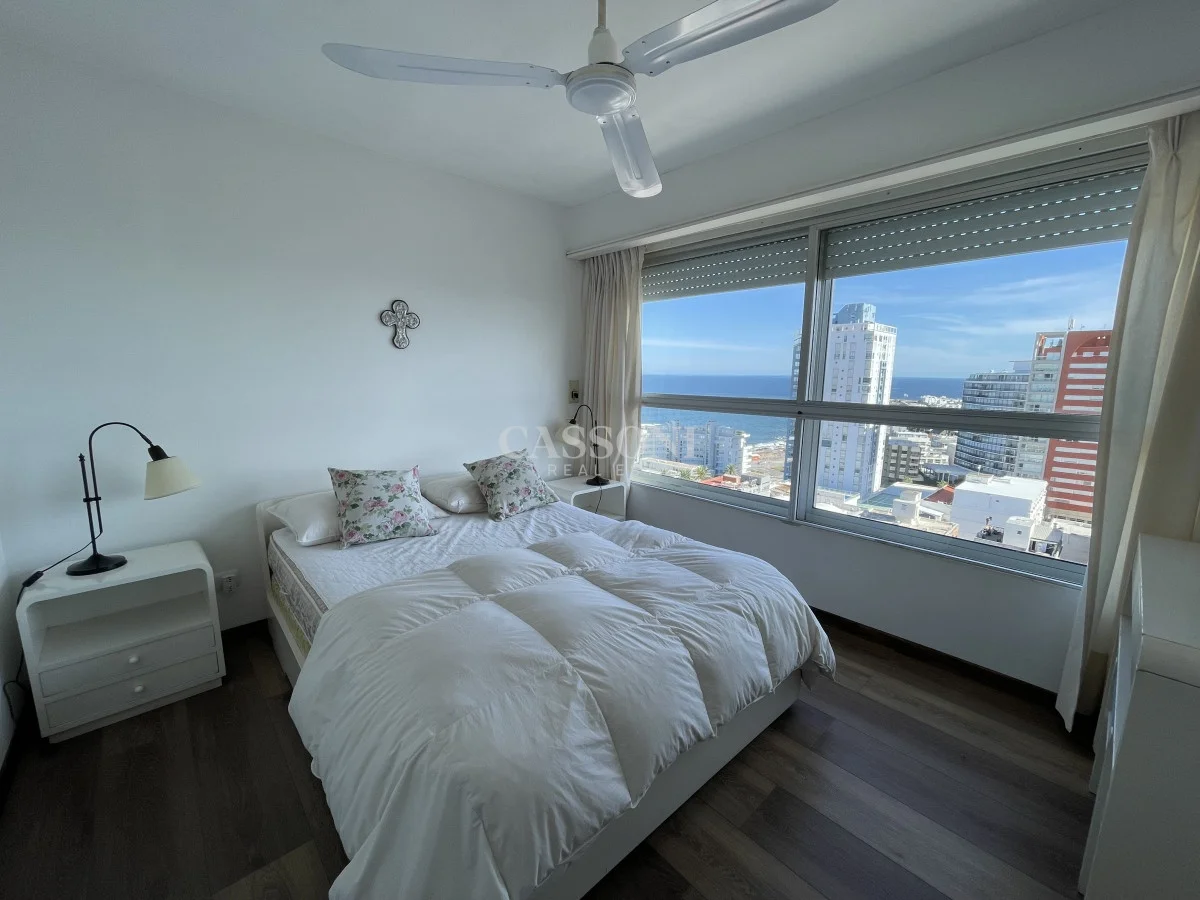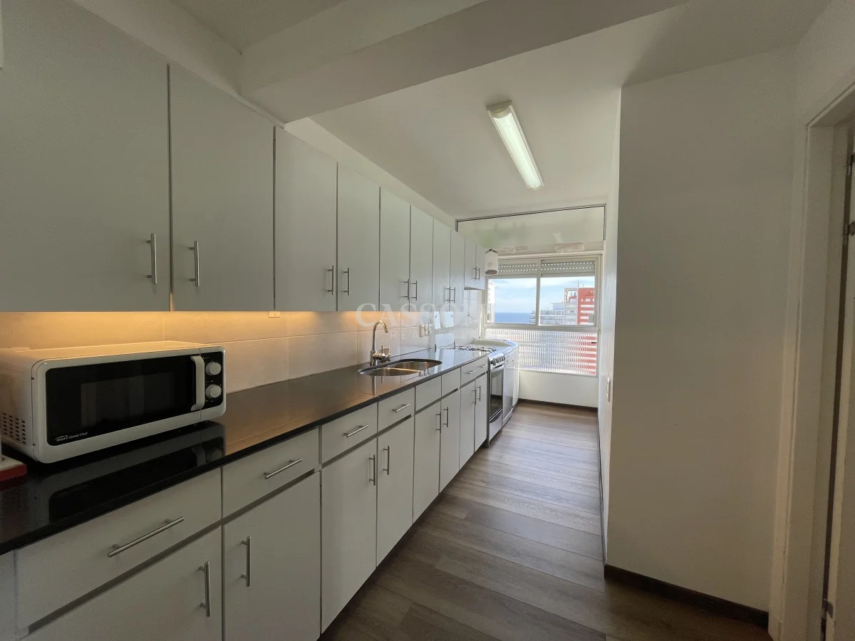 Amplio apartamento con excelente vista al Puerto, linda terraza, living comedor, tres dormitorios y dos baños, mas dormitorio de servicio con baño integrado que funciona como 4º dormitorio, cocina, lavavajillas y lavarropas, lavadero, garage. Aire acondicionado en el living y en la suite.