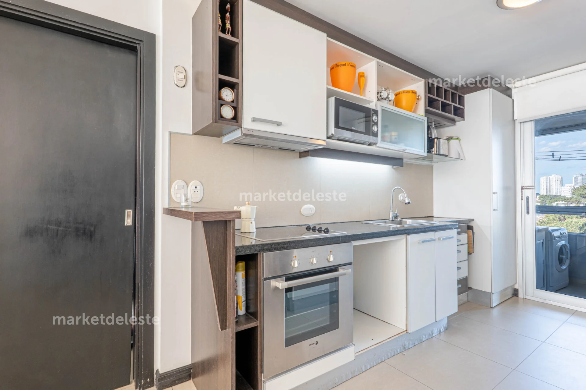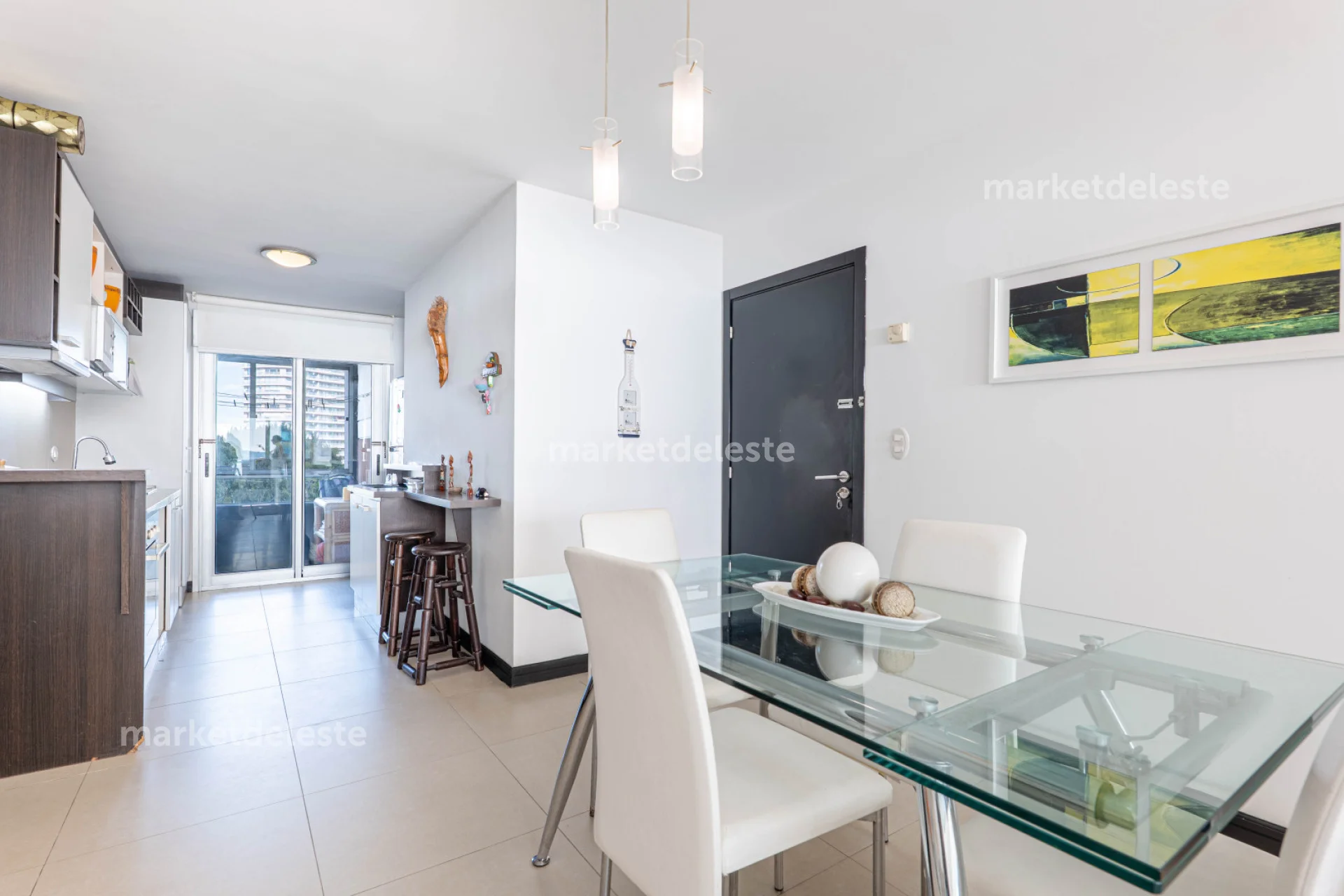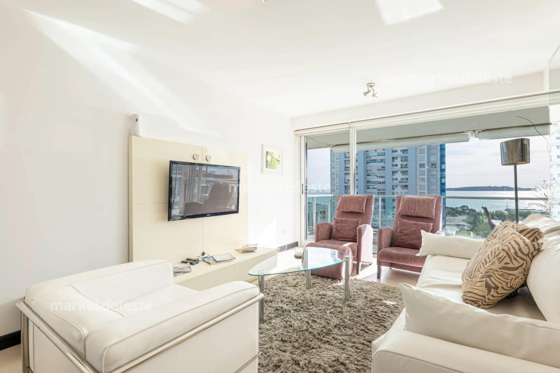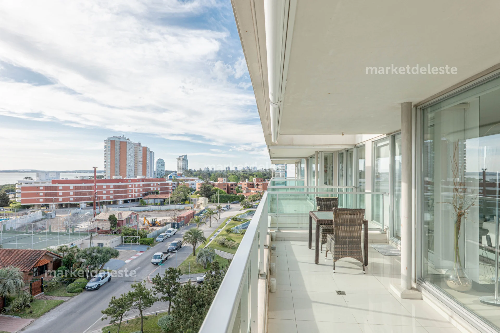 El apartamento cuenta con 2 dormitorios, 2 baños (uno en suite), Amplio balcón terraza con vista al mar, cocina totalmente equipada, lavadero y terraza de servicio con parrillero propio.
