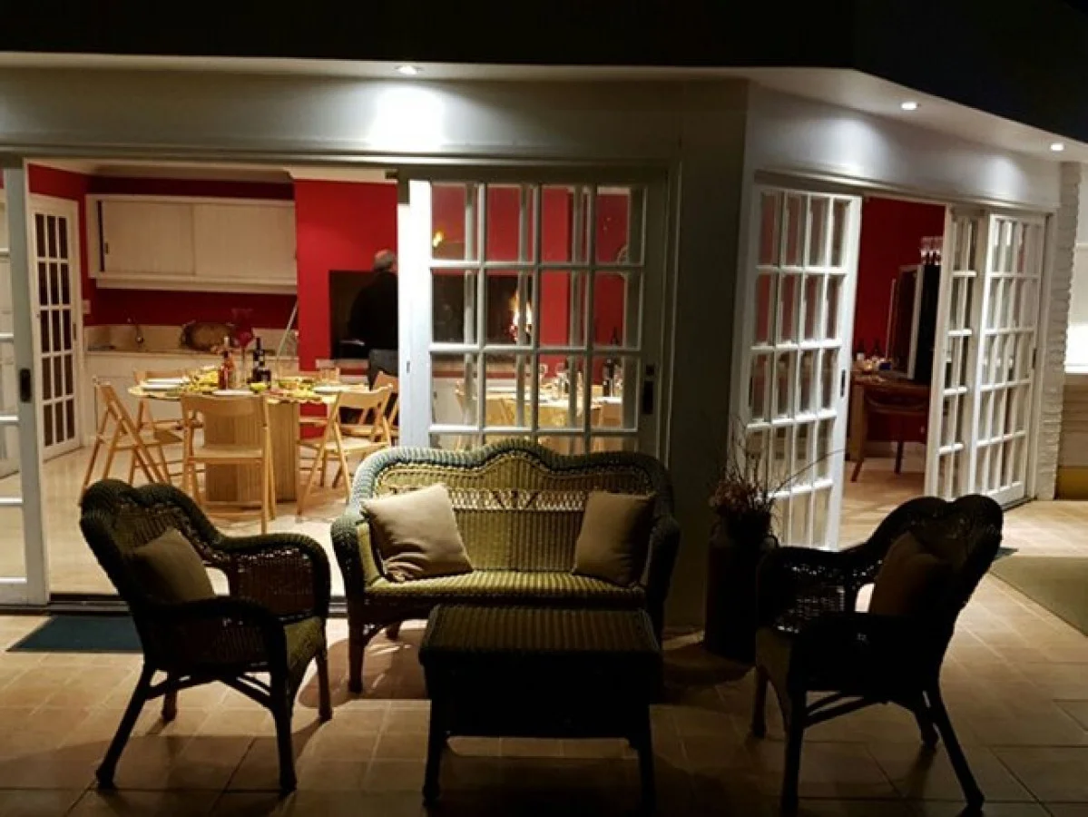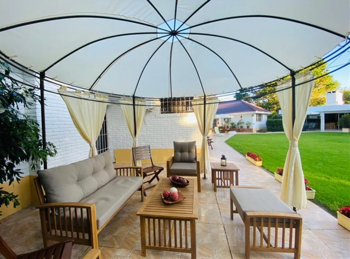 Al ingresar, una amplia recepción te da la bienvenida, acompañada de una mesa de pool con vistas al hermoso jardín. Hacia la derecha, se encuentran cuatro dormitorios: la master suite con vestidor, estufa a leña y oficina; otra suite y dos dormitorios adicionales que comparten un baño. A la izquierda, un toilette, un espacioso living con estufa a leña, y un comedor. Todos los ambientes están equipados con aire acondicionado y calefacción. La cocina es independiente y está bien equipada, integrando la zona de lavadero. Además, cuenta con un dormitorio de servicio con baño y una pequeña oficina.