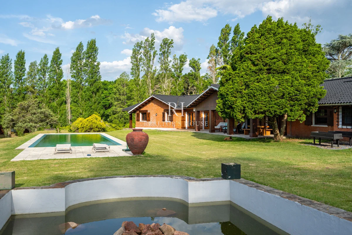 Esta propiedad excepcional también ofrece comodidades al aire libre que incluyen un pequeño parrillero, una gran piscina, estanque (pond) y paseo a bosque que añade un toque de tranquilidad a los espacios exteriores.