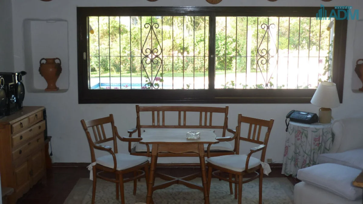Cuenta con una gran piscina de mampostería y solarium, cancha de pádel y estupendos jardines, con riego automático alimentado por pozo
