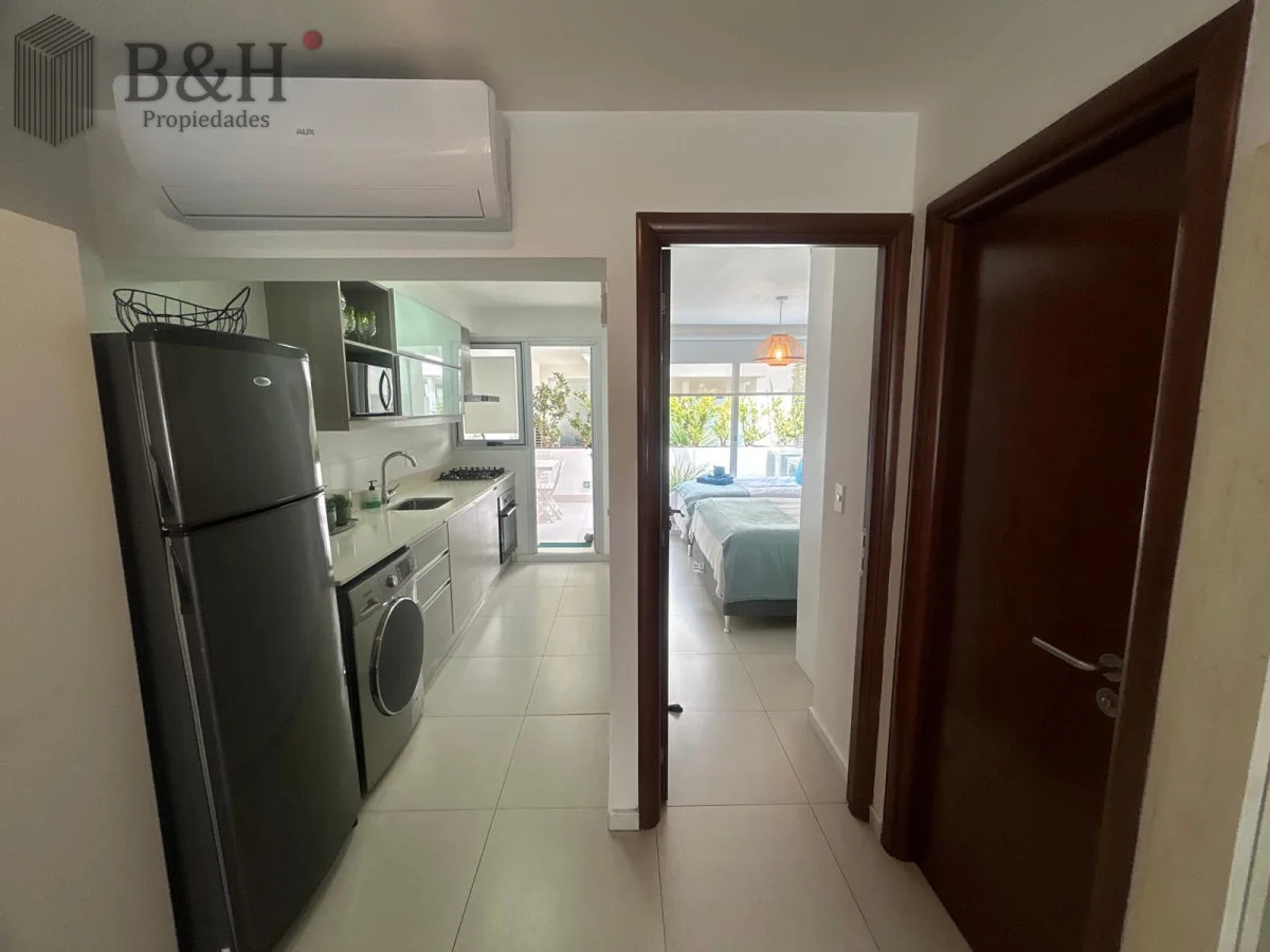 Este espacio cuenta con una cocina semi-integrada que se conecta armoniosamente con un amplio living comedor, ideal para compartir momentos inolvidables. Además, el edificio ofrece servicio de mucamas y una refrescante piscina, perfecta para relajarte en los días soleados.