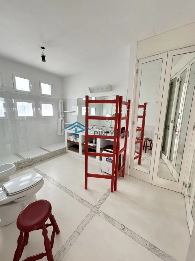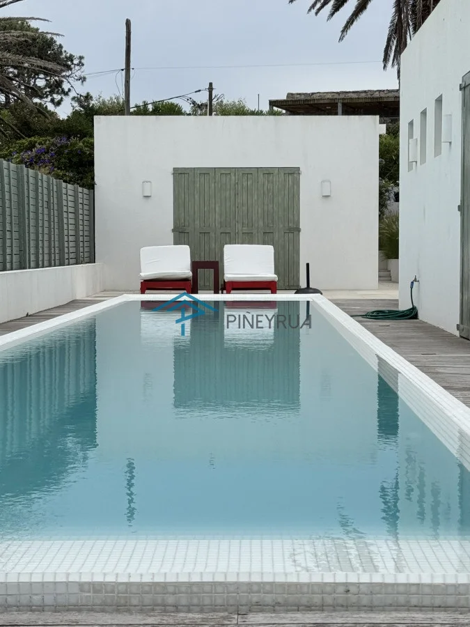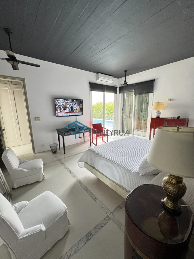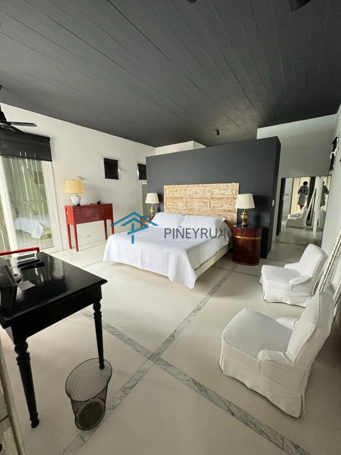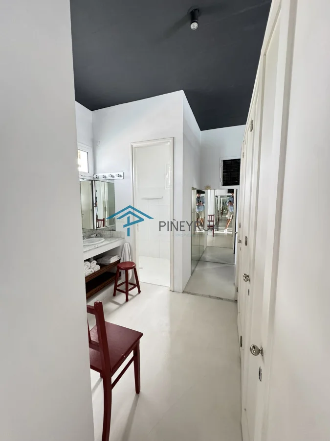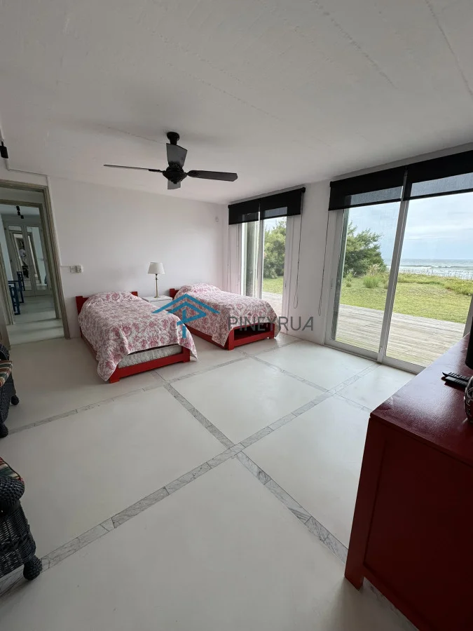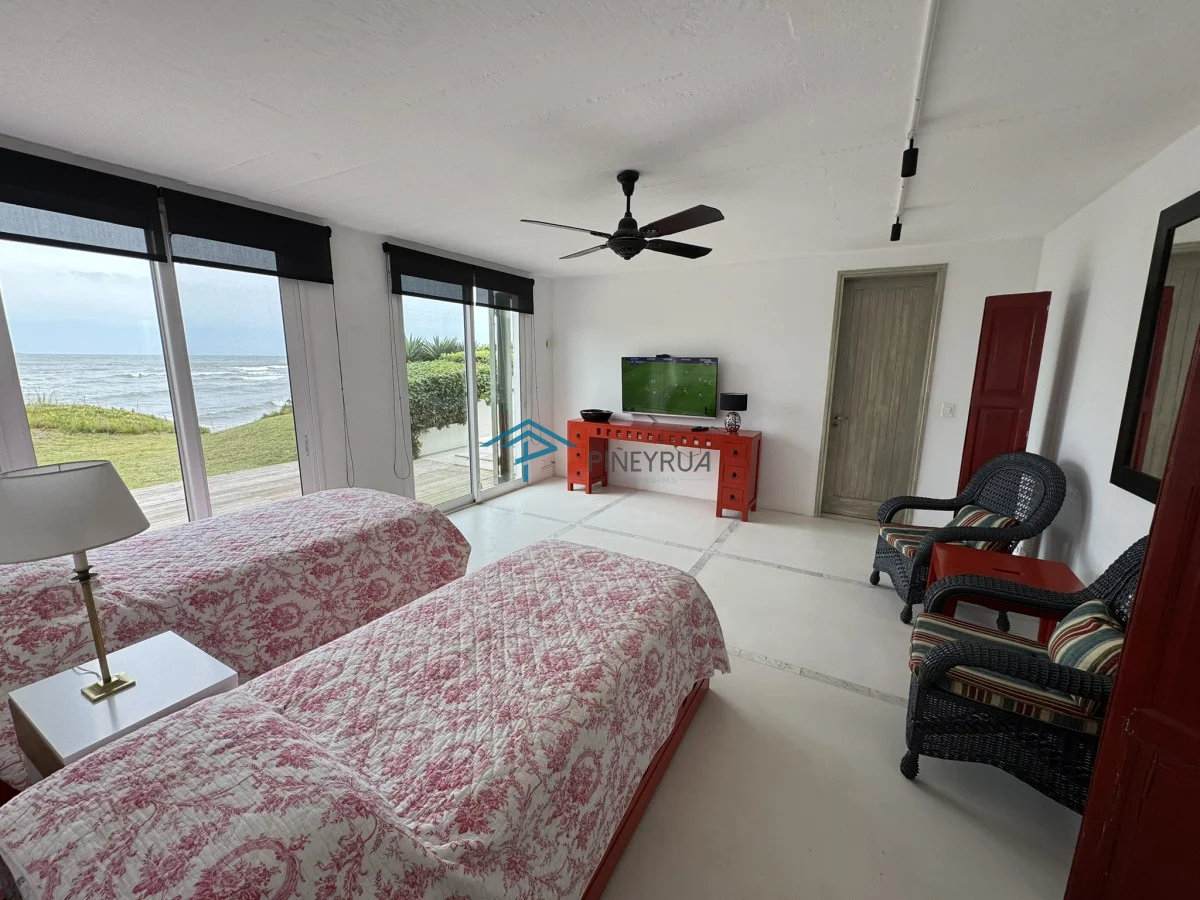 Una cómoda escalera conduce al nivel inferior, donde se ubican dos dormitorios en suite adicionales. El cuarto dormitorio, completamente independiente, se encuentra frente a la piscina con vistas directas al mar.